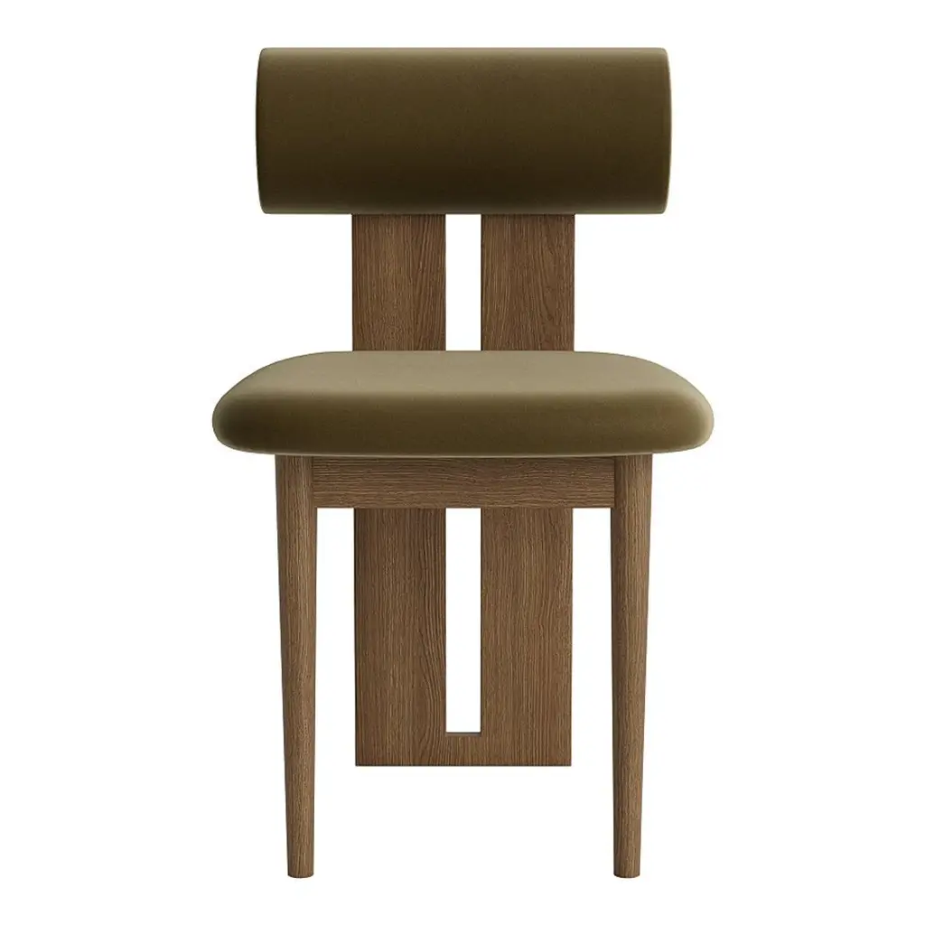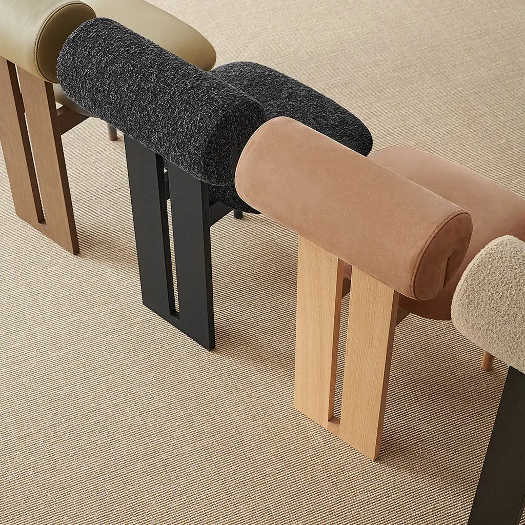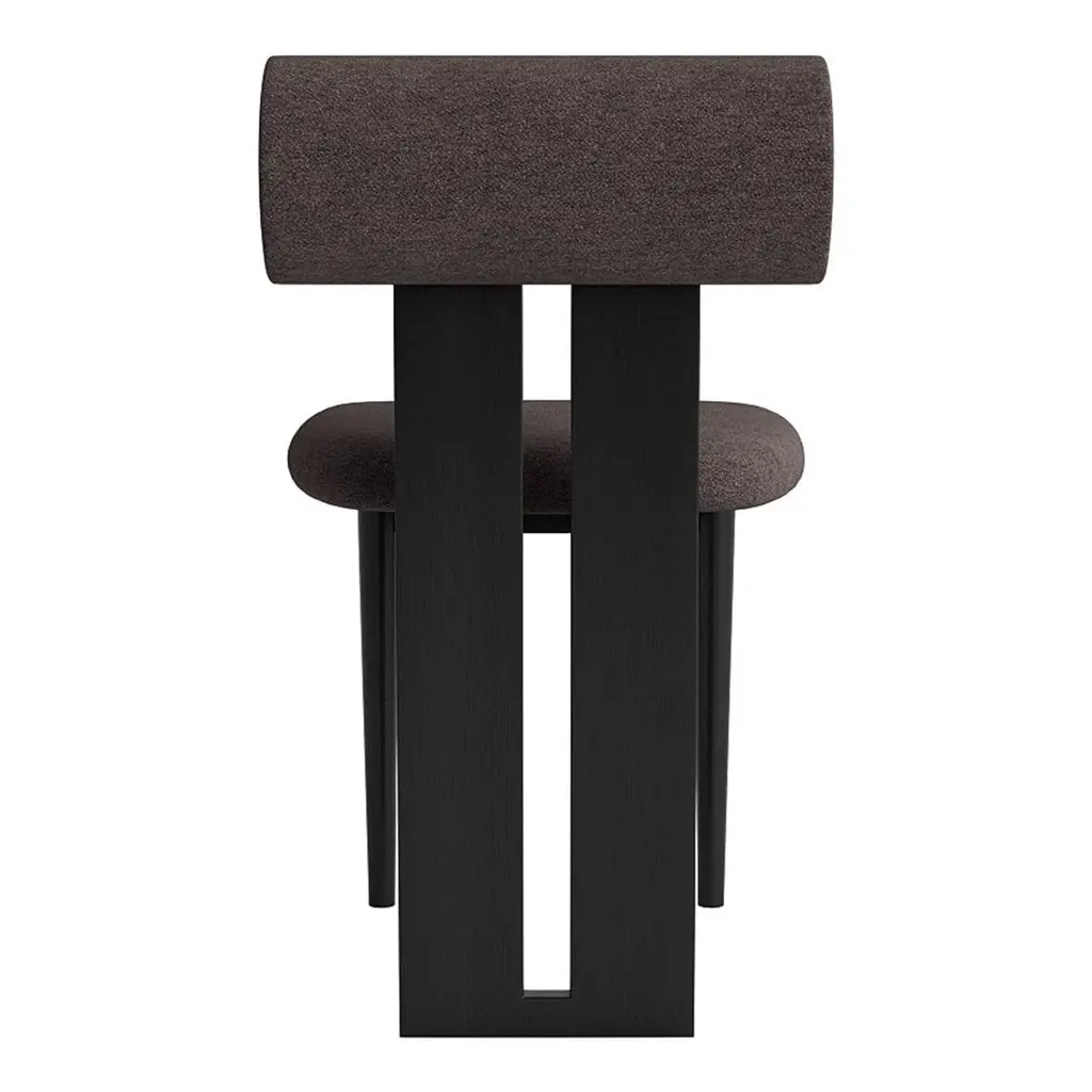 Soft, playful shapes characterise this family of upholstered pieces, the Hippo makes a stylish statement in any interior setting. The Hippo Chair stands on two sturdy legs and a wooden profile connecting the seat and back which in stark contrast to the soft shapes is hard-lined and strong. The Hippo series is influenced by the Hippopotamus mammal drawing upon its barrel-shaped torsos. The characteristic wooden leg profile comes in four different oak finishes; natural, light smoked, dark smoked and black and the seat and back come in a variety of upholstery options.