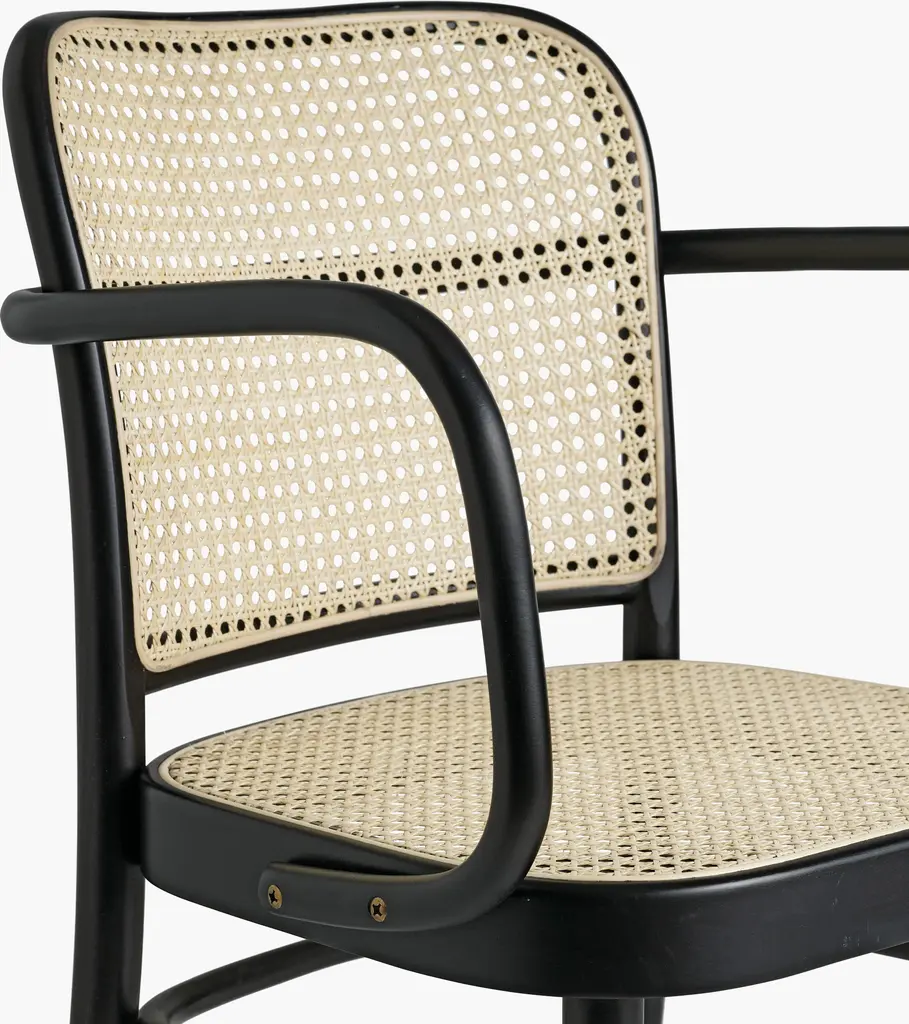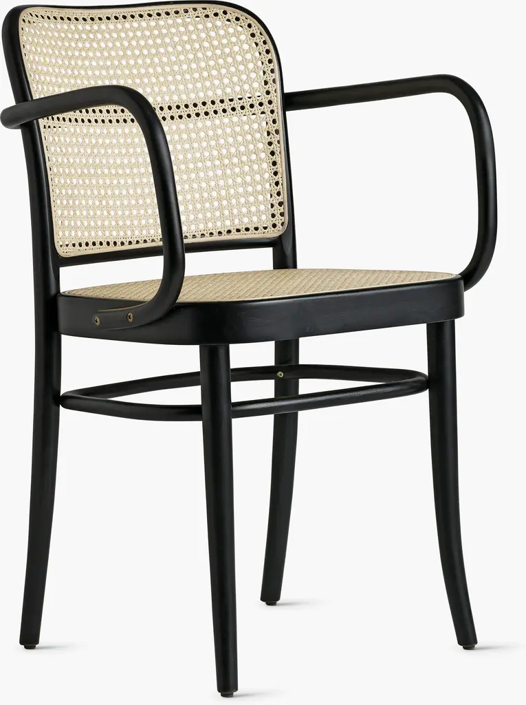An Austrian architect who co-founded the Weiner Werkstätte, Josef Hoffmann designed numerous restrained yet visually interesting dining chairs - including several for cafes. He was deeply interested in the Arts and Crafts movement, but also embraced the mass-production of the industrial age. Those dual influences are evident in the Hoffmann Chair (1925), designed in collaboration with Viennese modernist Josef Frank. With straight, unadorned lines and a handwoven caned seat and back, this chair is lightweight and extremely comfortable. Its bentwood frame, made of solid European beechwood sourced from FSC-certified forests, is produced at the same factory bentwood pioneer Michael Thonet founded in 1861. Finished with an environmentally friendly water-based stain and clear varnish. Made in the Czech Republic.