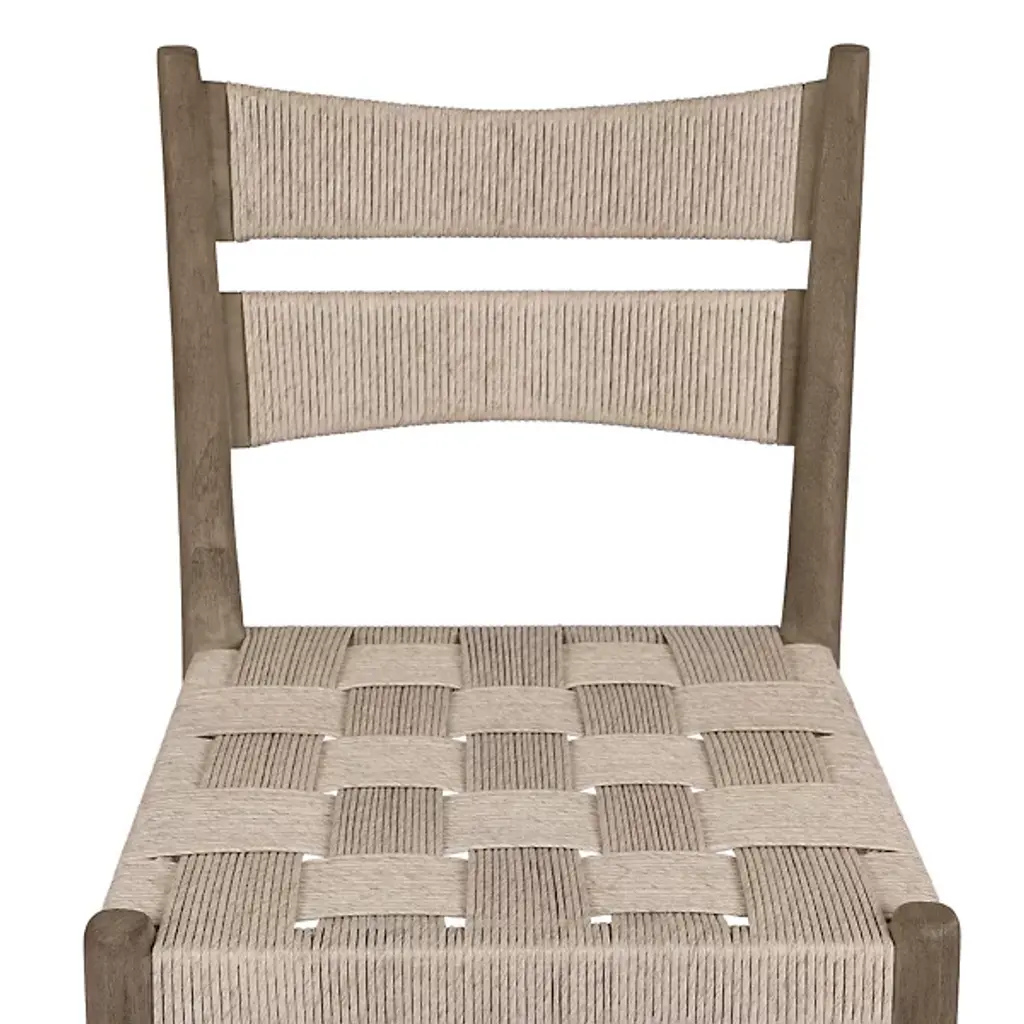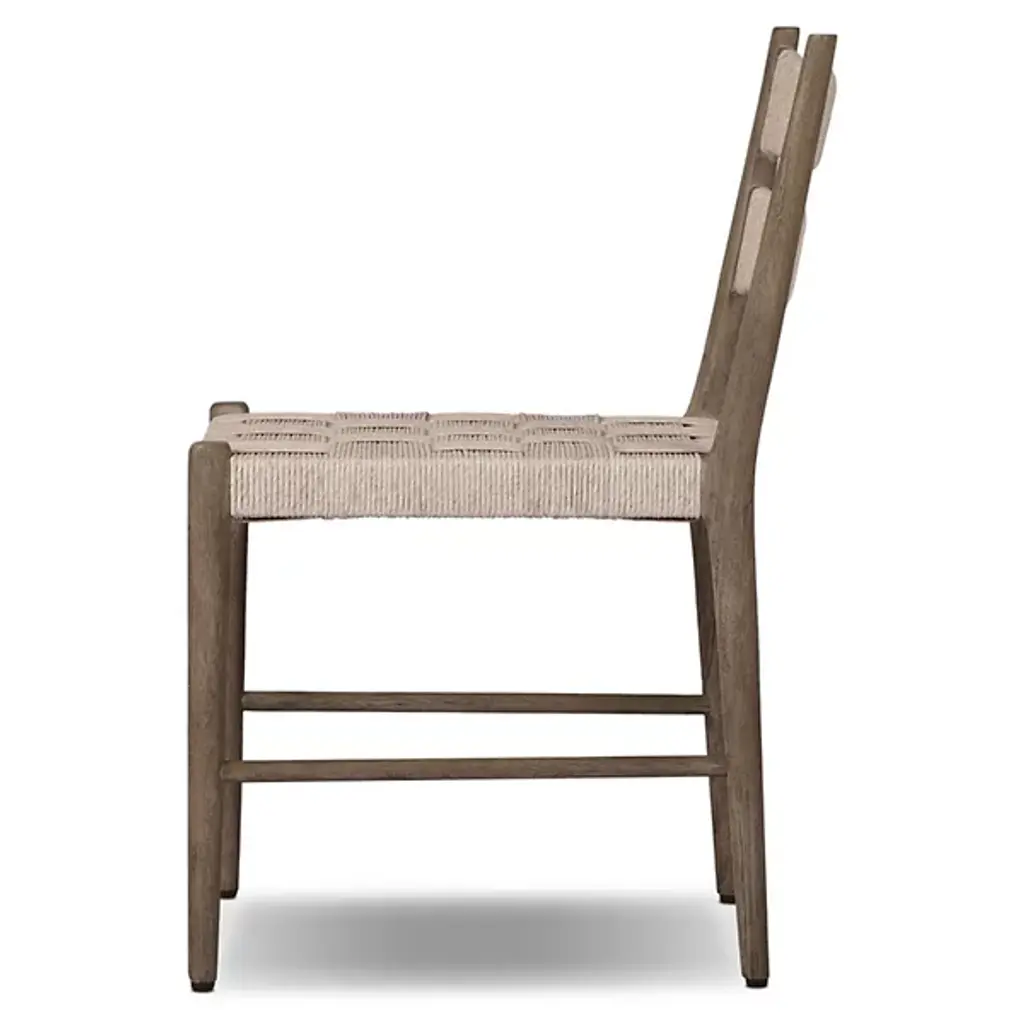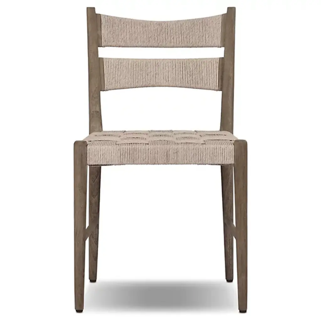 The Holker Outdoor Dining Chair from Four Hands brings Nordic design principles to outdoor dining through FSC-certified teak construction and polyethylene weaving. Tapered legs splay outward from the seat frame, creating stability while maintaining the clean lines characteristic of Scandinavian furniture traditions. Natural bleached weavinghe aged teak finish complements natural bleached weaving that flows with the frame's geometry rather than competing against it. This soft material combination works well in coastal settings, minimalist patios, or Scandinavian-inspired outdoor dining areas.