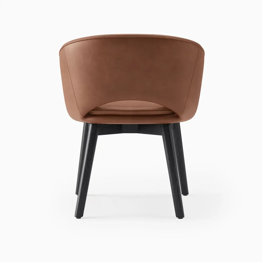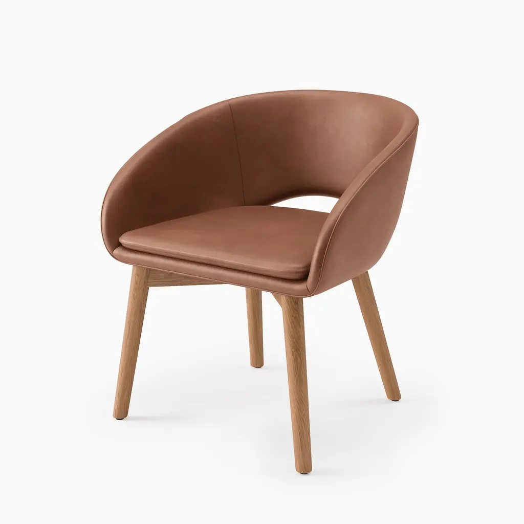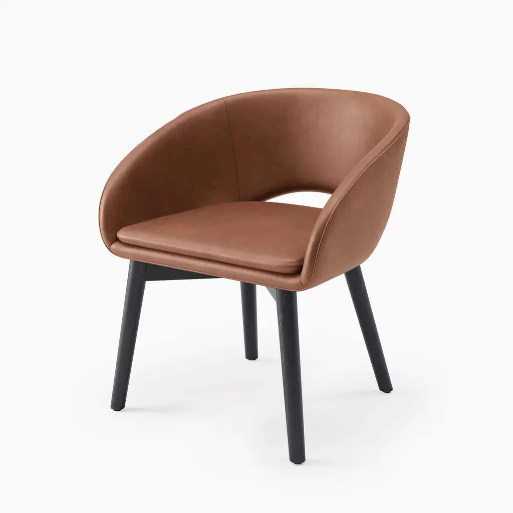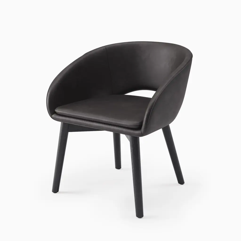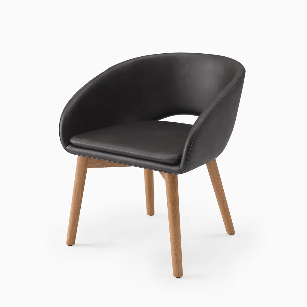 It's a modern take on a cafe dining chair. Its soft leather upholstery and rounded seat. Durably made from sustainably sourced wood. Contract Grade for unmatched durability.