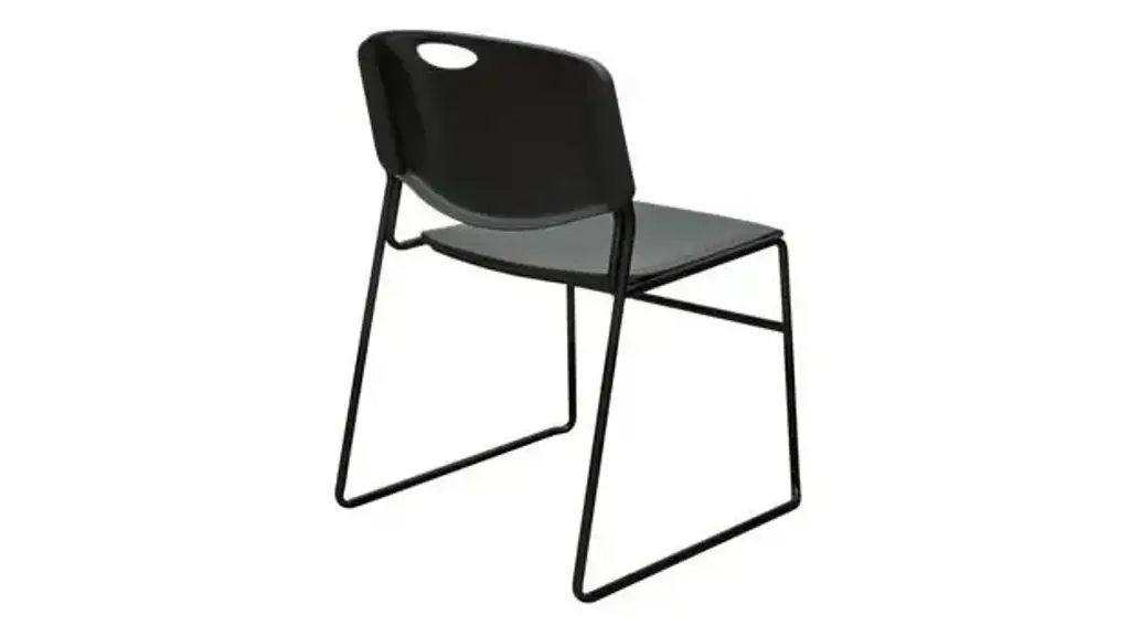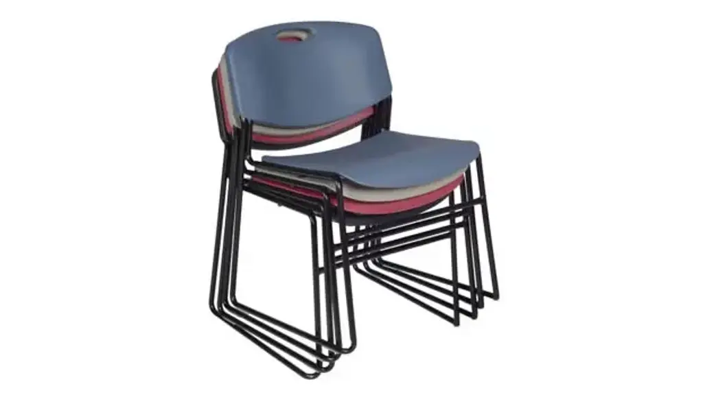 Regency's Patent-Pending Zeng stack chair is not only unique, but durable, sturdy and versatile as well. The seat and back are available in Black, Blue and Grey and are color permeated so scuffs are less noticeable. The Zeng seat and back are treated with an anti-microbial agent, which makes it perfect for schools, waiting rooms, cafeterias and more. A reinforced black metal frame is designed to support up to 400 lbs and a built in handle makes moving the chair easier. The Zeng can be easily stored away in stacks of 25 and can be used with Regency's Zeng Stack Chair Cart for easy transportation. Each Chair Dimensions: 22" W x 17" D x 31" H. Seat Height: 17" from floor. Seat Dimensions: 18"W x 16"D. The Zeng ships assembled and is ready to use immediately.