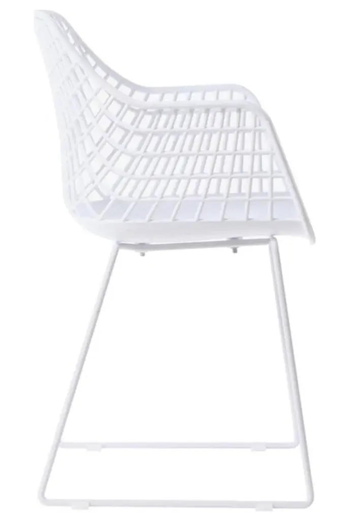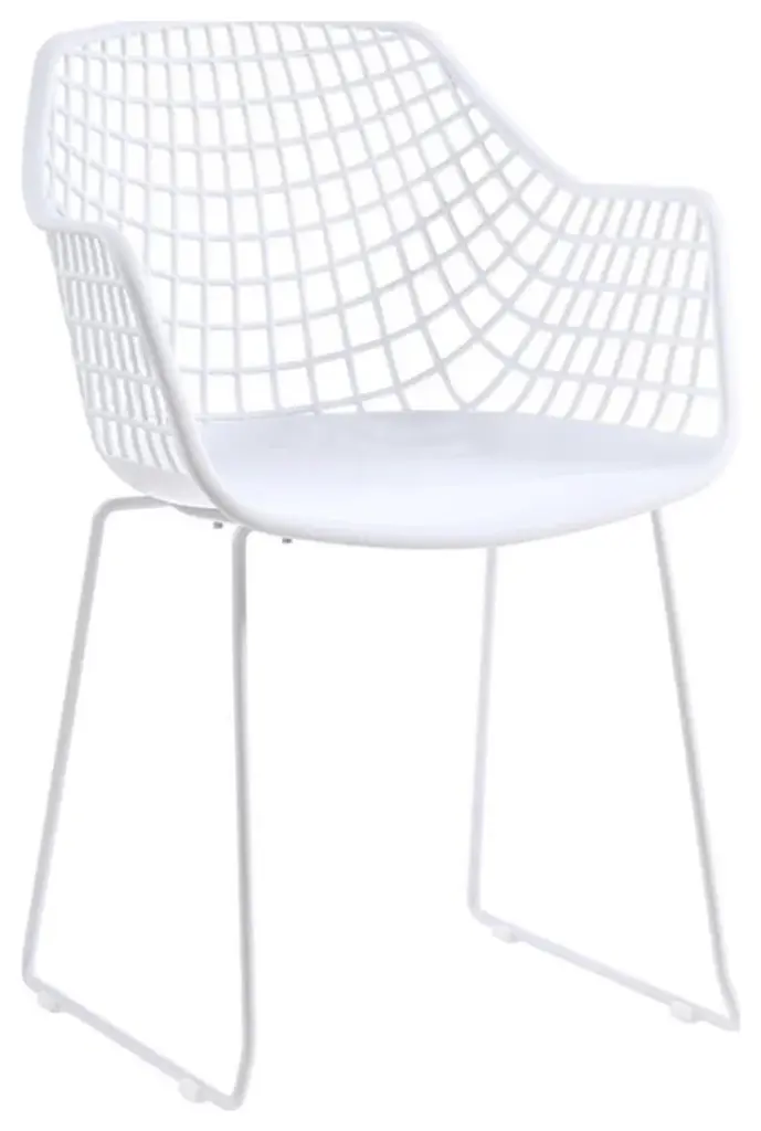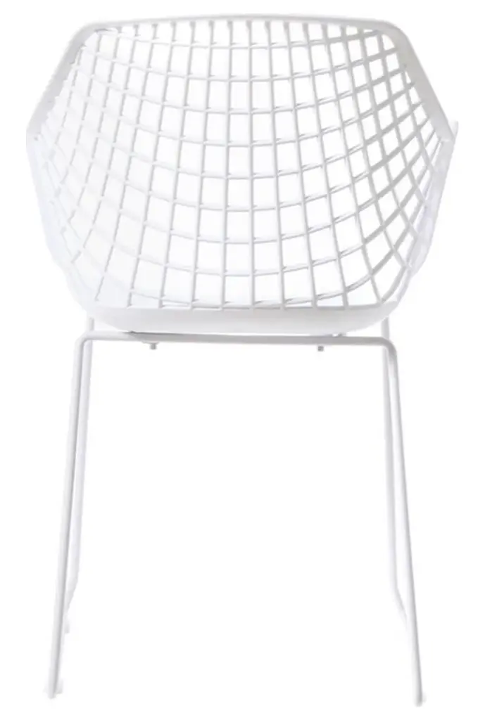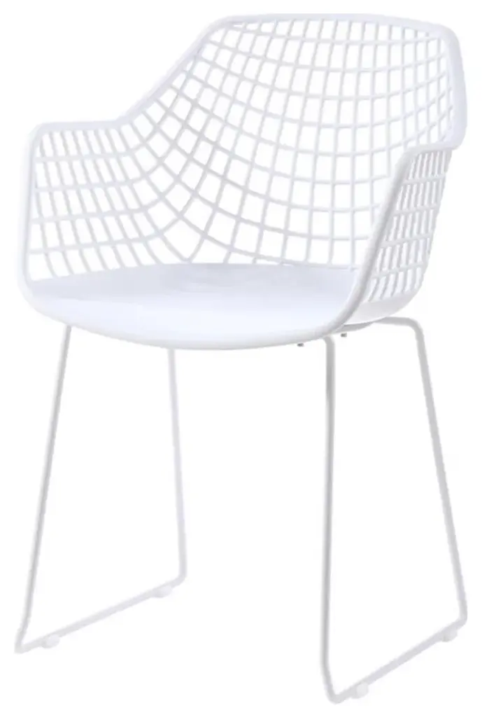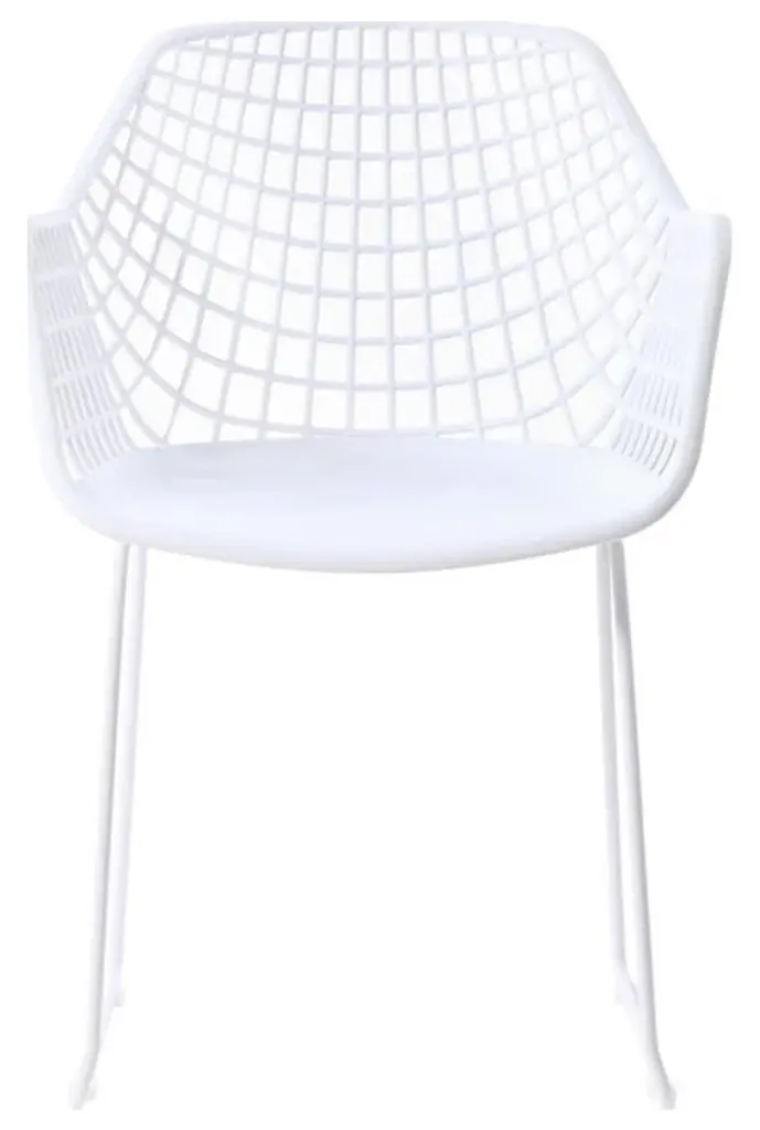 Functional for the indoors, but ideal for the outdoors. This slick, contemporary chair is patio perfection with its perforated back - so you can have that sweet summer breeze can roll on through. Practical and easy to clean with curved form and sloped armrests, this design is highly versatile to an array of outdoor and balcony layouts. We offer 1 Year limited commercial warranty (covered for any manufacturer's defect). Made in China.Features:Curved silhouette with an openworkBack and slim steel legsHigh-quality molded polypropyleneSeatApproved for outdoor use, store outOf direct sunlight to preserve colorSpecifications:Product Dimensions: 22.5"W x 22"D x 34"HProduct Weight: 13.25 lbsWarranty: 1 YearColor/Finish: WhiteAssembly Required: YesWeight Capacity: 330 lbs