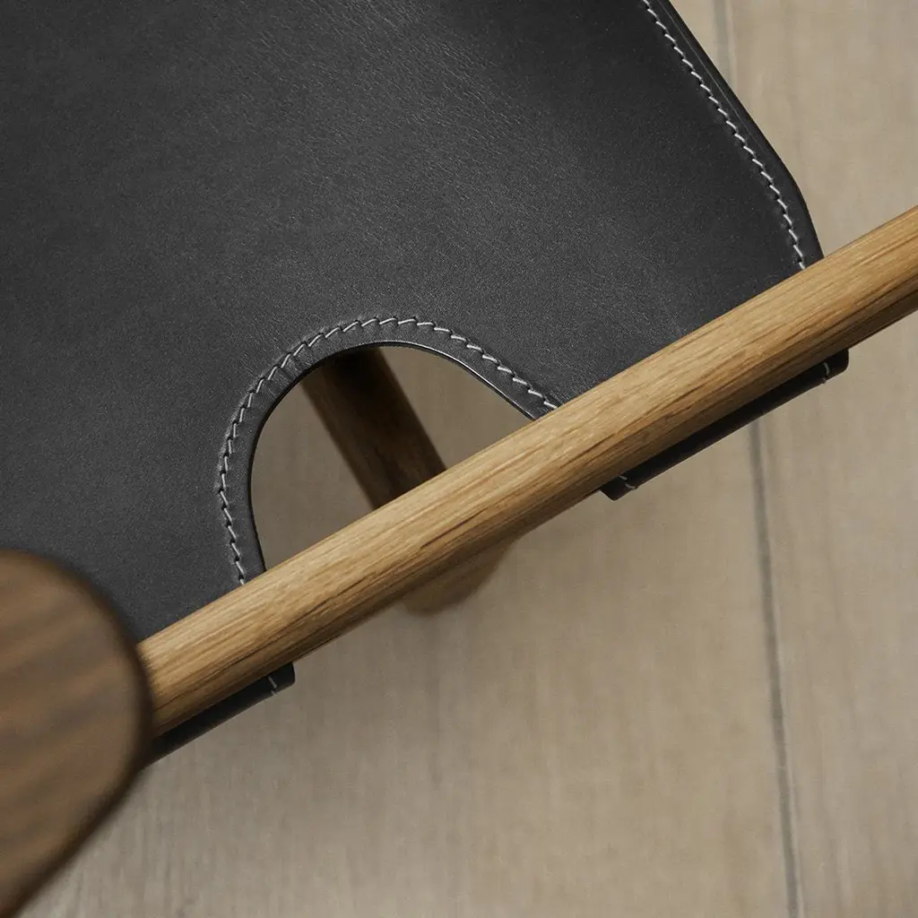 Designed in 1950, The Hunting Chair was Mogensen's first work with exposed wooden framing and saddle leather. The seat is adjustable with solid brass buckles, and the chair is easy to move around to different locations in the home.
