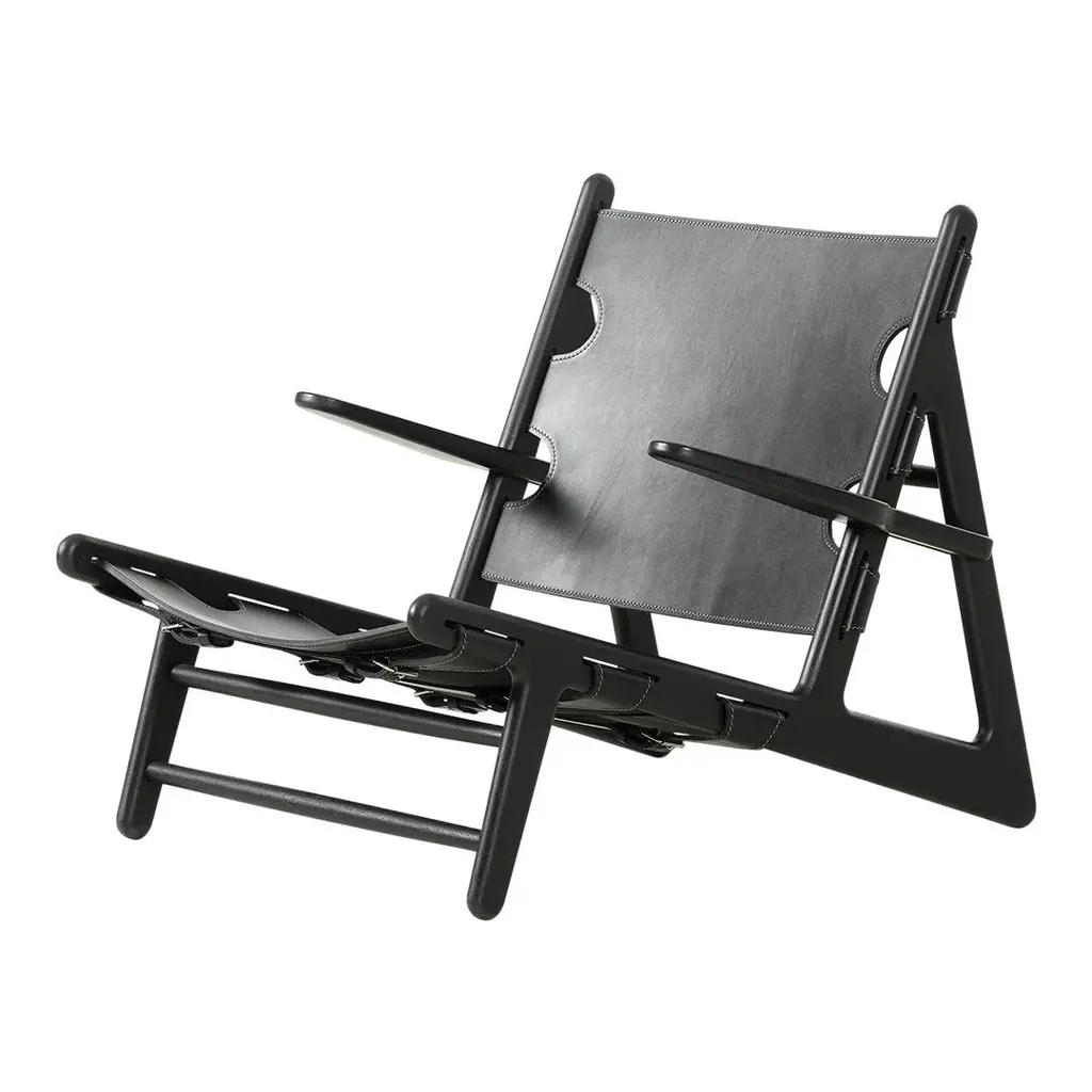 Designed in 1950, The Hunting Chair was Mogensen's first work with exposed wooden framing and saddle leather. The seat is adjustable with solid brass buckles, and the chair is easy to move around to different locations in the home.