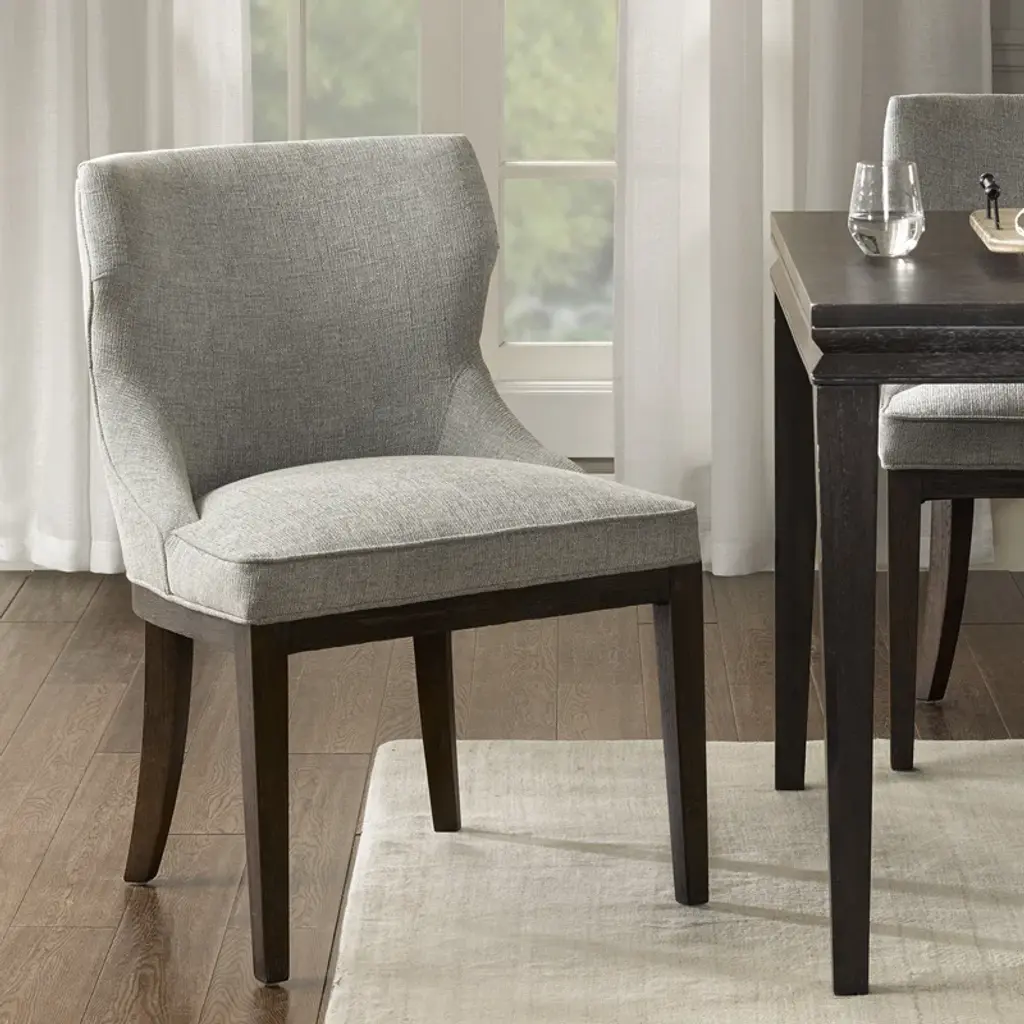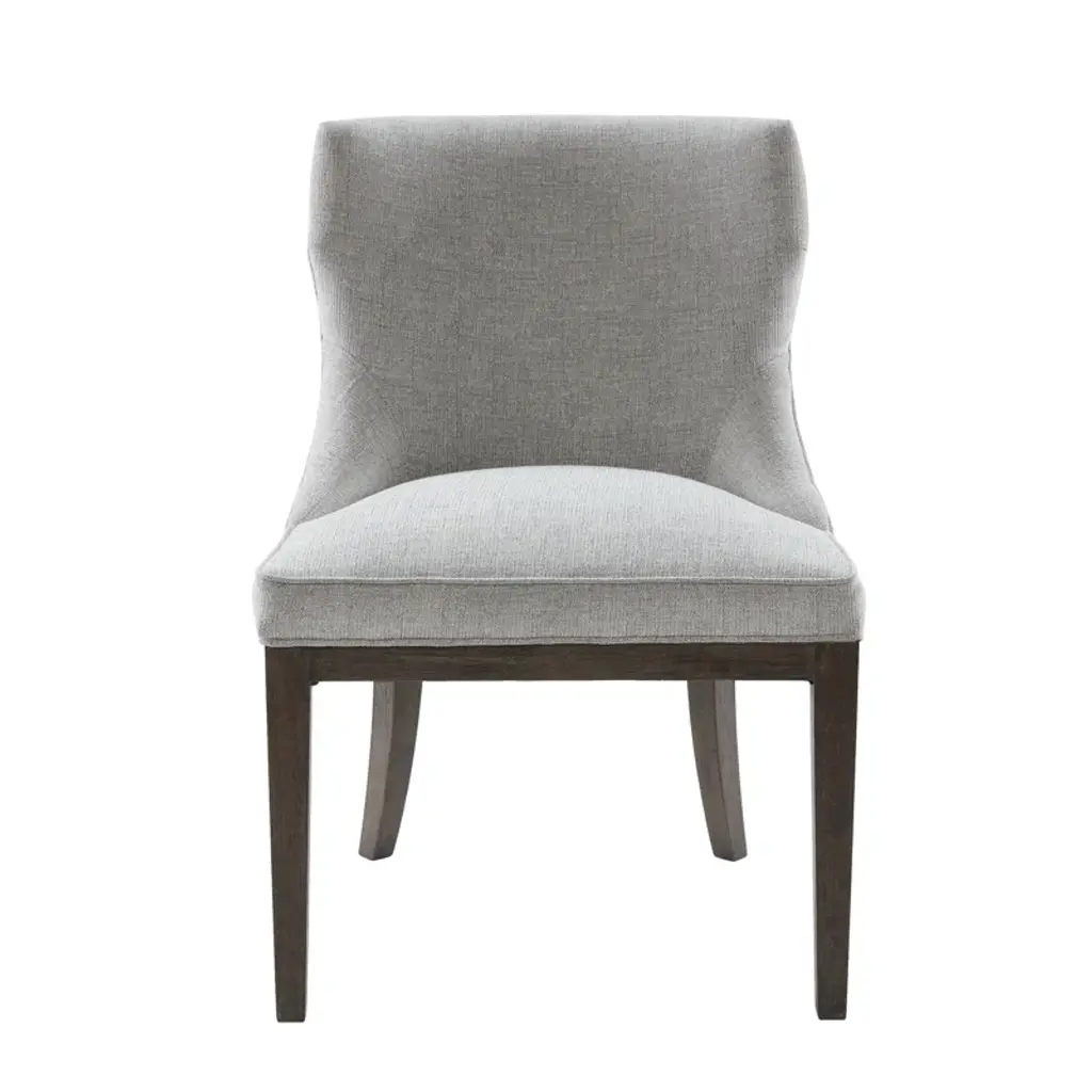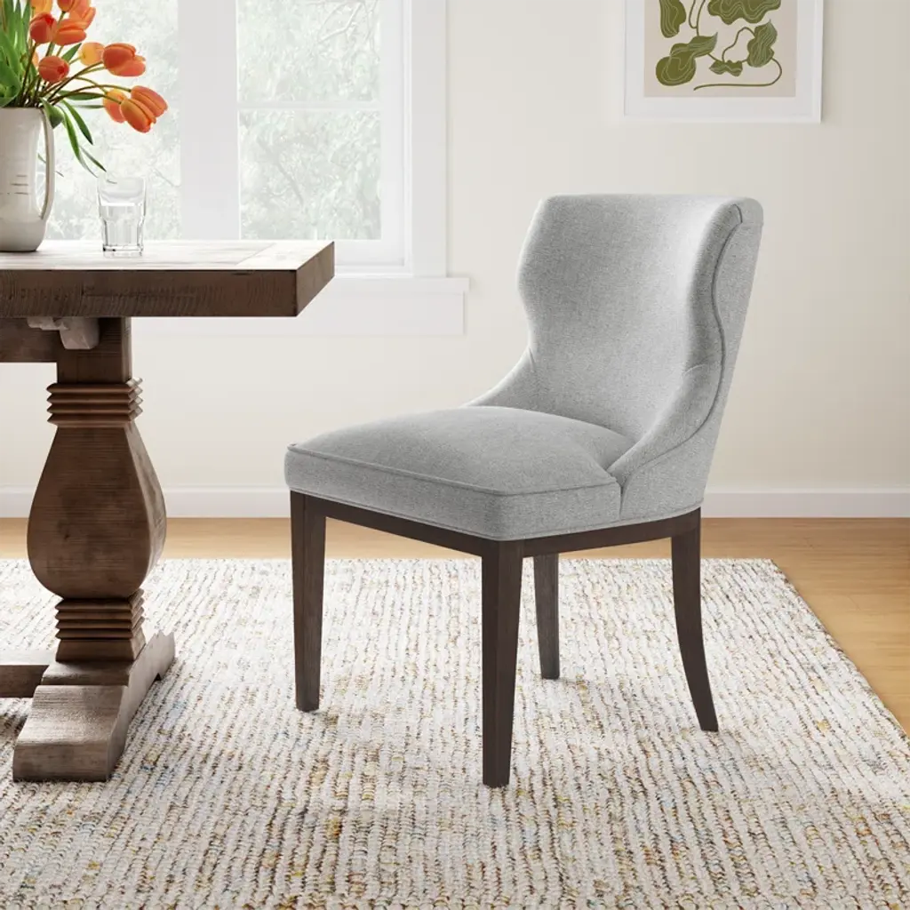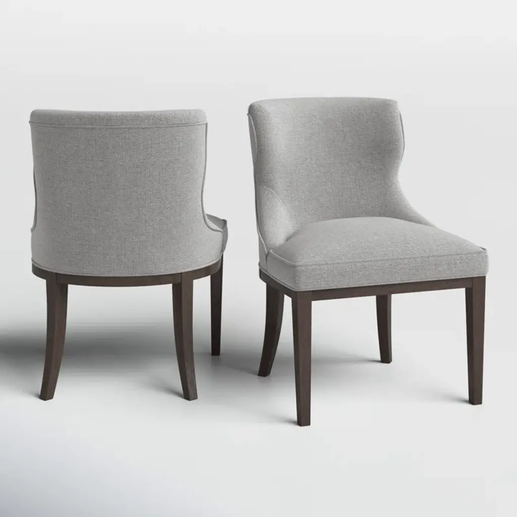 Elevate your dining experience with this set of two wingback side chairs. Crafted from a blend of solid and engineered wood, these chairs showcase a classic design with a modern twist. The upholstered seat and back in 100% polyester fabric offer a comfortable spot to enjoy your meals, while the foam filling provides added support. The solid wood legs in a natural finish add a touch of warmth to your dining space. To keep them looking their best, simply wipe clean with a damp cloth. Enjoy your next family dinner in style and comfort!