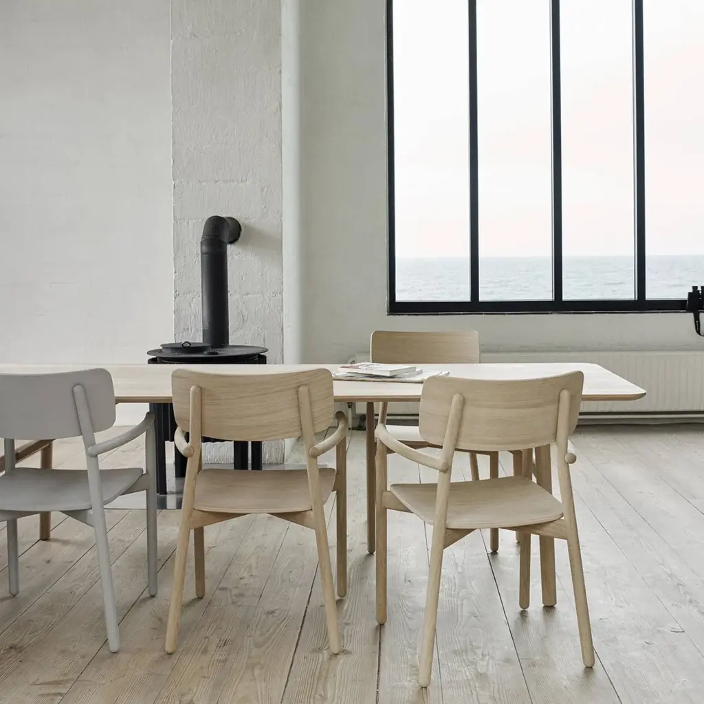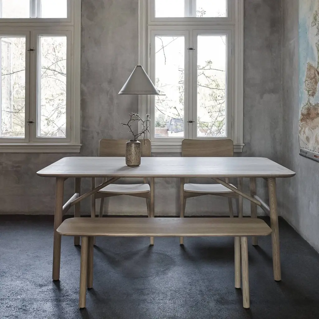 With its lilting curves, Anton Björsing’s armchair makes for inviting and comfortable seating around the dining table. Hven’s faultless craftsmanship reveals subtle details such as the rounded corners and joinery of the wooden pole construction. In a variety of natural oak finishes as well as fresh grey or graphic black; optional seat cushion also available.