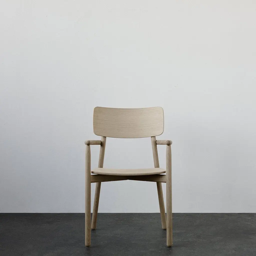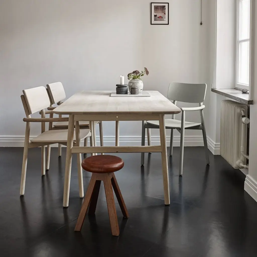 With its lilting curves, Anton Björsing’s armchair makes for inviting and comfortable seating around the dining table. Hven’s faultless craftsmanship reveals subtle details such as the rounded corners and joinery of the wooden pole construction. In a variety of natural oak finishes as well as fresh grey or graphic black; optional seat cushion also available.
