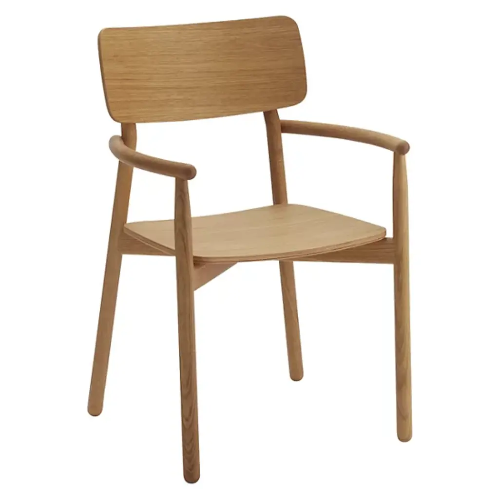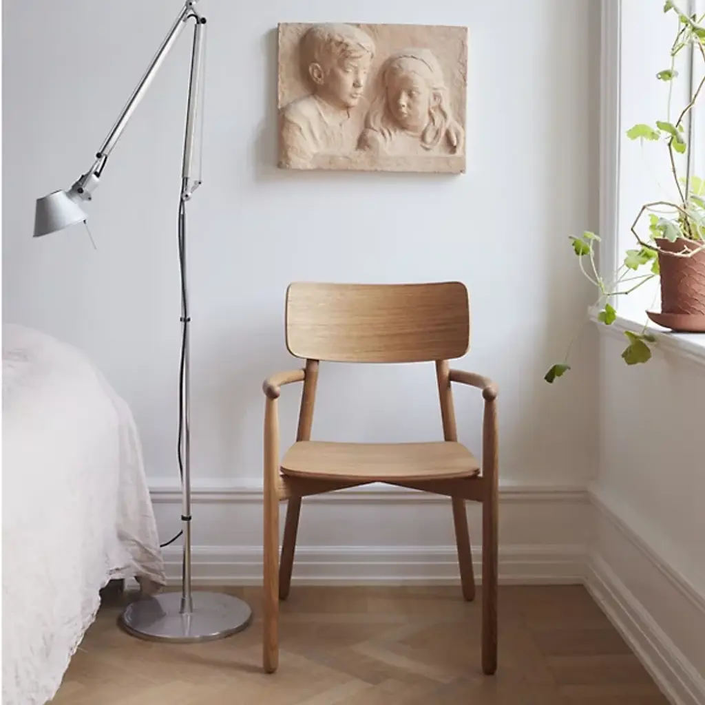 The Hven Armchair from Fritz Hansen, designed by contemporary Swedish designer Anton Björsing, features inviting, minimalist furniture with a natural Nordic charm. Named after the Swedish island between Denmark and Sweden, this collection blends seamlessly with other decor. The Hven Armchair, crafted from 100% FSC-certified oak, offers comfort and elegance. Its light, airy design is accentuated by subtle details like overlapping poles, rounded corners, and a gracefully curved shape, making it a perfect addition to any dining space for creating memorable moments.