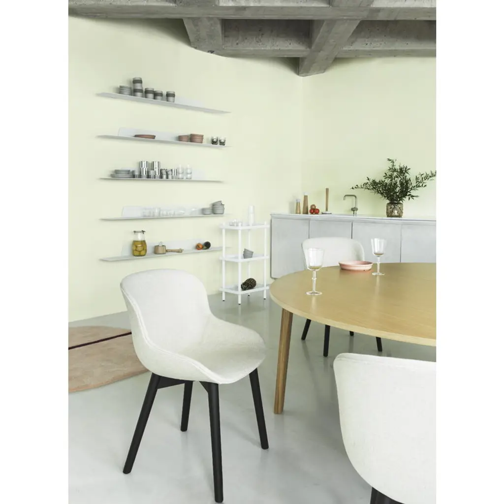 The Hyg chair, with its voluminous silhouette and soft, curvy lines, exudes warmth and comfort – it invites you to have a seat and take a moment for yourself. The inspiration behind the cozy Hyg collection is the word “hygge”: in the spirit of perhaps the most well-known word of the Danish language, designer Simon Legald wanted to create a place for relaxation with a sense of security. The Hyg chair is like a safe haven, a nest where you can feel comfortable, be it in your own dining room, an office setting or even a busy restaurant. “The moments where we sit down together, immerse ourselves in conversation and share a meal – for me this is where the feeling of hygge really peaks. Thus, it seemed only natural that the Hyg range should also provide the setting for moments like these. The feeling of hygge is not only linked to the visual experience of the design; it lies in the overall sensuous experience. A lot of effort has gone into sculpting the shape to provide rest and support for the human body, to make it comfortable to sit in, basically,” Simon Legald has said.