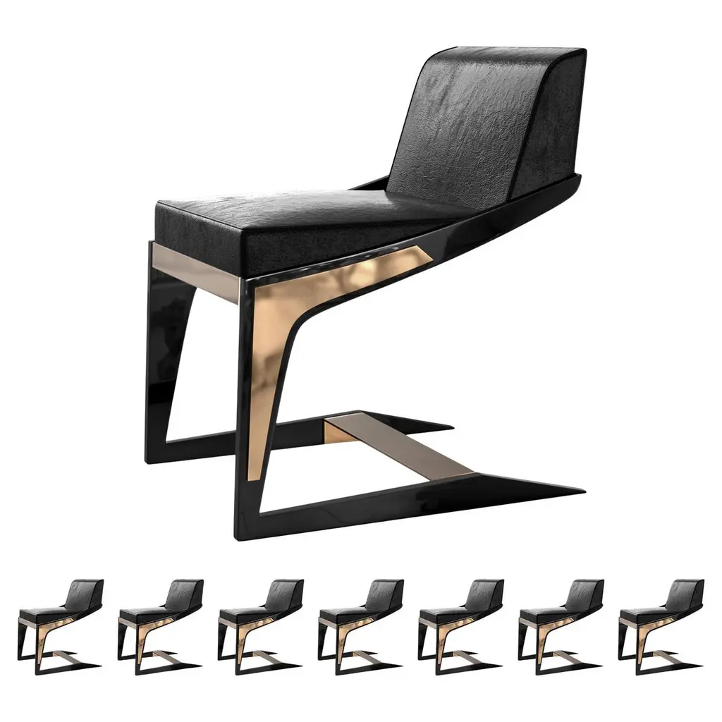 "Icona" Chair, Set Of Eight, With Bronze And Tailor Made Leather, Istanbul