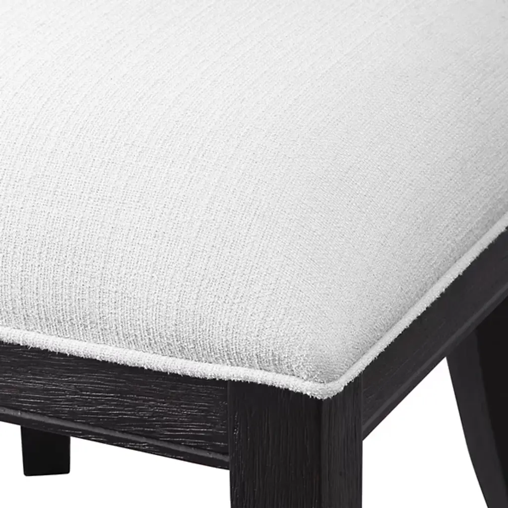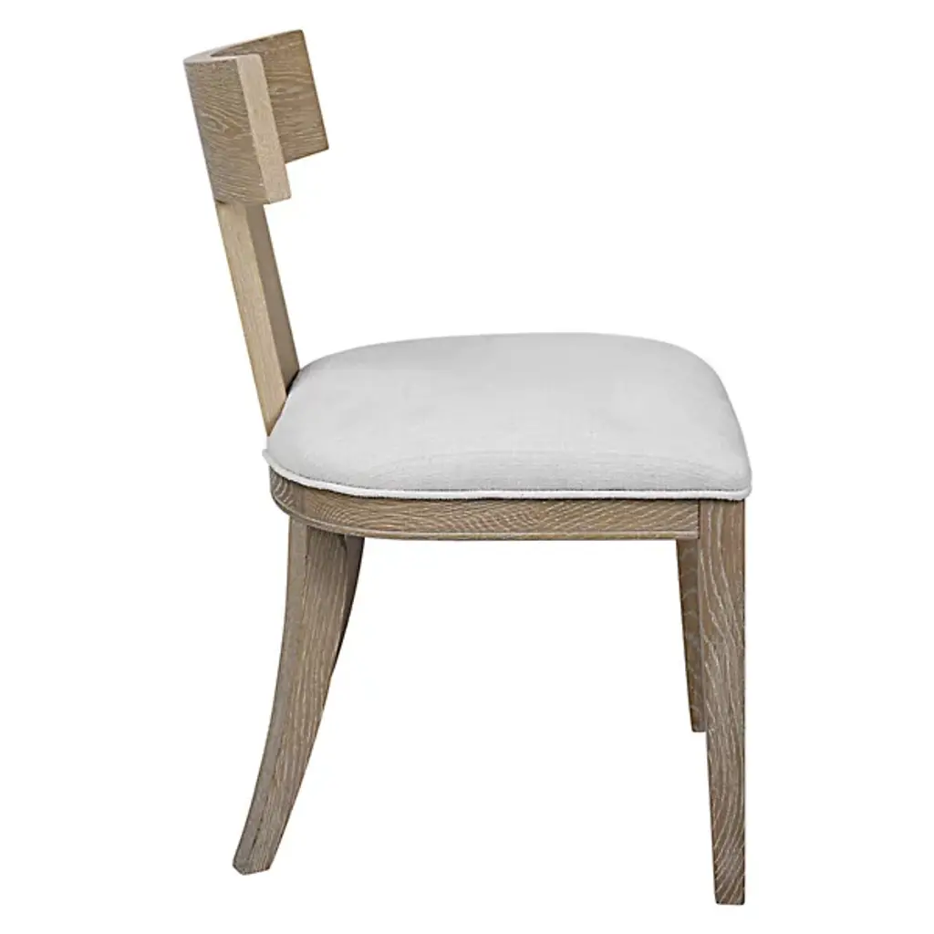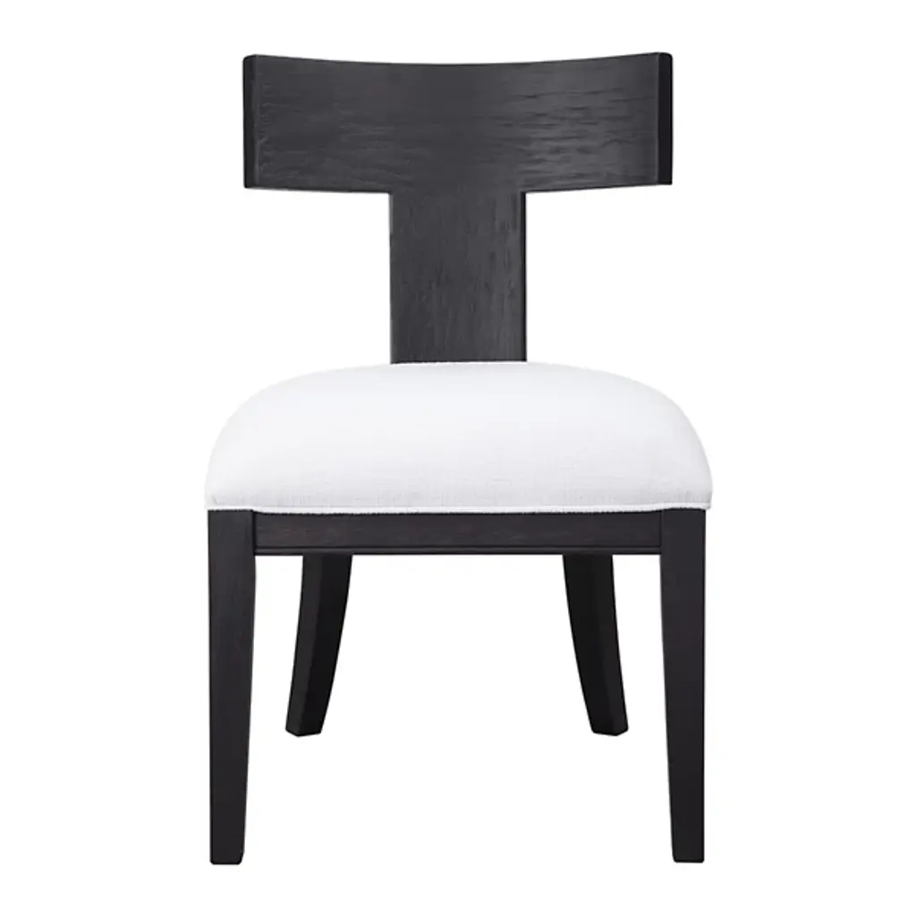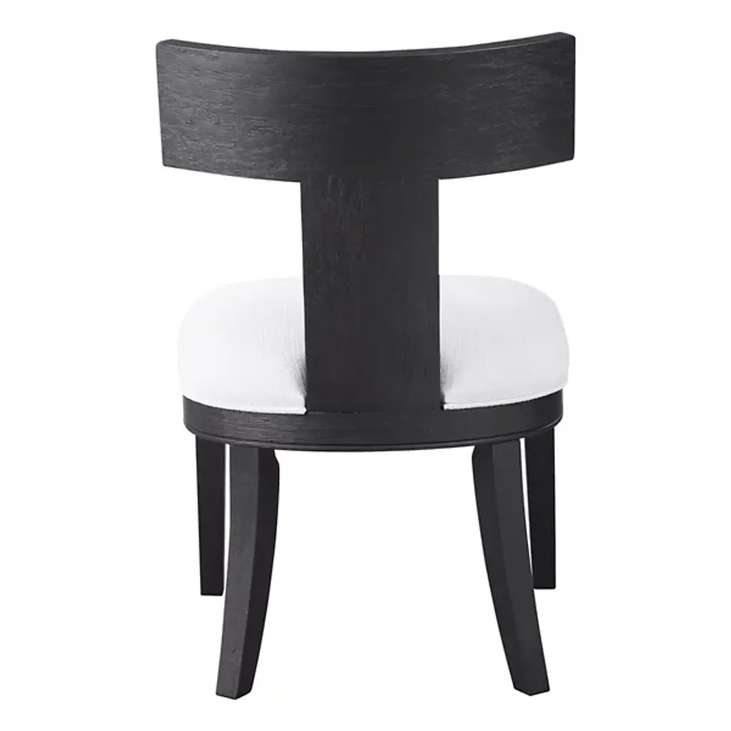 The Idris Dining Chair from Uttermost is a contemporary rendition of the classic klismos design, reimagined for modern living. Its smooth silhouette boasts a curved rubberwood frame, meticulously wire brushed and finished to create a striking contrast against the crisp white performance fabric cushion. Designer Matthew Williams engineered the chair to exude lasting sophistication and style. The chair's blend of clean lines and refined materials complements contemporary interiors, offering both comfort and elegance in dining spaces.