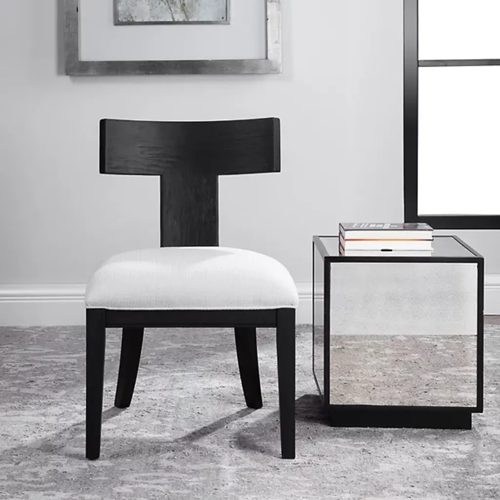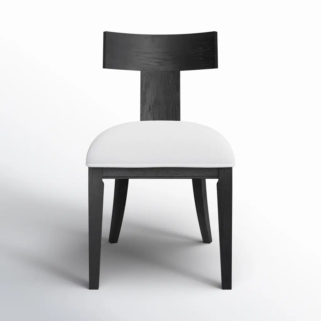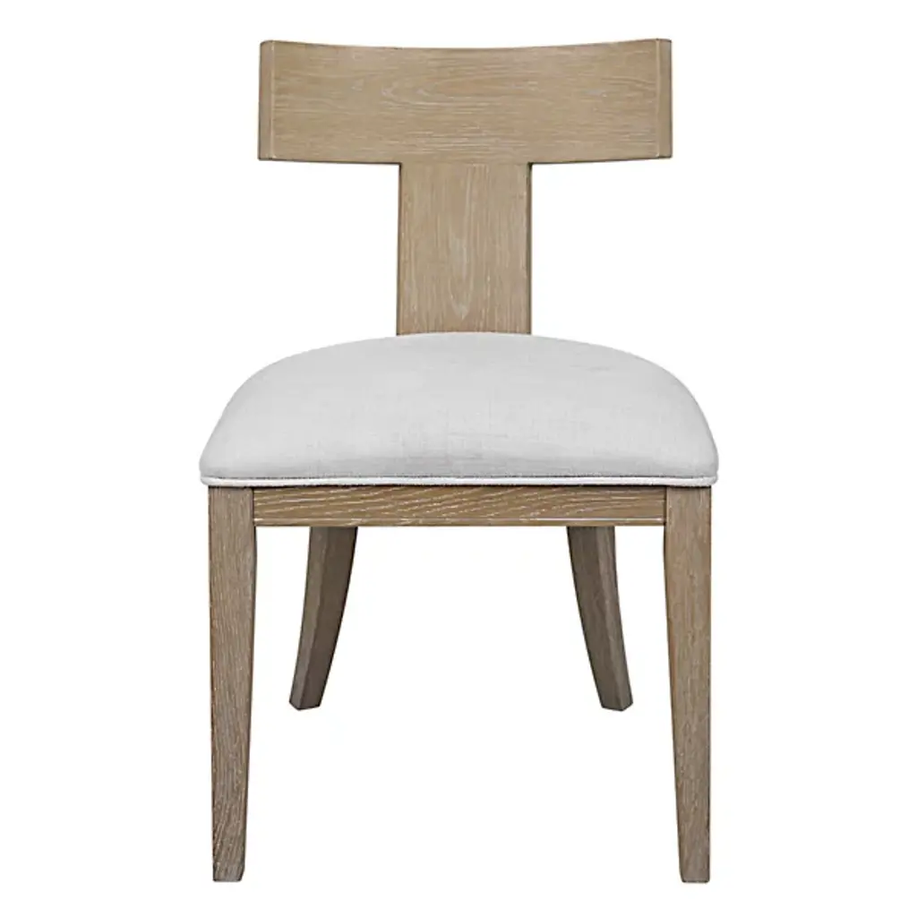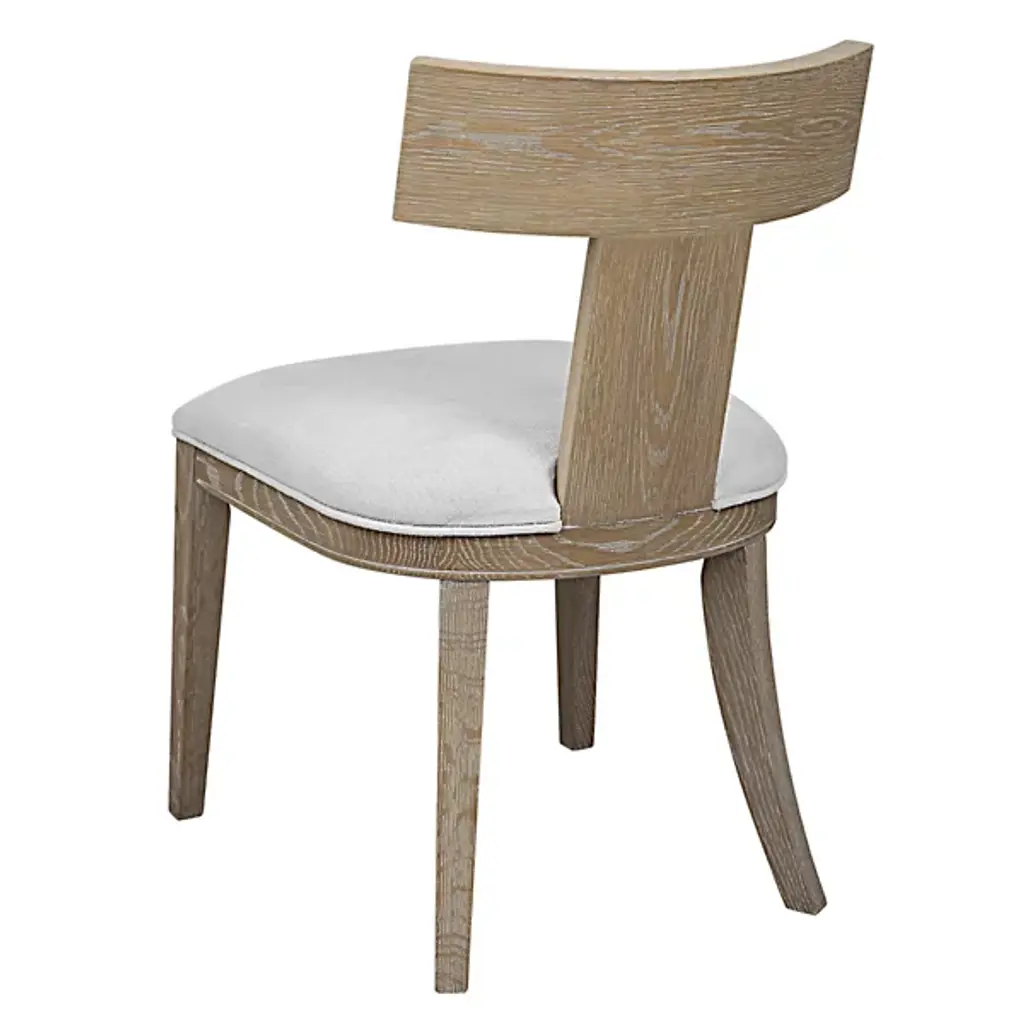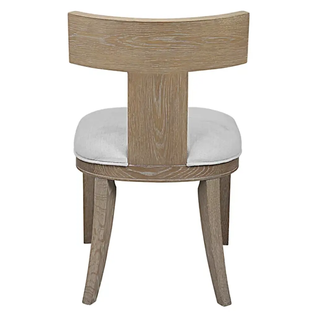 The Idris Dining Chair from Uttermost is a contemporary rendition of the classic klismos design, reimagined for modern living. Its smooth silhouette boasts a curved rubberwood frame, meticulously wire brushed and finished to create a striking contrast against the crisp white performance fabric cushion. Designer Matthew Williams engineered the chair to exude lasting sophistication and style. The chair's blend of clean lines and refined materials complements contemporary interiors, offering both comfort and elegance in dining spaces.