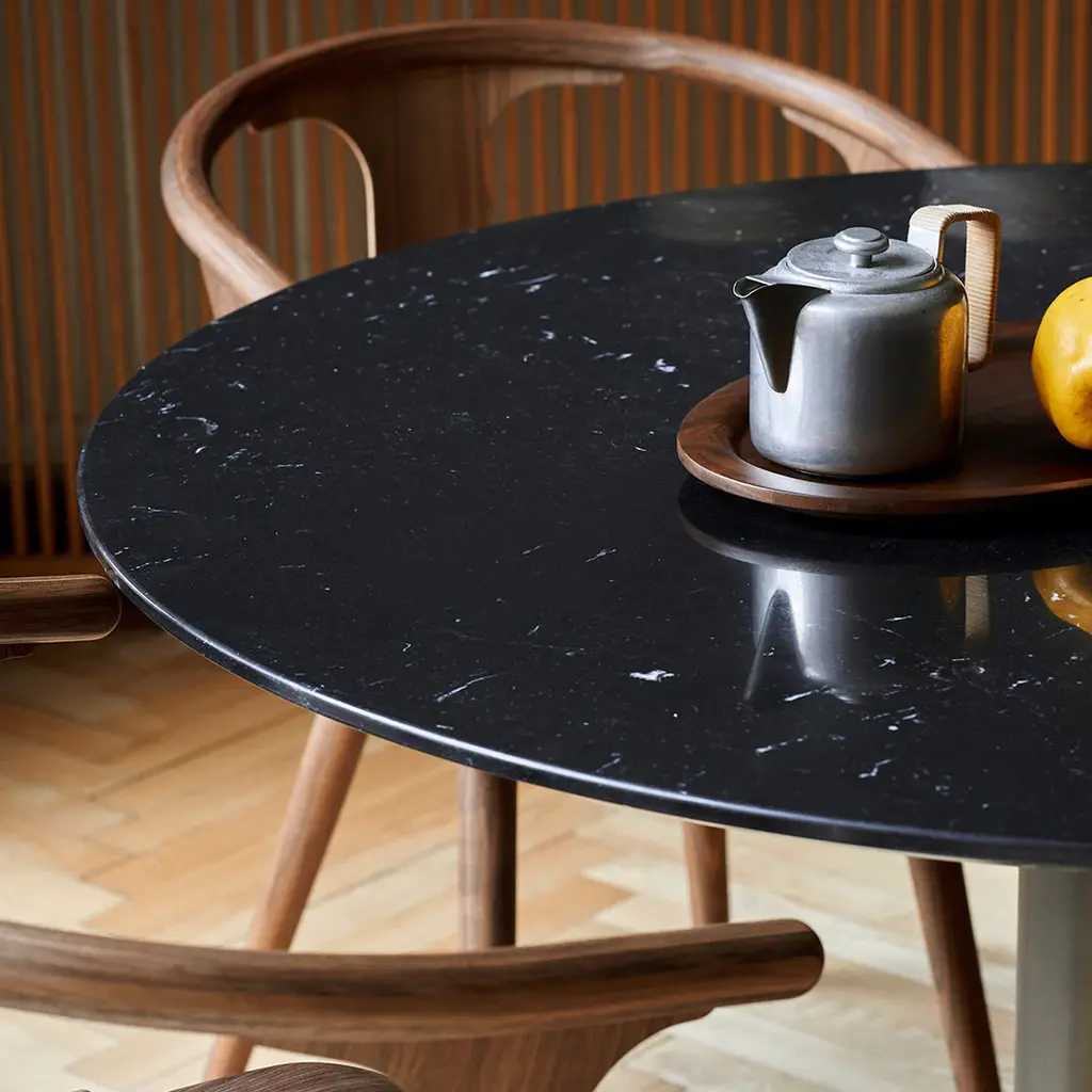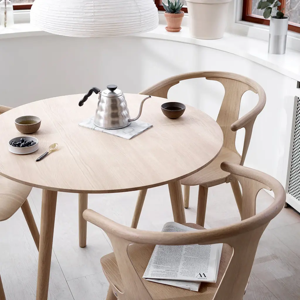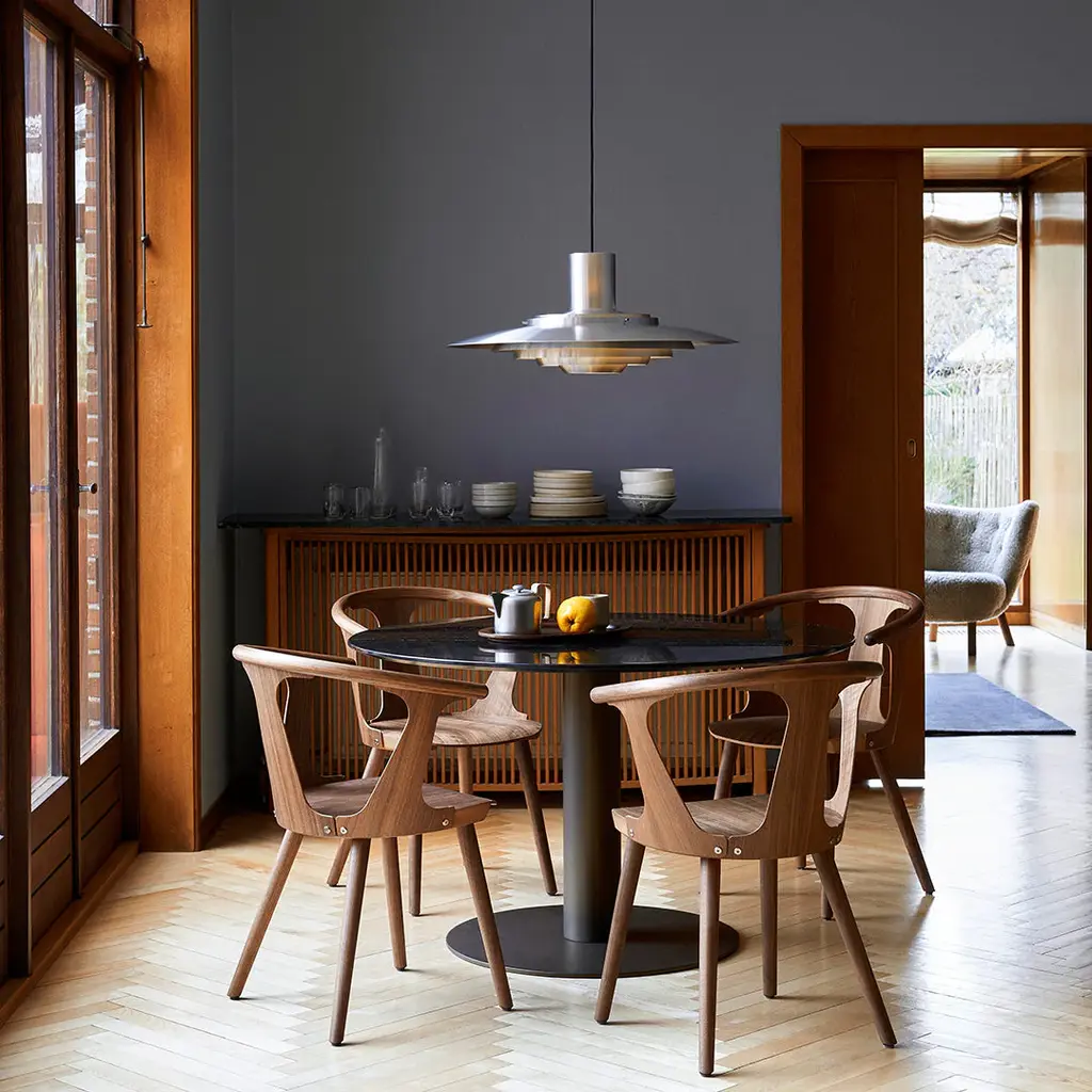 The interplay between positive and negative space is central to In Between, Sami Kallio's new chair for &Tradition. Its back and side panels provide a concrete shape and support, but forms are created equally by the gaps in between them