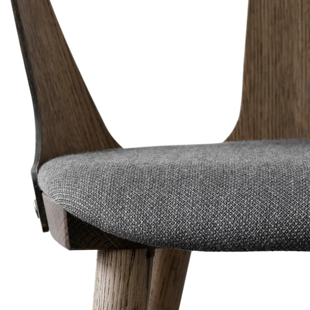 The interplay between positive and negative space is central to in Between, Sami Kallio's chair design for &Tradition. Its back and side panels provide a concrete shape and support, but forms are created equally by the gaps in between them. Kallios expertise in traditional woodworking craftsmanship is evident in the chair. in Between is produced using two classical techniques; compression molding (making it light and thin, yet strong) and woodturning (a technique that uses a lathe to achieve greater detail). Sami Kallio, with his solid grounding in the traditional woodworking techniques of Scandinavia and his eye for ingenious detail, has proven to be the ideal candidate to design the first wooden chair in &Traditions stable. The upholstered seat is the perfect addition to the wooden chair: it embraces modern lifestyles and long, cozy dinners around the dining table, without compromising the chairs light and elegant expression. The In Between chair is also available in COM/COL. Please call us to order.
