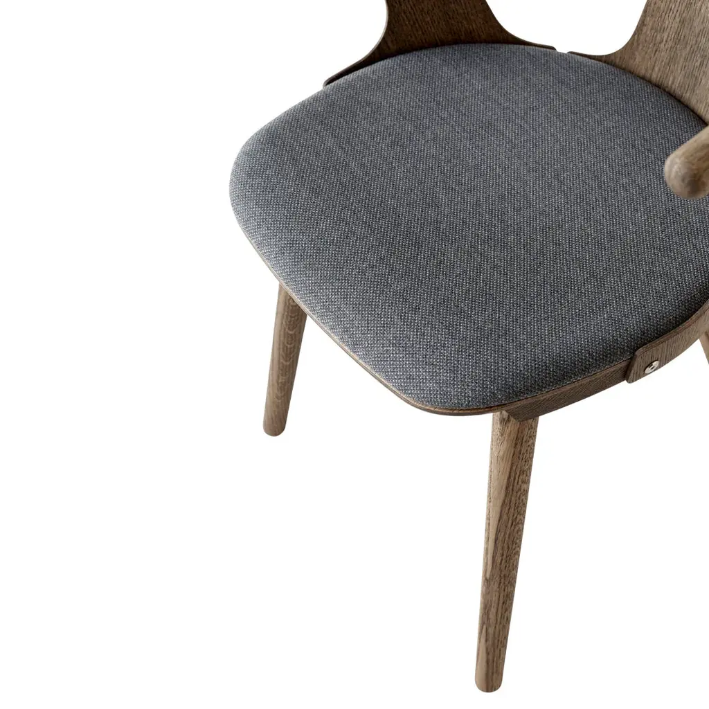 The interplay between positive and negative space is central to in Between, Sami Kallio's chair design for &Tradition. Its back and side panels provide a concrete shape and support, but forms are created equally by the gaps in between them. Kallios expertise in traditional woodworking craftsmanship is evident in the chair. in Between is produced using two classical techniques; compression molding (making it light and thin, yet strong) and woodturning (a technique that uses a lathe to achieve greater detail). Sami Kallio, with his solid grounding in the traditional woodworking techniques of Scandinavia and his eye for ingenious detail, has proven to be the ideal candidate to design the first wooden chair in &Traditions stable. The upholstered seat is the perfect addition to the wooden chair: it embraces modern lifestyles and long, cozy dinners around the dining table, without compromising the chairs light and elegant expression. The In Between chair is also available in COM/COL. Please call us to order.