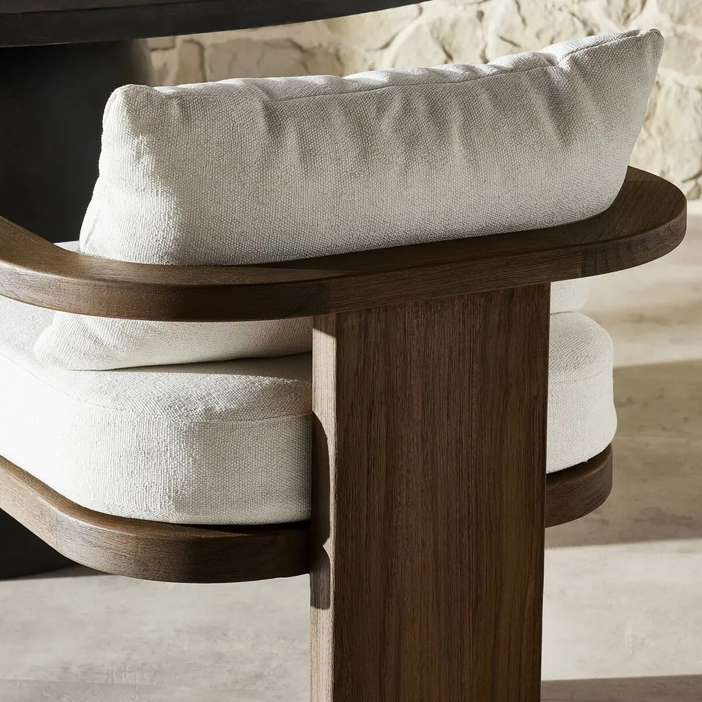 India Outdoor Teak Dining Armchair, Alessi Linen