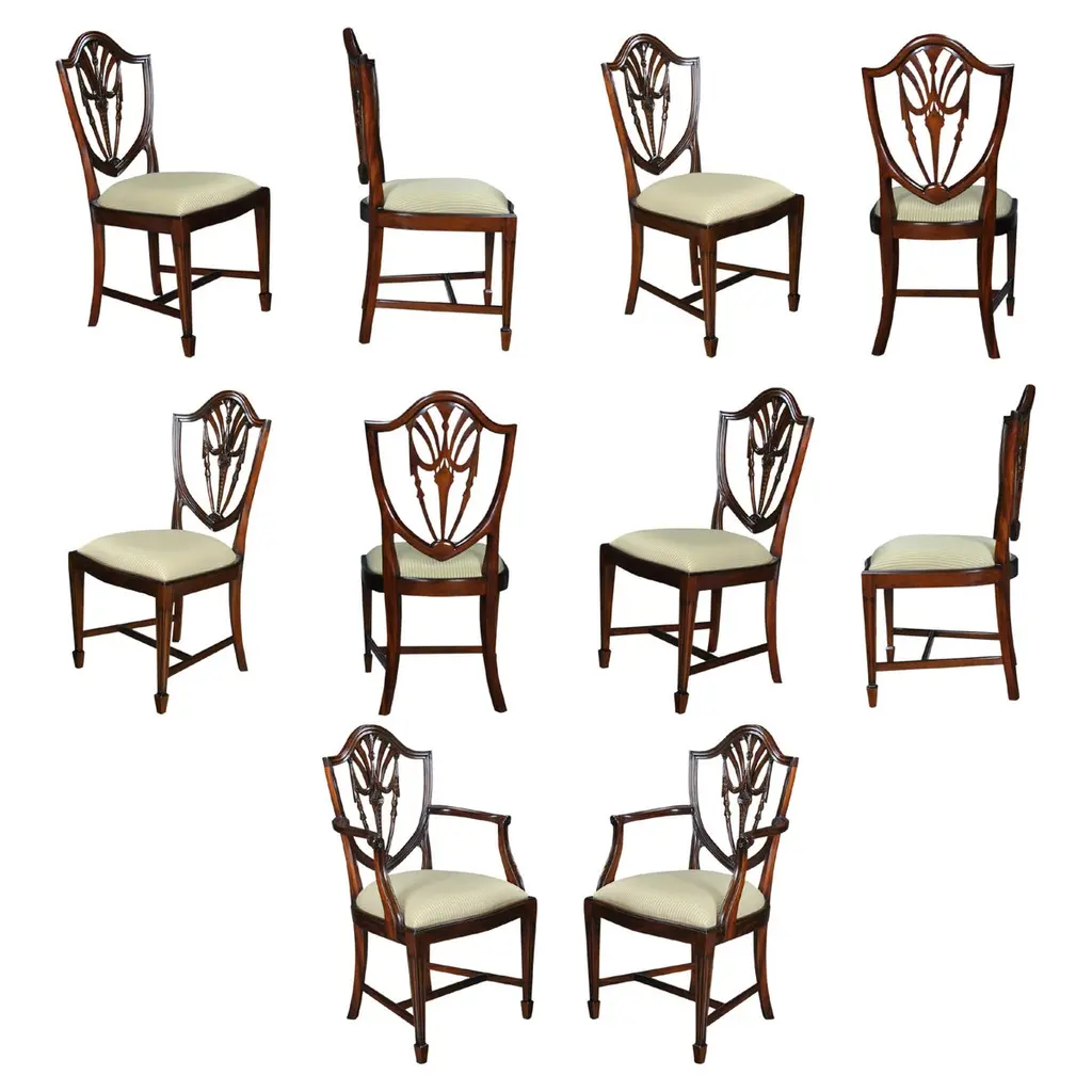 Inlaid Hepplewhite Chairs, Set Of 10