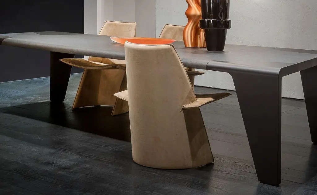 The Iperbole chair is a remarkable fusion of Emmemobili's craftsmanship, the innovative technology of bent plywood, and the purity of a clear, decisive line. Designed by Ferruccio Laviani, this chair is a fully upholstered piece available in various leather finishes. Its elegant design not only emphasizes comfort but also adds a touch of sophistication to any space. The seamless integration of high-quality materials and meticulous attention to detail make the Iperbole chair a standout choice for modern interiors. Whether placed in a dining room, office, or living area, it serves as both a functional seating option and a striking design element, embodying the perfect balance between artistry and practicality.