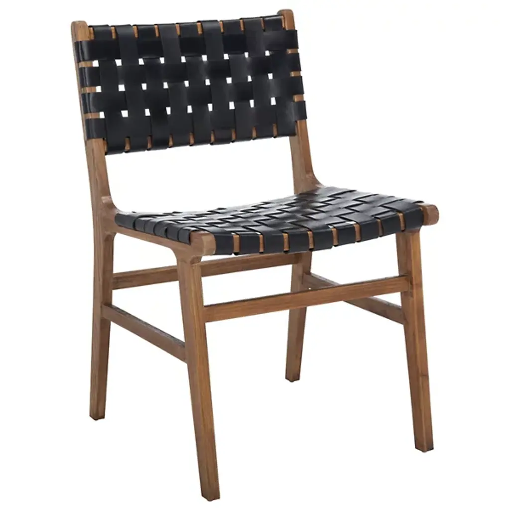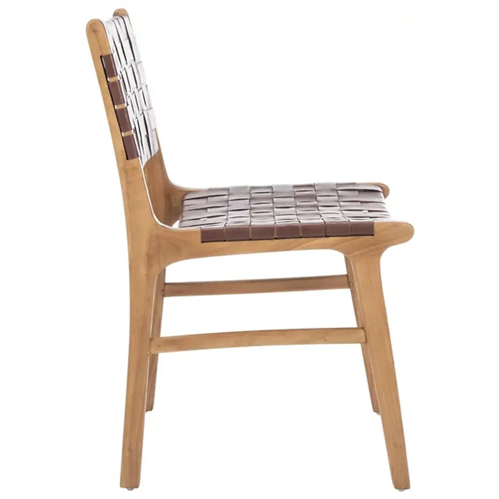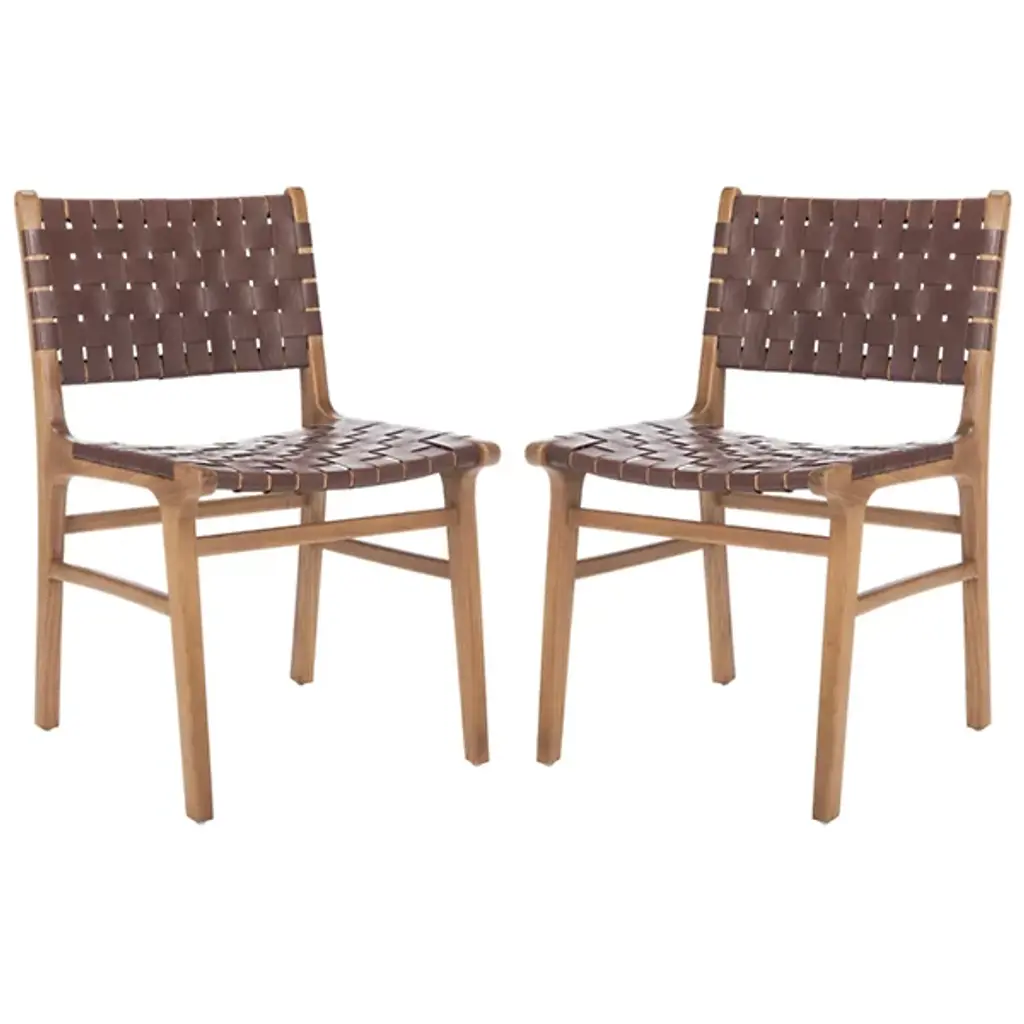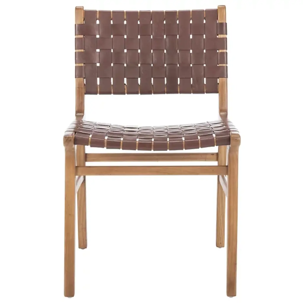 The Iracema Woven Leather Dining Chair, Set of 2 from Alder & Ore, introduces trendsetting style to your dining experience. Ideal for elevating the aesthetic of any decor, these chairs feature airy woven cognac leather seats and backs that exude absolute luxury with an accessible character. The natural wood frame perfectly complements the leather, creating a harmonious and stylish look. The Rustic Modern styles add a touch of sophistication and comfort to dining spaces.