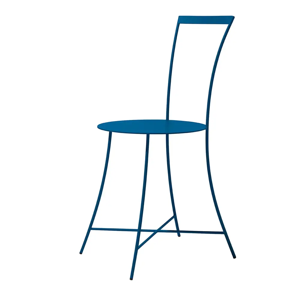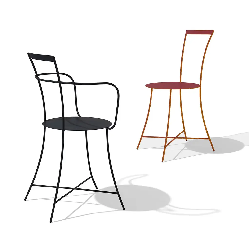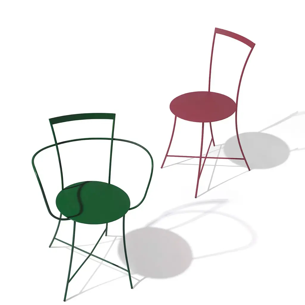 Best showcased alongside other pieces from this outdoor furniture series by Mario Scairato for an eclectic yet cohesive look, this chair embodies exceptional visual lightness and minimalist contemporary aesthetic. Welcoming and ergonomic, it is handcrafted of reinforcing steel powder-coated in a delicate yet impressive wine-red shade.