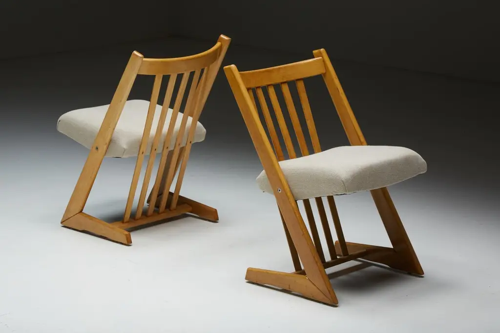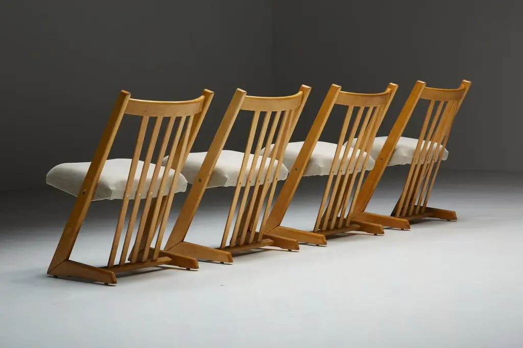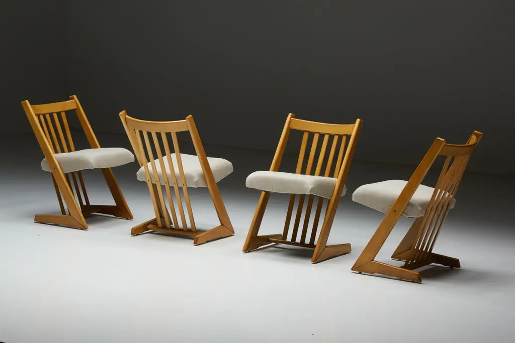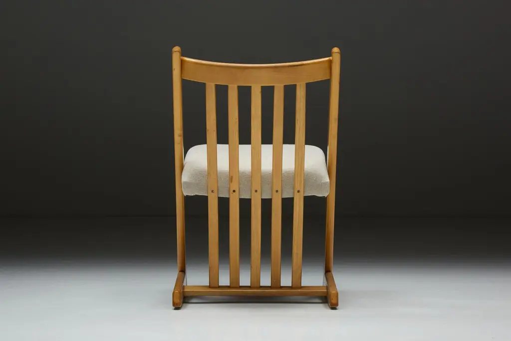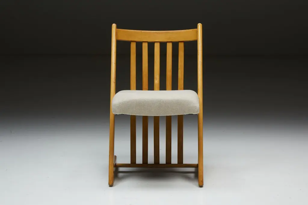 Italian Design; Dining Chairs; Mid-Century Modern; Italy; 1960s; Modernist; Italian dining chairs crafted in the 1960s. Upholstered in a luxurious beige fabric, these chairs exude understated sophistication, making them the perfect addition to any dining space. With their iconic midcentury design, these chairs provide a touch of Italian craftsmanship that stands the test of time.