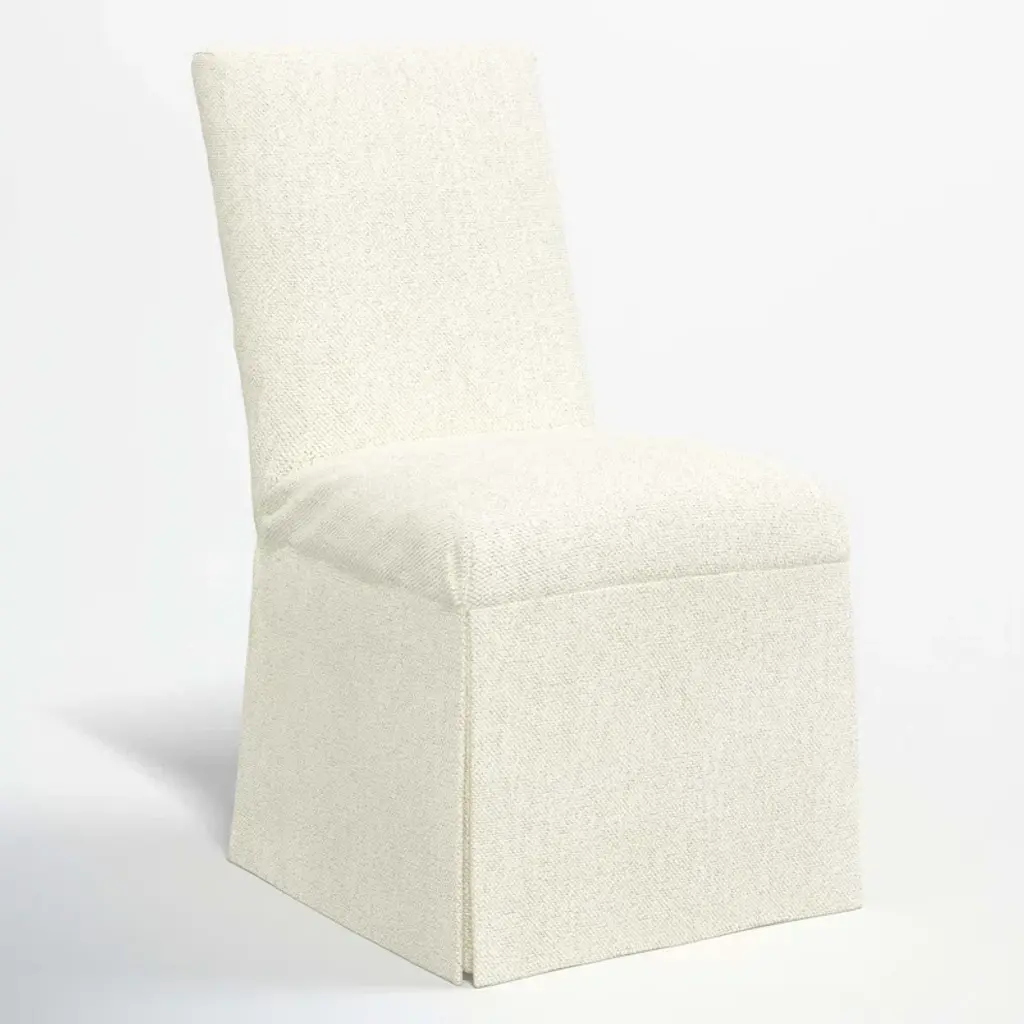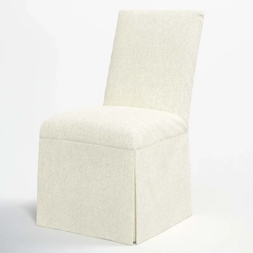 When ordinary seating simply won’t do, select our hand upholstered skirted dining chair as a compliment to your table. Enveloped in Classic Boucle fabric that was carefully sourced and chosen for its quality, this chair is made to order and manufactured in Illinois. We believe a good chair is an investment, and construct ours accordingly—with a sturdy frame and real wood legs under ample skirting. Easy to assemble and comfort-tested, this delightful piece definitely ticks all the boxes.