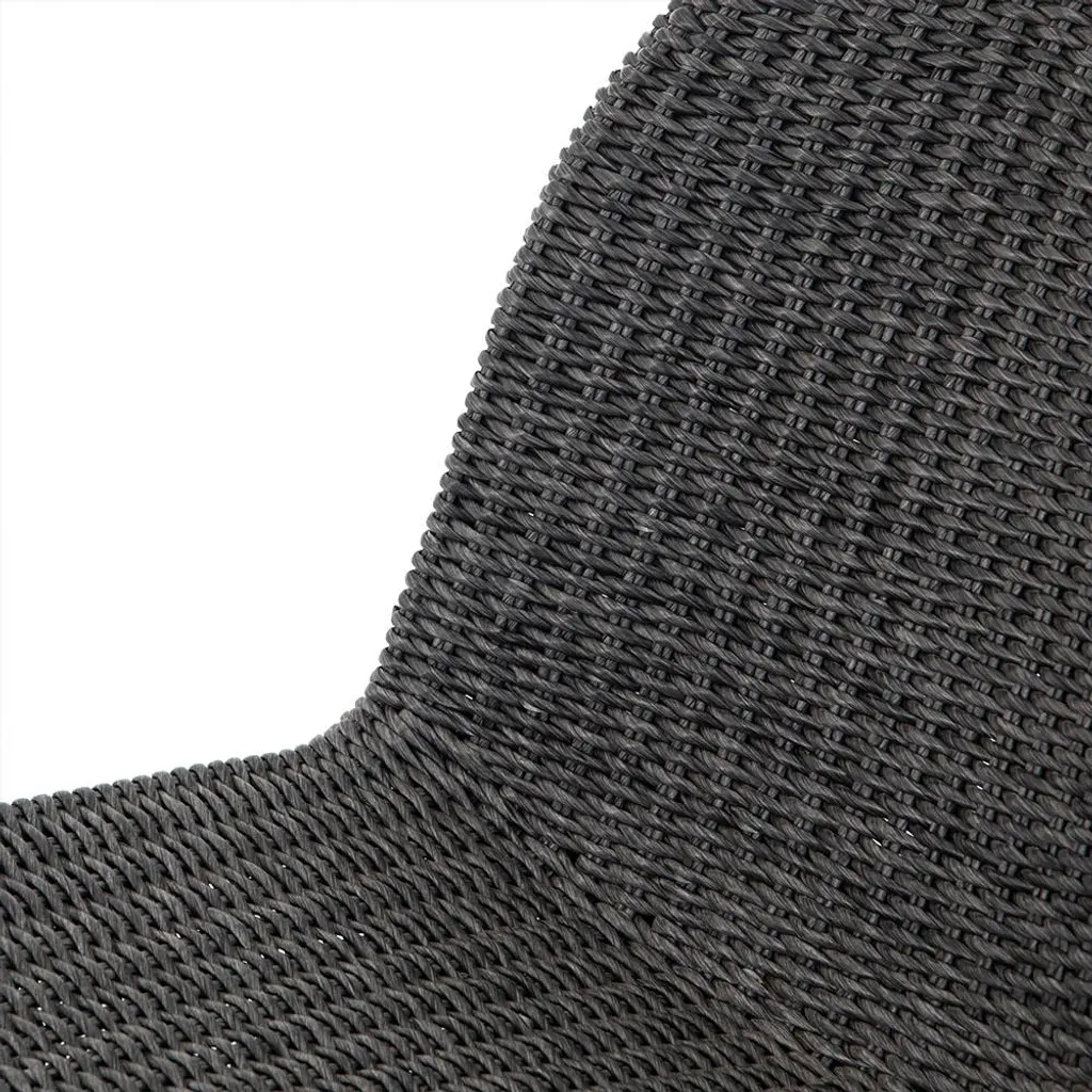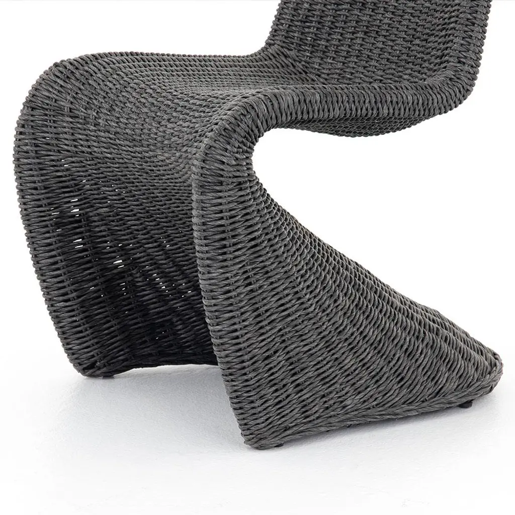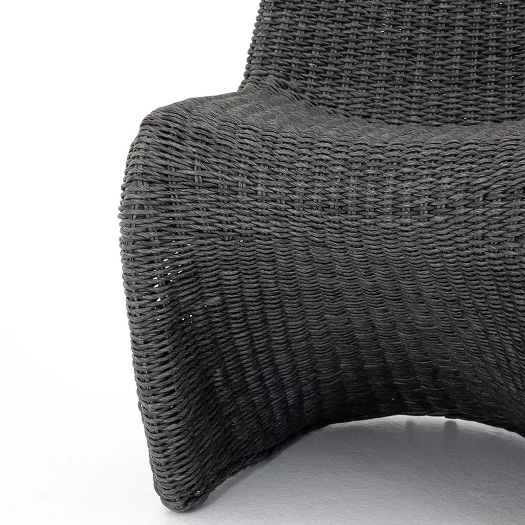 The Ivanna dining side chair is a true sculptural work of art. With an all-weather wicker weave, this exquisite dining chair is perfect for indoor or outdoor use. Finished in vintage coal black, this striking piece elevates the look of any dining area.