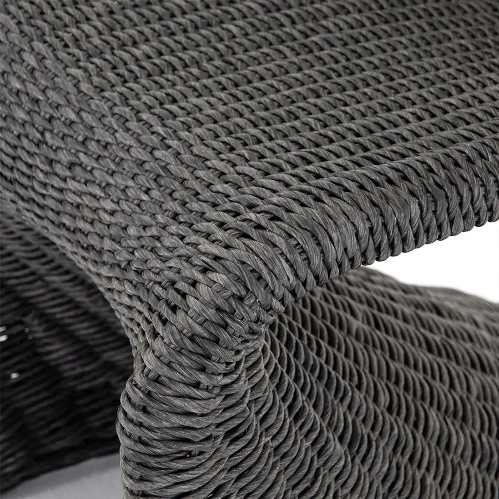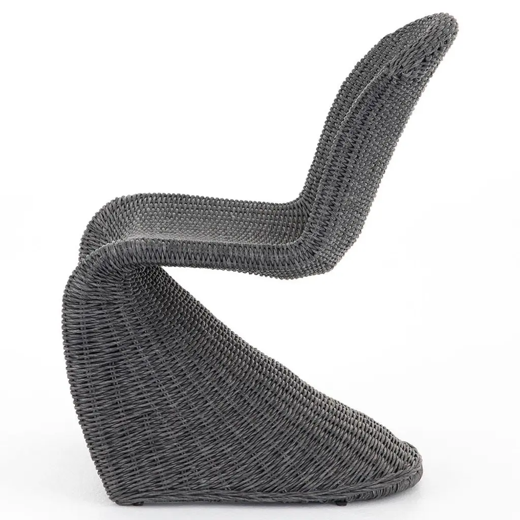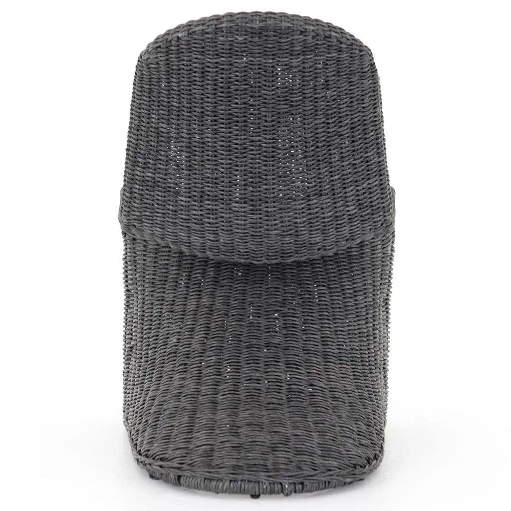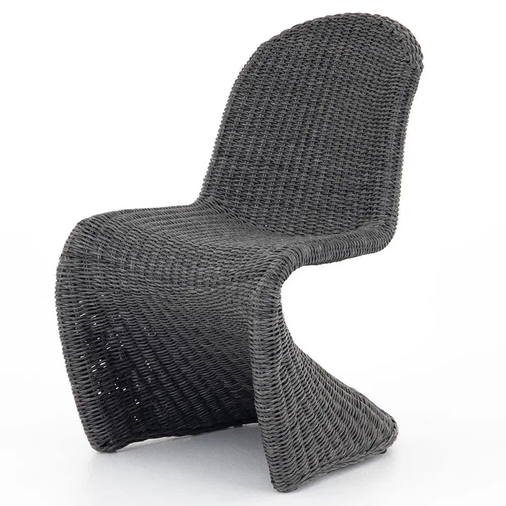 The Ivanna dining side chair is a true sculptural work of art. With an all-weather wicker weave, this exquisite dining chair is perfect for indoor or outdoor use. Finished in vintage coal black, this striking piece elevates the look of any dining area.