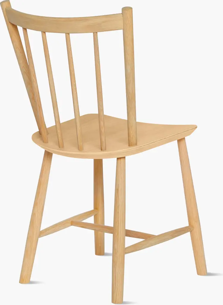 Danish designer Børge Mogensen worked as a cabinetmaker before studying furniture design at the Danish School of Arts and Crafts and training as an architect at the Royal Danish Academy of Fine Arts. His timeless J41 Chair (1940s) features a slightly slanted backrest and widely spaced spindles, delivering comfort and a clean aesthetic. It's now produced by the Danish design company HAY. Made in China.