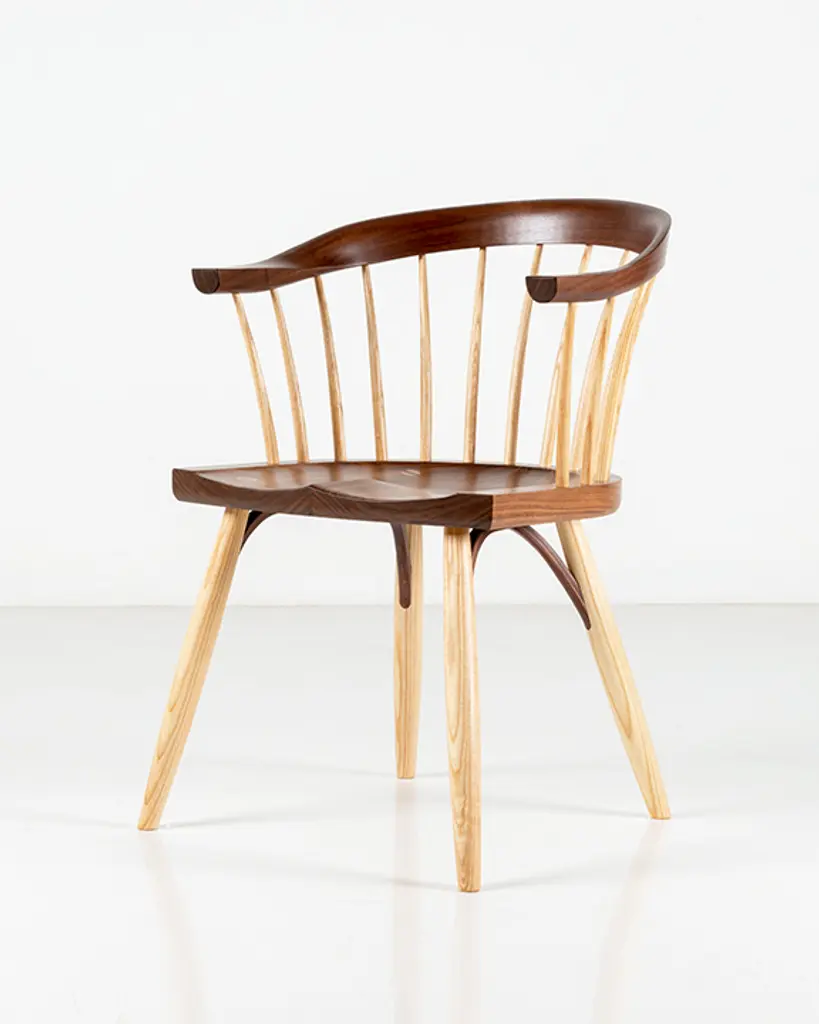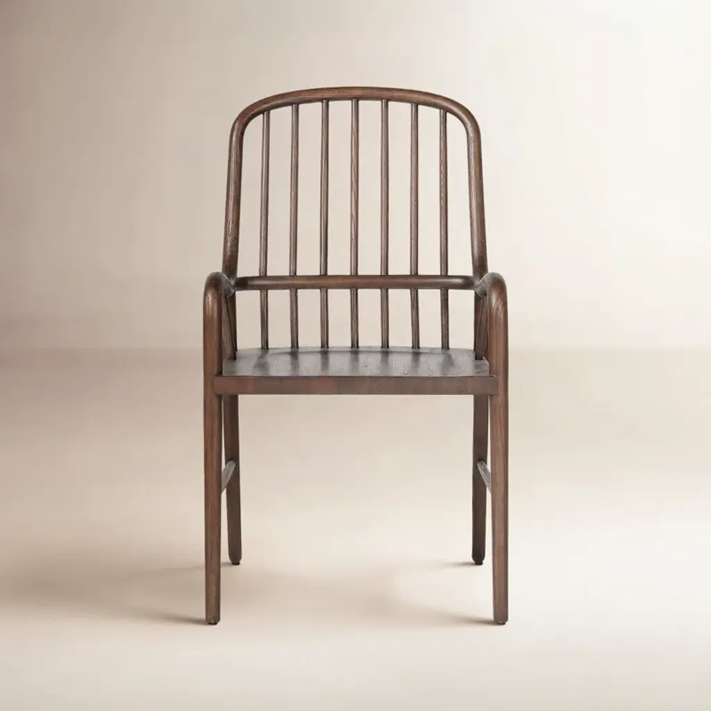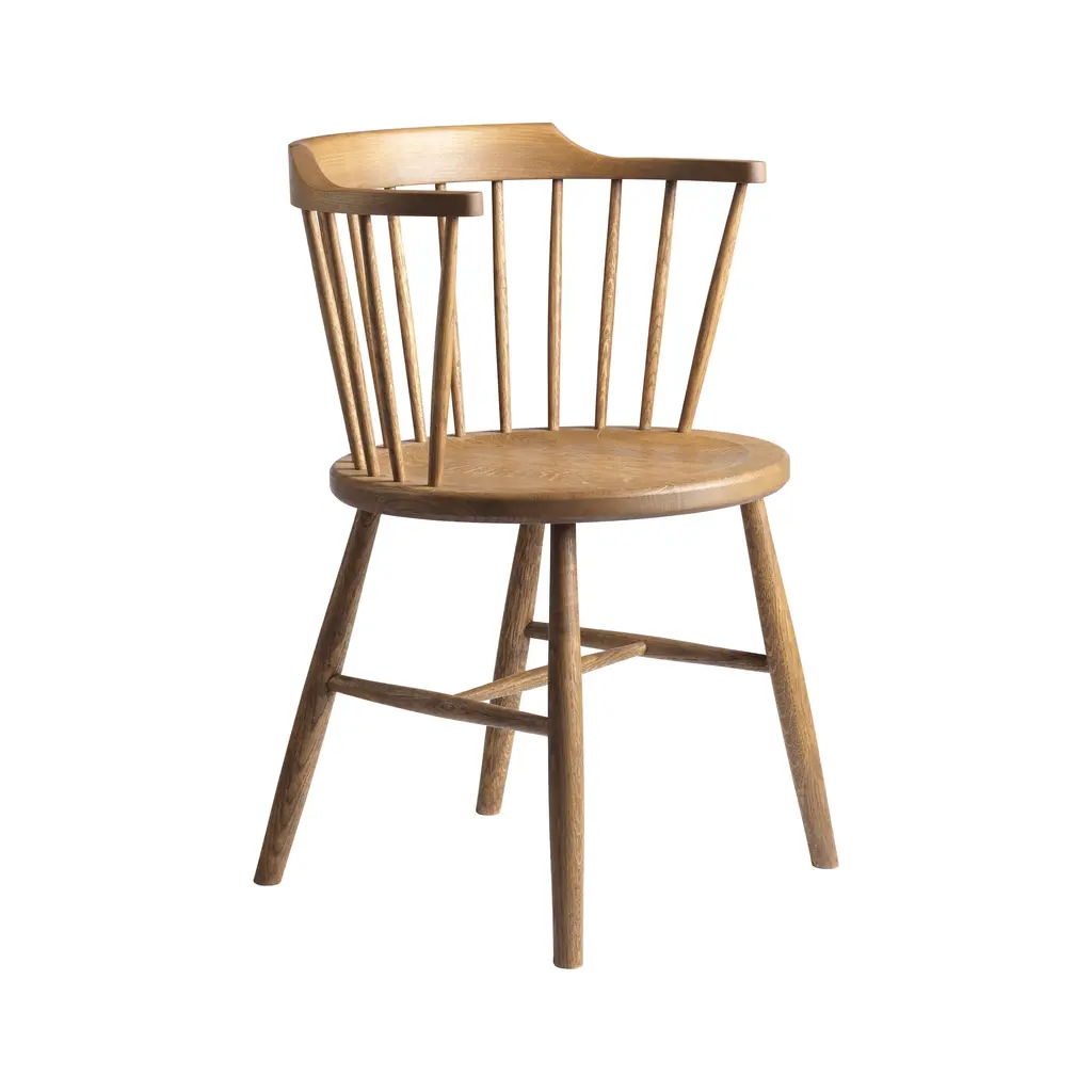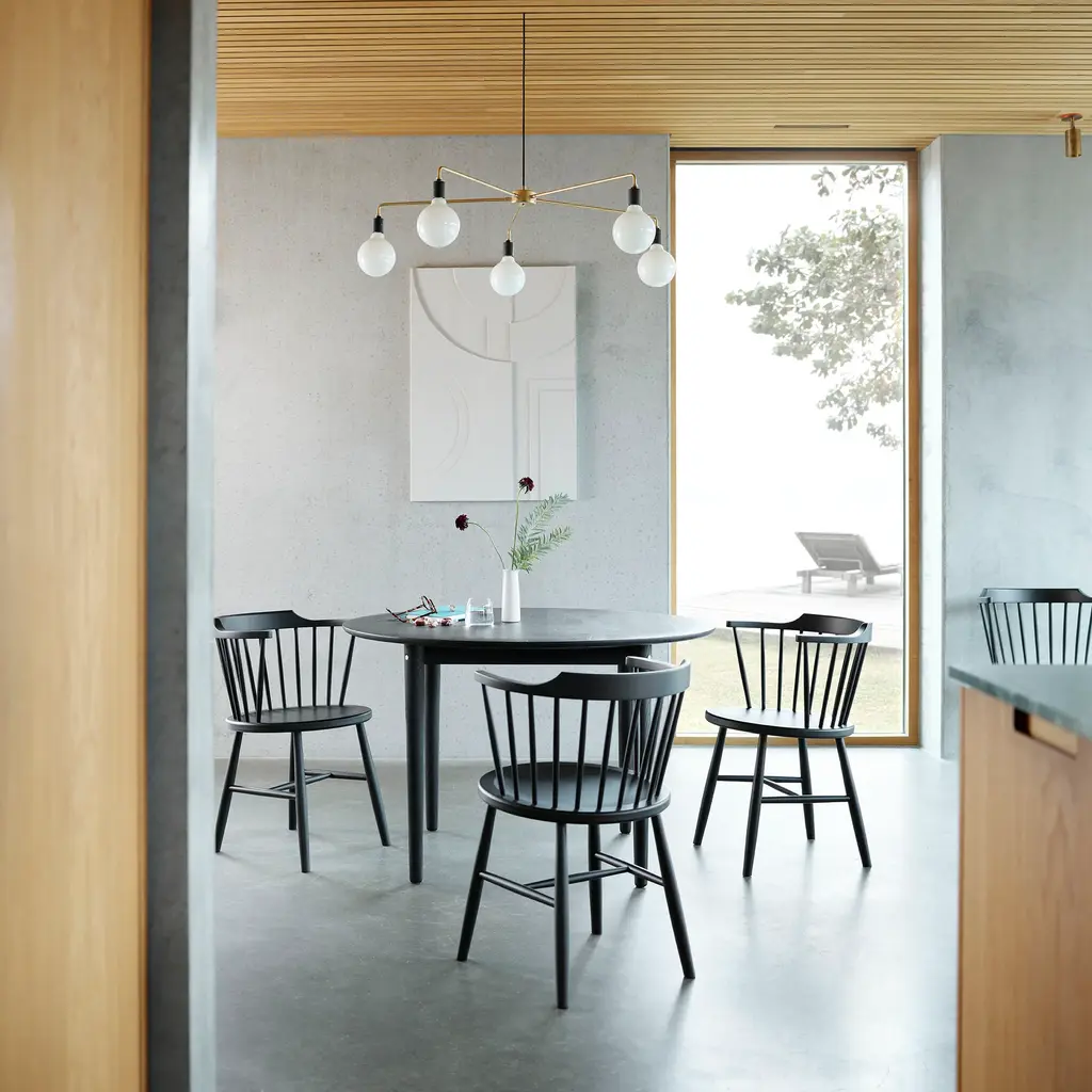 The J18 Dining Armchair from FDB Mobler, designed by Borge Mogensen in 1945, exemplifies Nordic design philosophy through its clean lines and functional simplicity. Inspired by eighteenth-century English Windsor chairs, this refined piece features a solid backrest that flows seamlessly into armrests designed to fit beneath most tabletops. The gently sloping, bowl-shaped wooden seat ensures exceptional comfort while maintaining the understated elegance that defines Mogensen's timeless aesthetic. Highlights