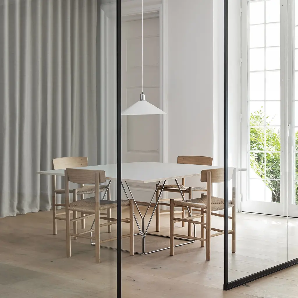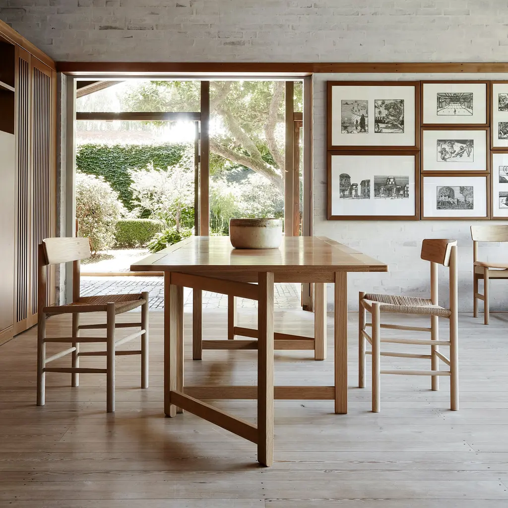 More than 75 years on, designer Børge Mogensen’s truly iconic J39 side chair — a standard oft-seen in private homes, brasseries and public institutions ever since — seems destined to happily endure. Lauded for its sturdiness, versatility and the power of its modest character, the wooden seating has been continuously produced since its launch in 1947. Fashioned in solid timber in oak and walnut varieties, J39 offers a range of finishes to complement its emblematic woven paper-cord seat.