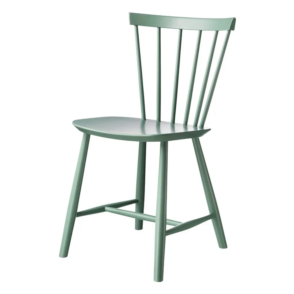 FDB Møbler’s J46 chair is a Danish design classic by Poul M. Volther from 1956. When first released, J46 was a fresh contrast among the typical, heavier dining chairs of its age. Made of solid beech, the J46 chair combines a V-shaped spindled backrest with a wide, comfortable seat. The lightweight chair will suit dining tables of various different styles, and it also makes a characterful centerpiece in other surroundings.