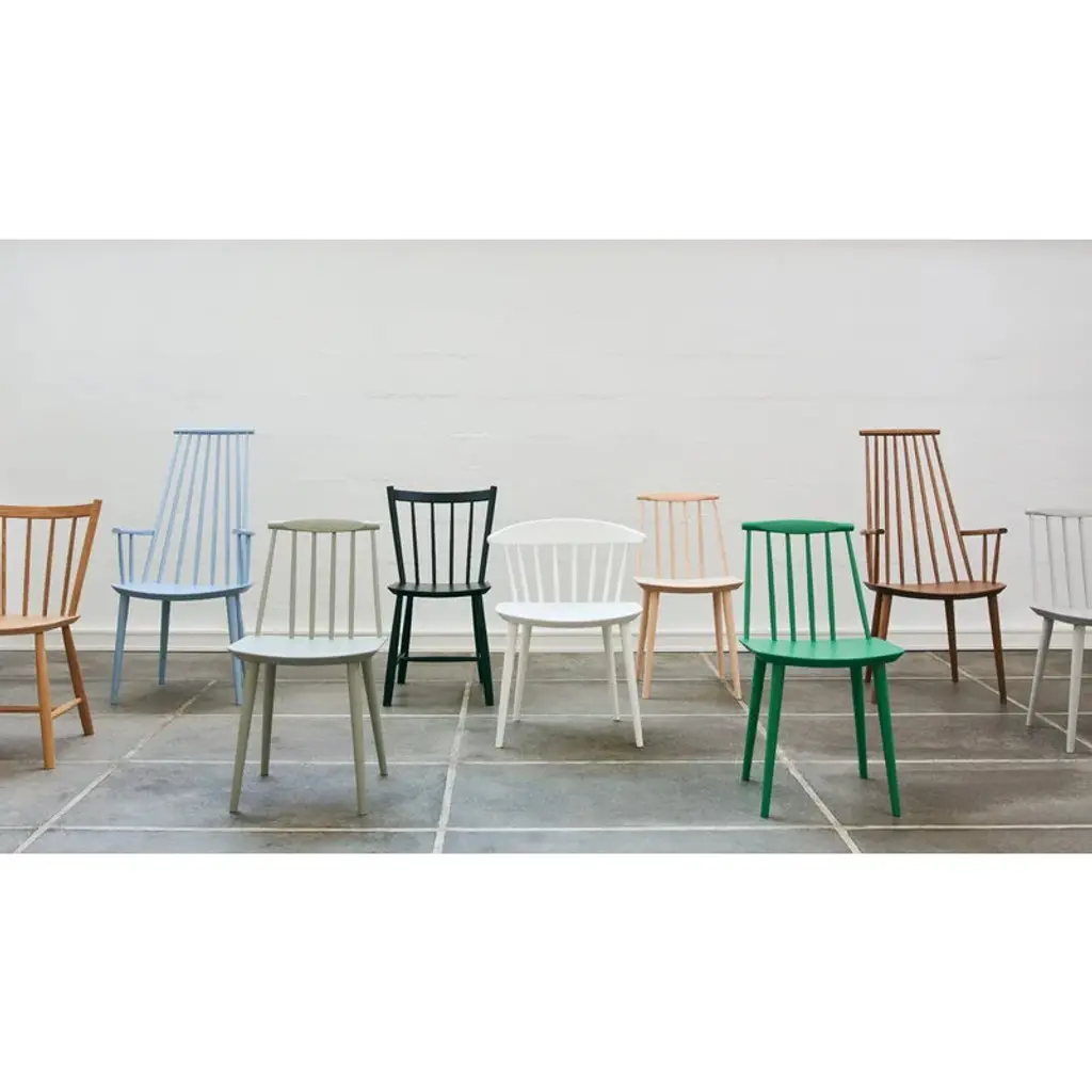 J77 dining chair, designed by Folke Pålsson, is a classic wooden chair made of solid beech. The wide seat and curved spindle back create a comfortable seating pose, and the J77 chair’s classic design honors the traditions of Scandinavian design. J77 dining chair is part of HAY's 2011 relaunch of the Danish furniture classics originally made for FDB, the Danish Consumers’ Co-operative Society. FDB’s furniture production started in the 1940s and their main idea was functionalist and democratic design for the people. Thanks to industrial production, FDB was able to manufacture high-quality design furniture for ordinary people at relatively low prices. In 2021, HAY renewed the surface treatments of its wood furniture by replacing their paints and lacquers with more environmentally friendly, water-based alternatives. This chair is of newer production and has been finished with a water-based lacquer.