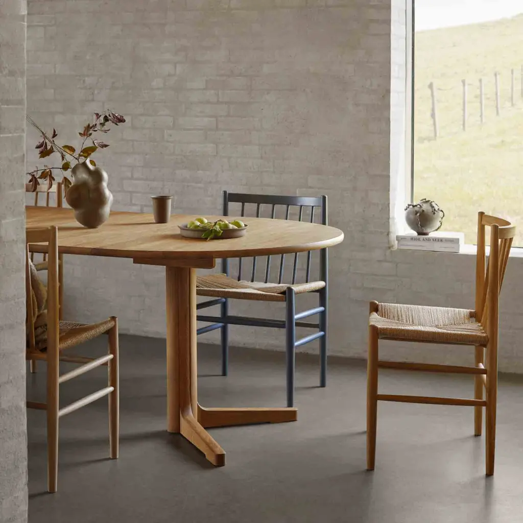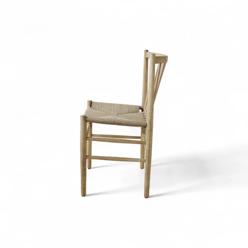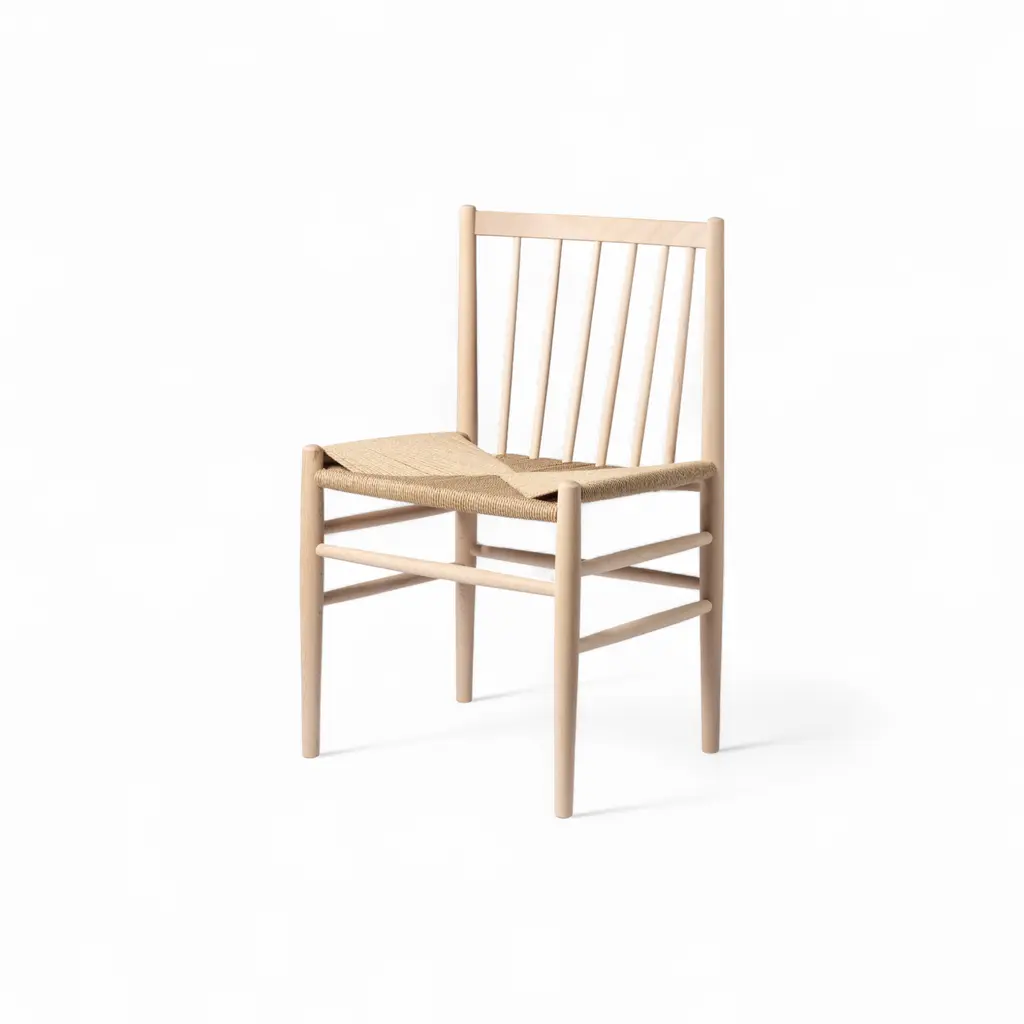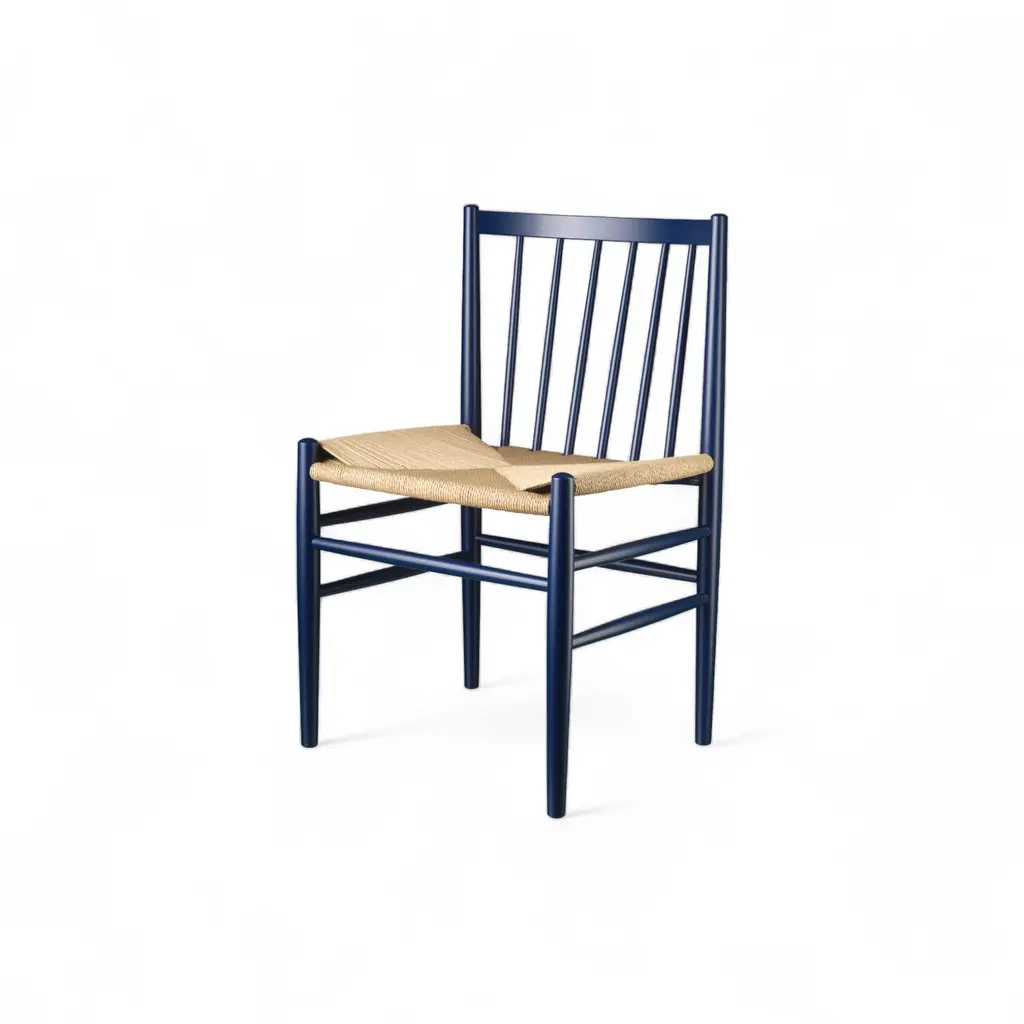 Originally designed by Jørgen Bækmark for FDB Møbler’s celebrated 1950s collection, the J80 Chair is built with lasting comfort and everyday use in mind. It pairs a solid wood frame with a handwoven paper cord seat, offering a sturdy yet lightweight structure. The slightly angled backrest and wide seat provide a relaxed sitting position, whether at a dining table or as a standalone accent. Available in a range of finishes, the J80’s straightforward construction and quiet details make it a versatile piece that suits both traditional and modern interiors.