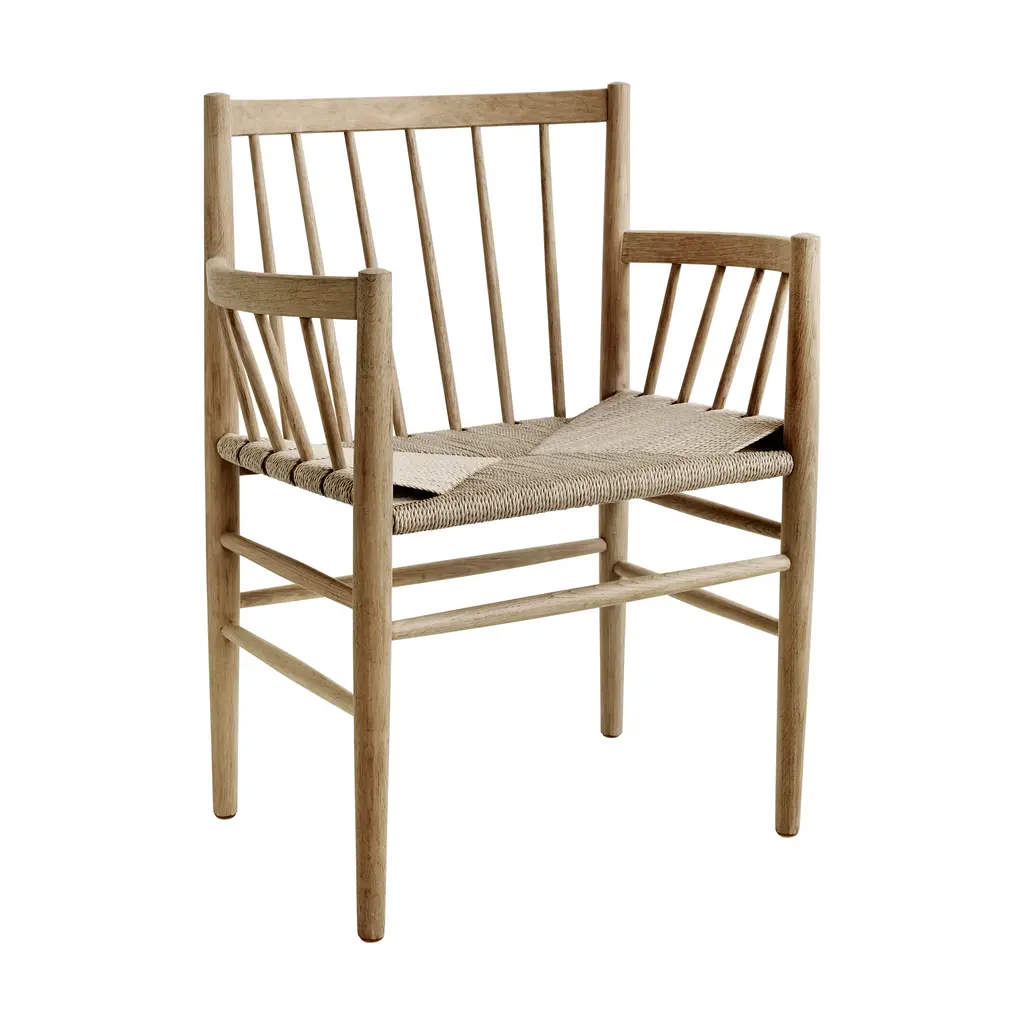 The J81 Dining Armchair by Jørgen Bækmark is a refined extension of the iconic woven series from FDB Mobler’s 1950s golden era. Featuring elegant armrests and crafted with solid wood and durable paper cord, this chair offers lasting comfort and timeless style. Its sophisticated design and quality materials ensure it remains a distinguished and versatile choice for any dining setting. Highlights