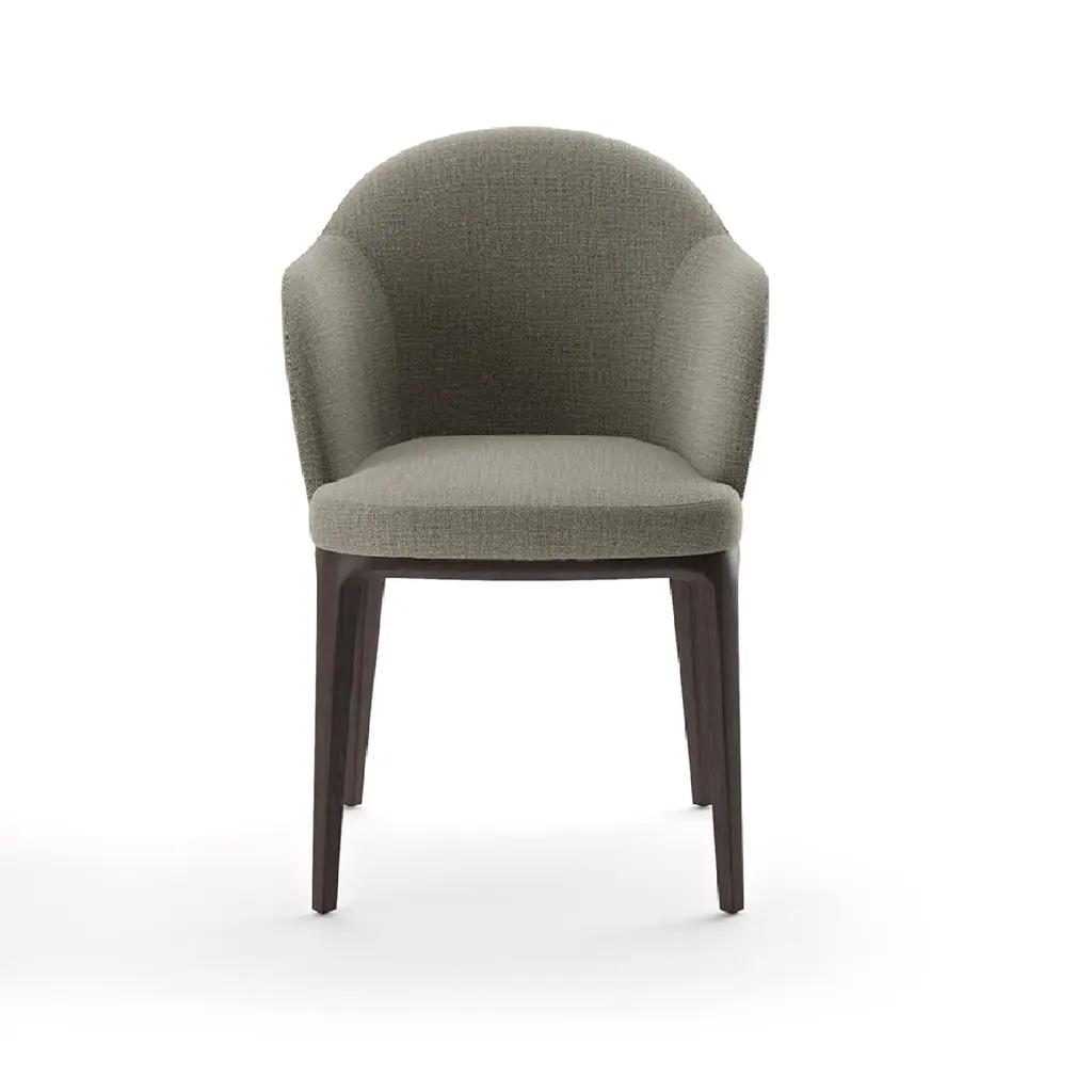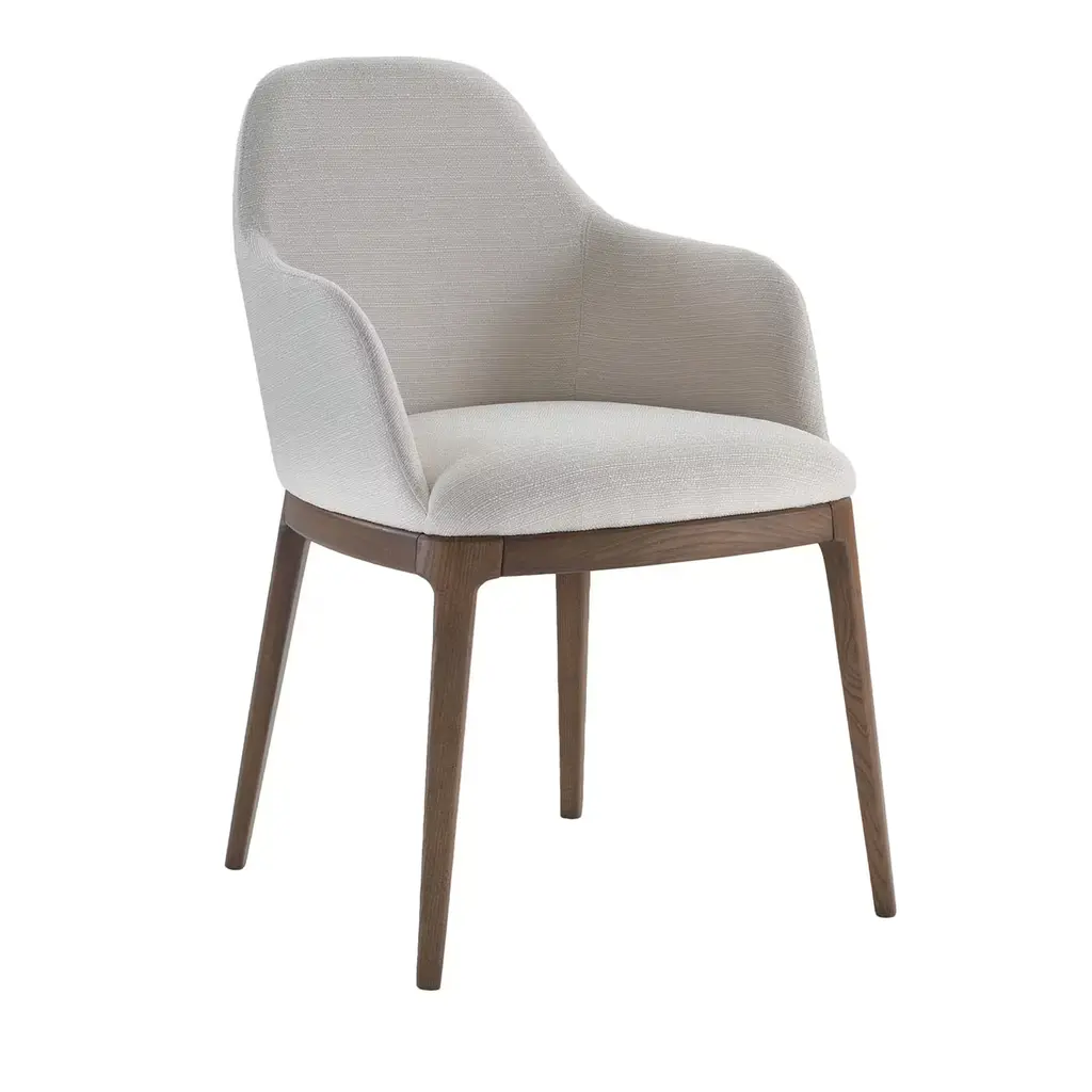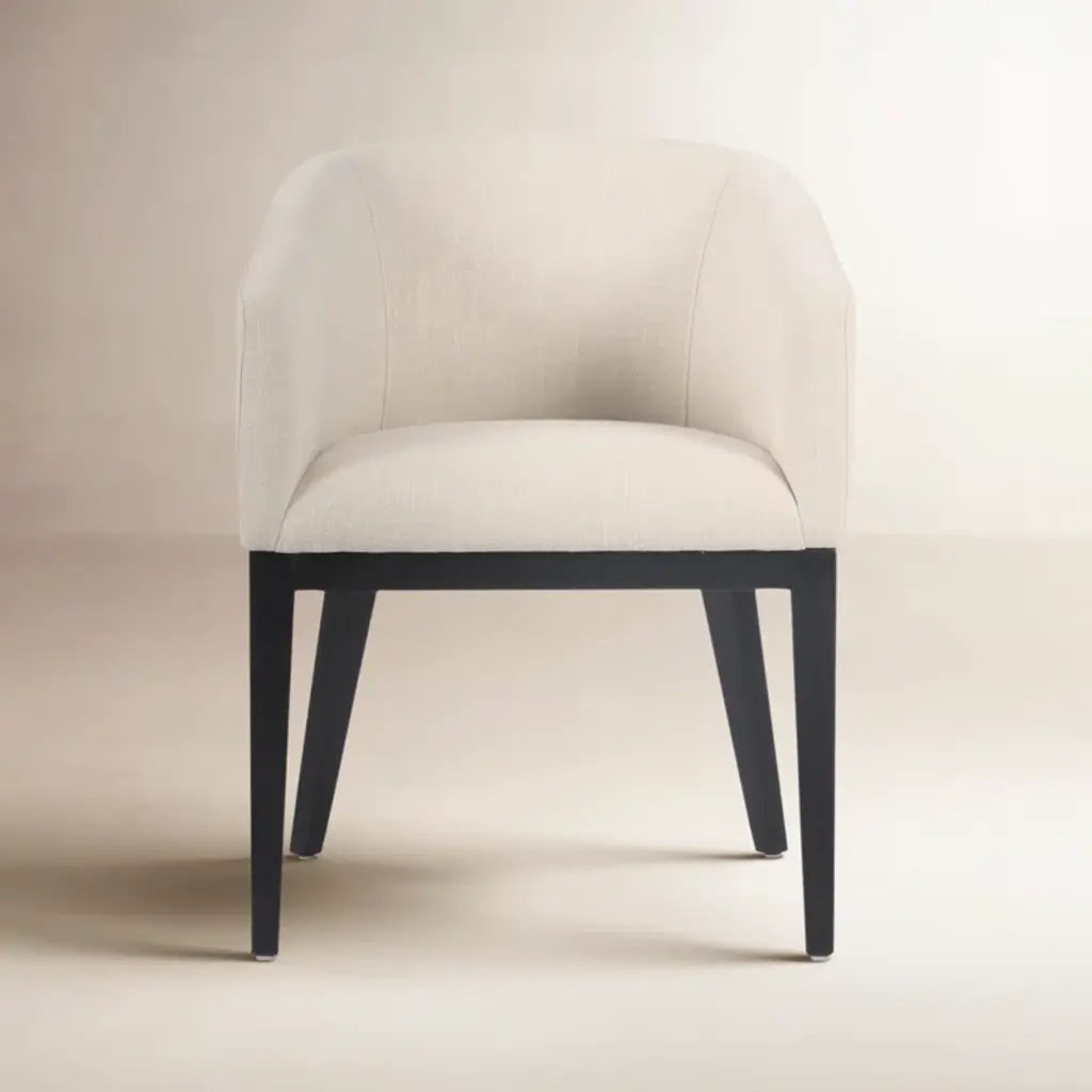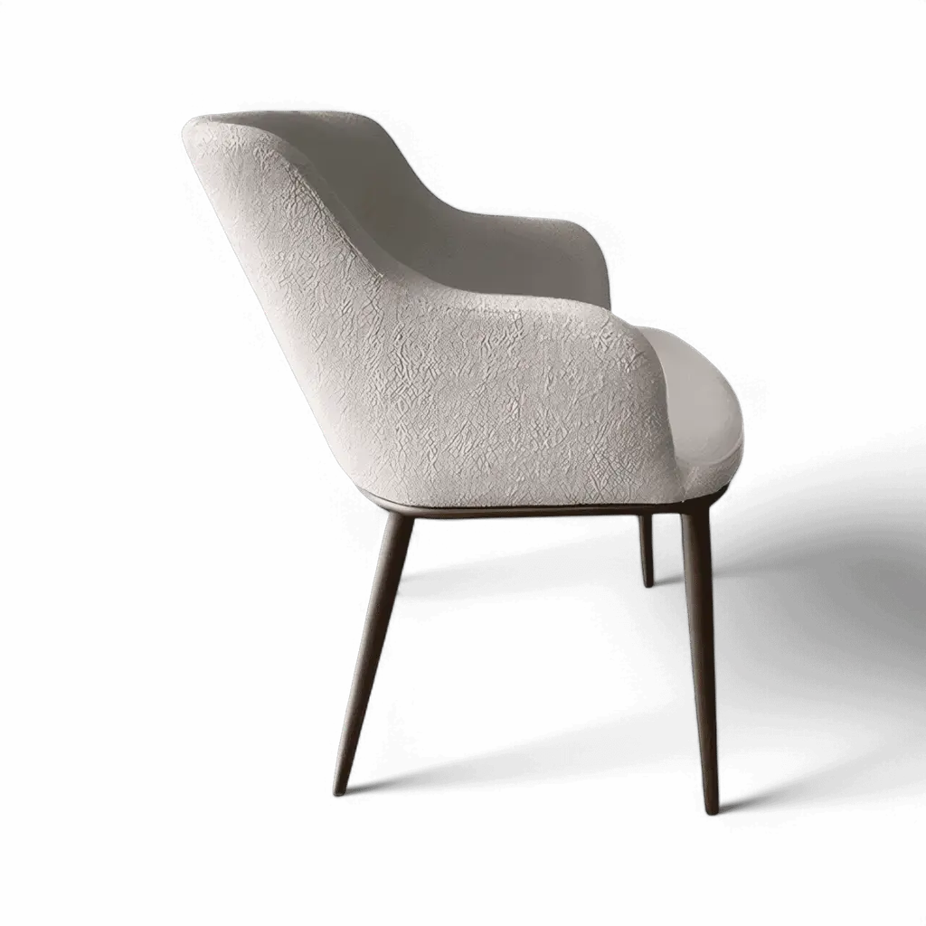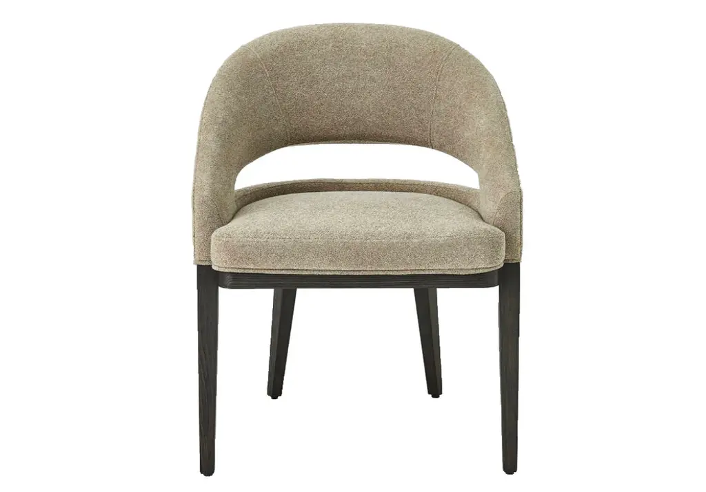 The Jade Dining Chair in White Boucle is a stylish blend of modern elegance and cozy comfort. Upholstered in luxurious white boucle fabric, it offers a soft, textured finish that enhances its inviting appeal. The chair features a rounded back and gently sloped arms, creating a fluid, sophisticated silhouette that complements various dining room aesthetics. The brushed brass-colored legs provide a sleek, metallic contrast, adding a touch of glamour and stability to the design. Perfect for elevating any dining space, the Jade Dining Chair combines timeless style with functional comfort.Boucle Upholstery: 100% Polyester | Legs: Brushed Brass Metal