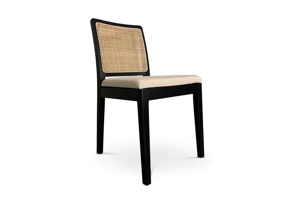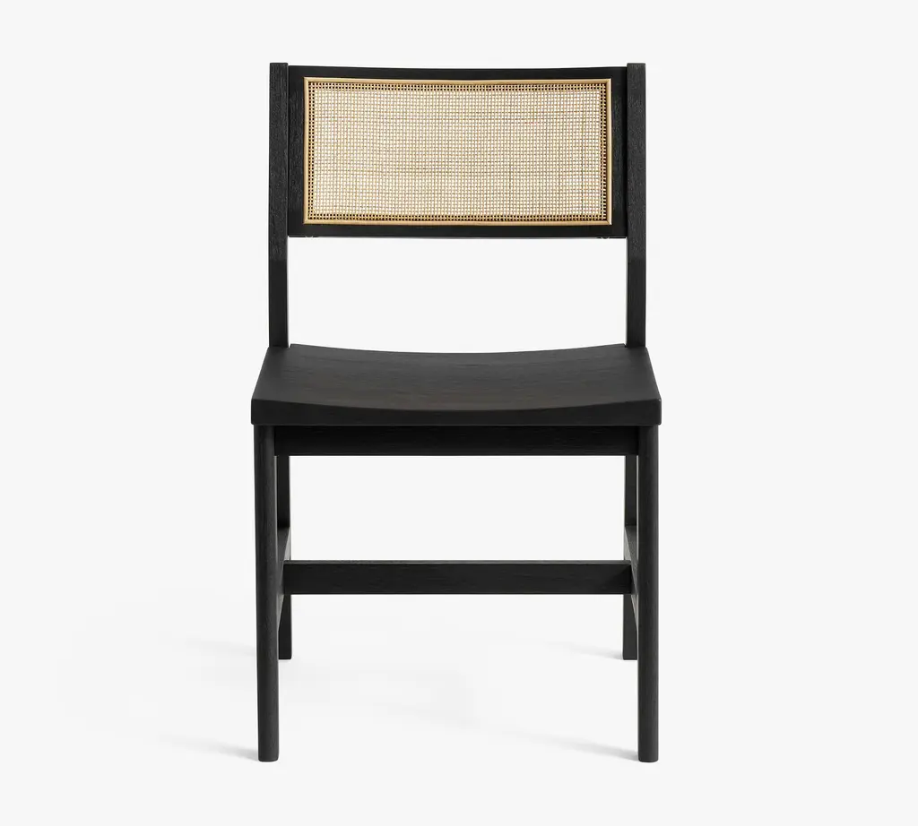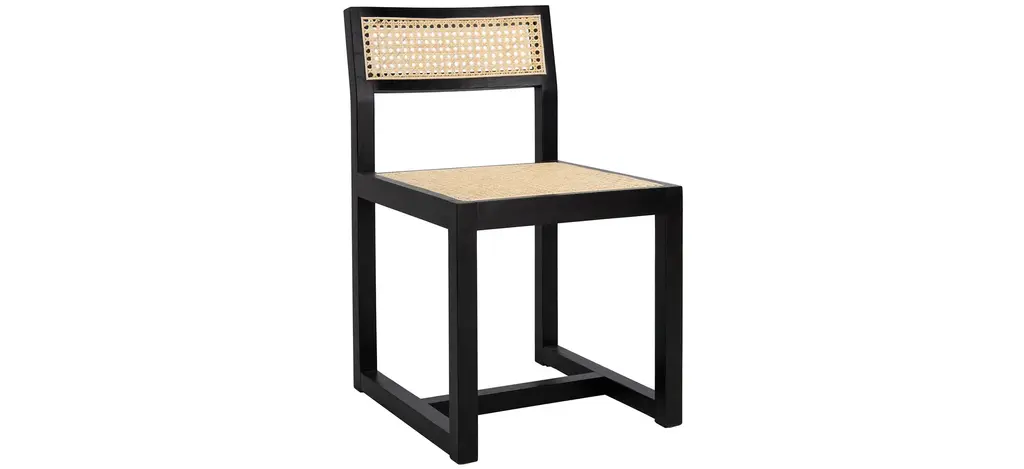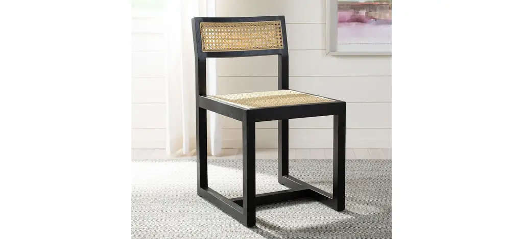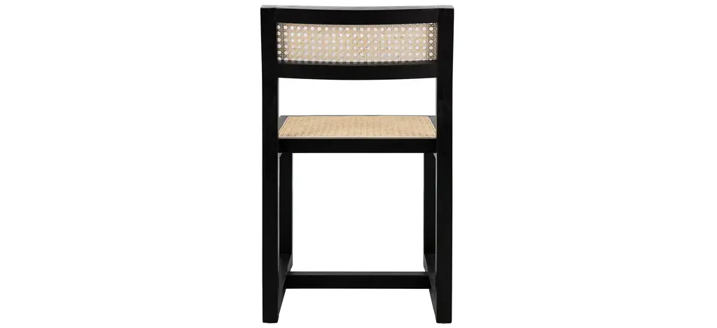 This Jaffe Dining Chair will make you look twice with its clean, minimalist lines paired with subtle yet striking details. A Parson's inspired frame in open black elm wood is given a chic contemporary touch with natural cane details, bringing sophisticated style to any table.