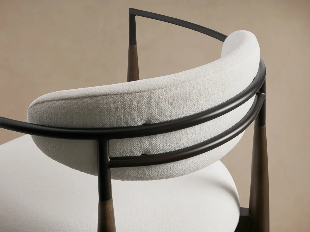 Handcrafted by artisans in Indonesia, our Jagger Dining Seating Collection delivers a sleek modern design paired with unfailing comfort. Hand-stained frames crafted from solid mahogany wood are complemented by warm metal accents, creating an elevated aesthetic perfect for any gathering space.