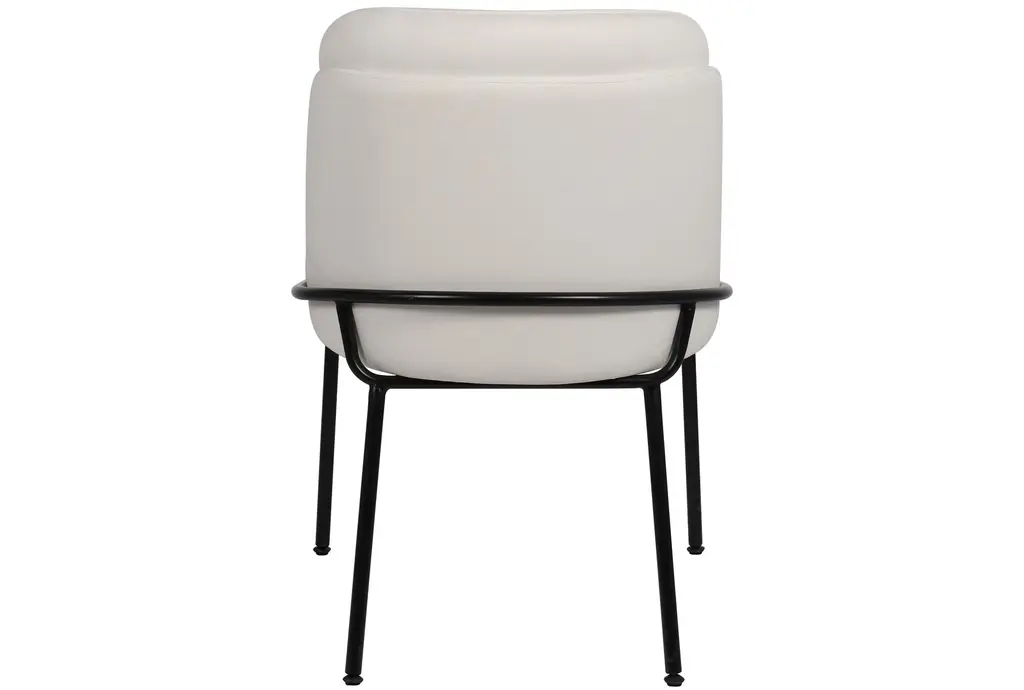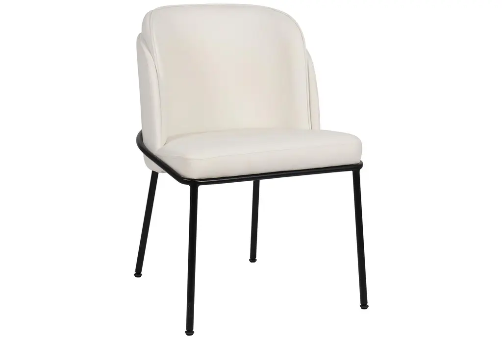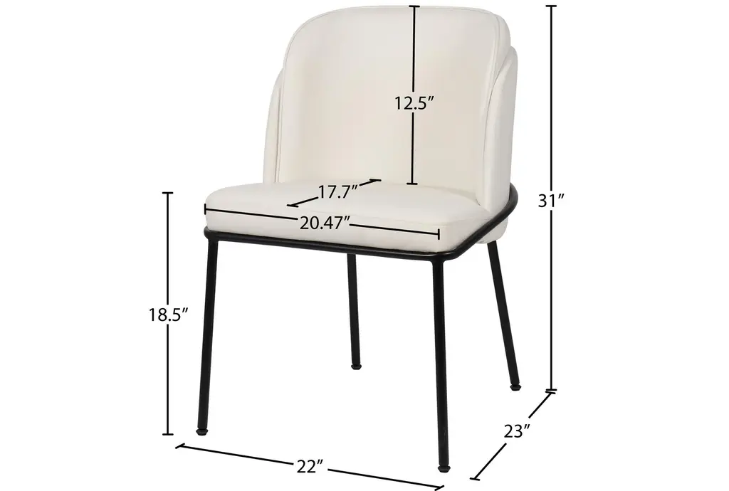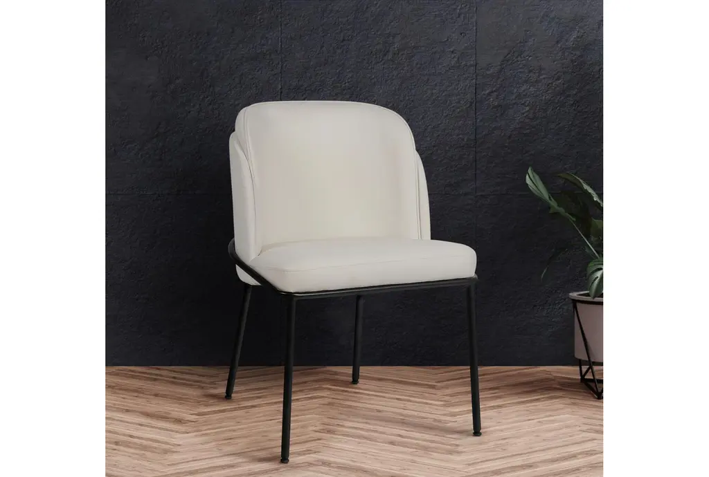 The Jagger White Vegan Faux Leather Dining Chair with Matte Black Powder Coated Finish is a perfect addition to any modern dining room. This set of two chairs offers a sophisticated look without sacrificing comfort. The vegan leather upholstery and matte black powder-coated iron legs provide durability and style.