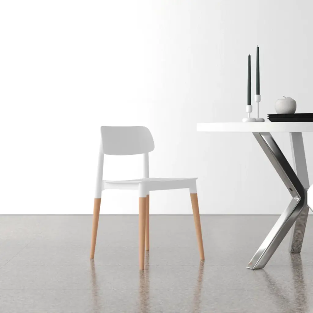 This dining chair’s seat + backrest are molded as a single piece of polypropylene, with no nooks or crannies to harbor crumbs. Available in a range of bright hues, it’s an easy way to mix color into your meal plan. Tapered beechwood legs add an elevated, Scandi-inspired touch.