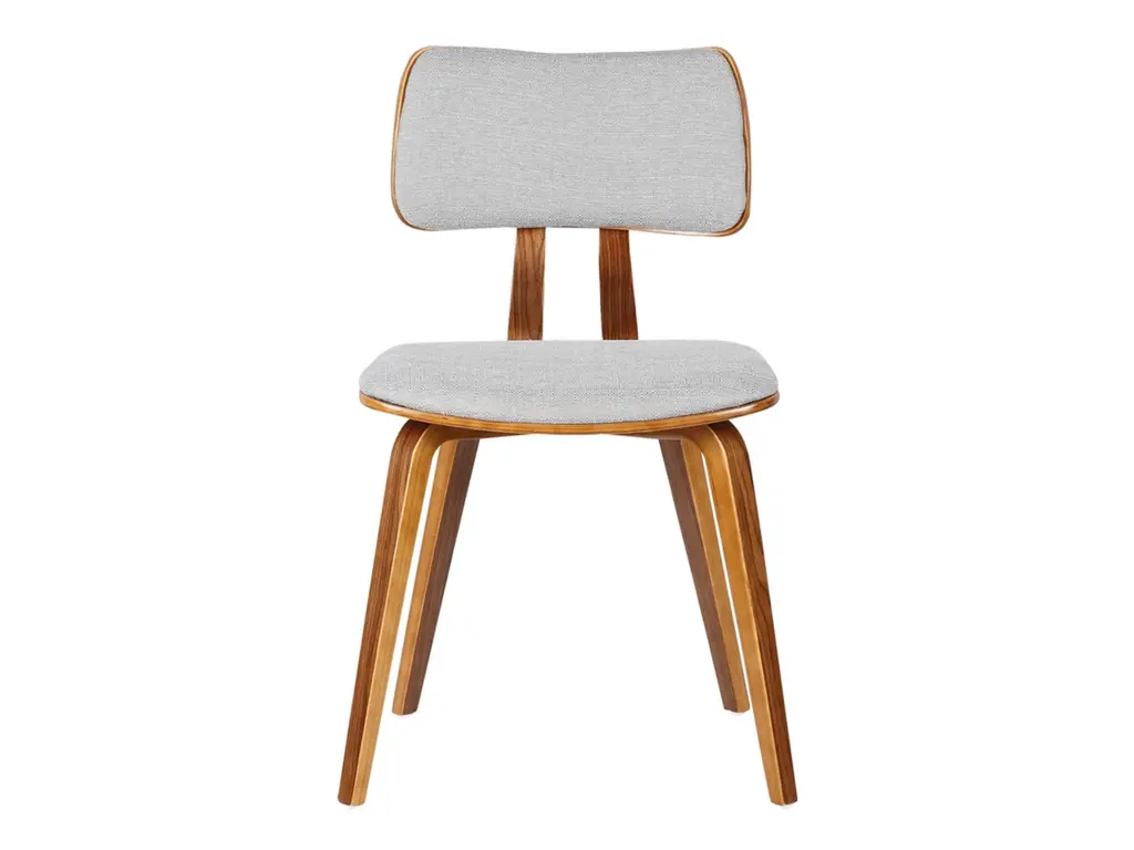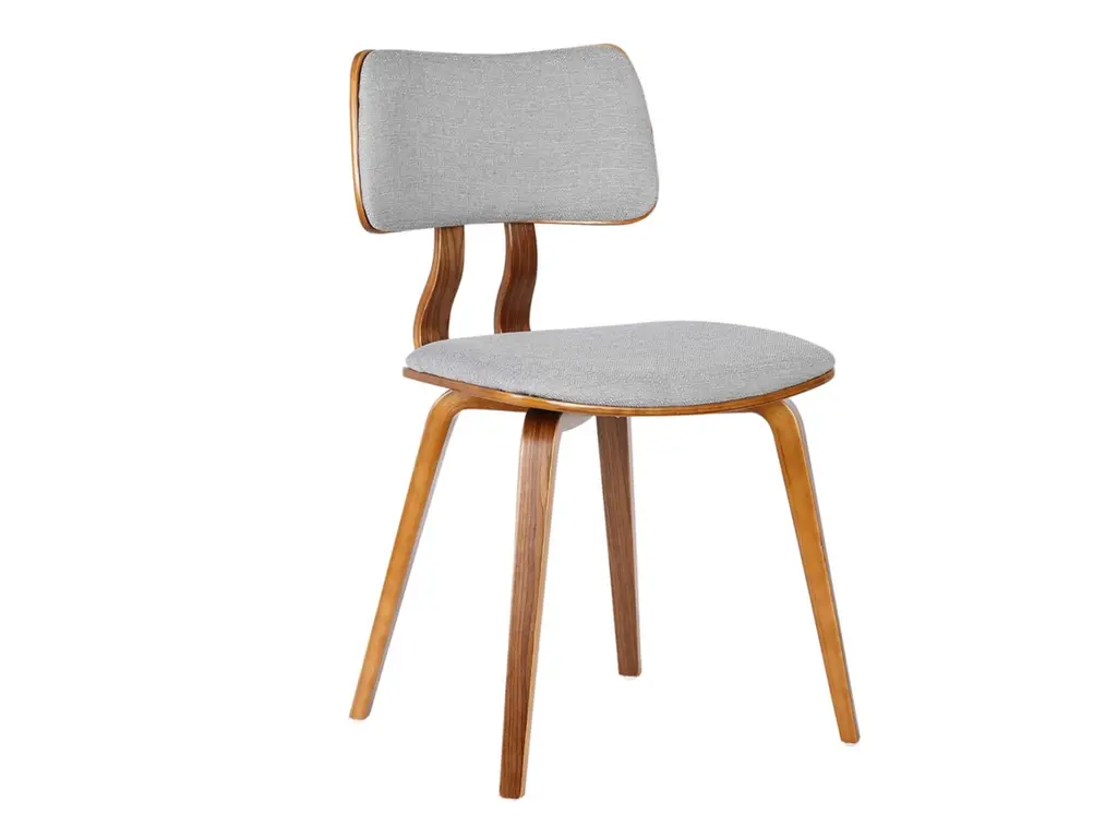 The Armen Living Jaguar mid-century side chair is an epitome of artistic beauty. This contemporary chair’s stylish curved back and attractive fabric upholstery make it a standout piece in the modern home. Don’t overlook the details of this elegant side chair, the durable wood frame, covered in plush fabric upholstery makes the Jaguar exceptionally inviting. This is simple but unique design that you can play up or down in any room in your home. It is the perfect size for small spaces such as dorm rooms or apartment or it can be use to entertain large gathering in style. The high cushion back is ideal for posture alignment and an unmatched support for days on end. The detailed open back adds to the aesthetic of the overall modern and mid century look. The foundation of the product is supported by solid walnut wood for a sturdy and stylish look without comprising practicality and functionality of this item. This item is a versatile piece that can be ideal for dining, kitchen or even home office desk chairs. This product ships in one box with easy and quick set up. We stand by the quality, the craftsmanship and the integrity of our product by offer 1-year warranty for all our products. Its sleek legs are built to create balance and the back seat includes exposed zig-zag lines enhance the aesthetic appeal. The Jaguar dining chair is available in Gray, Charcoal, and Green Fabric upholstery. Product Dimensions: 18"W x 20"D x 29"H SH: 18"