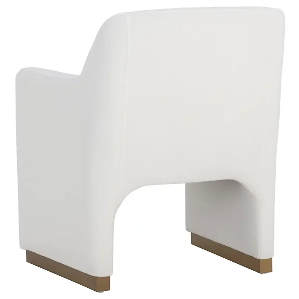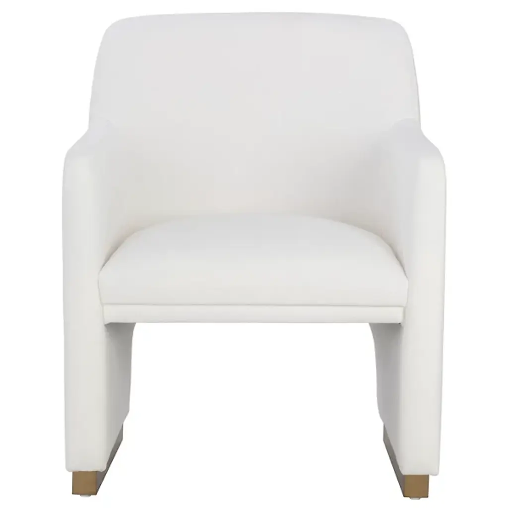 Elevate your living space with the Jaime Dining Armchair by Sunpan. This chair is a striking combination of style and comfort. It features a beautiful fior vanilla fabric that complements a sturdy gold stainless steel base. With its opulent design, this chair brings an air of elegance and luxury to your dining experience. It's more than just a chair, for it's a statement of refined taste and sophistication.