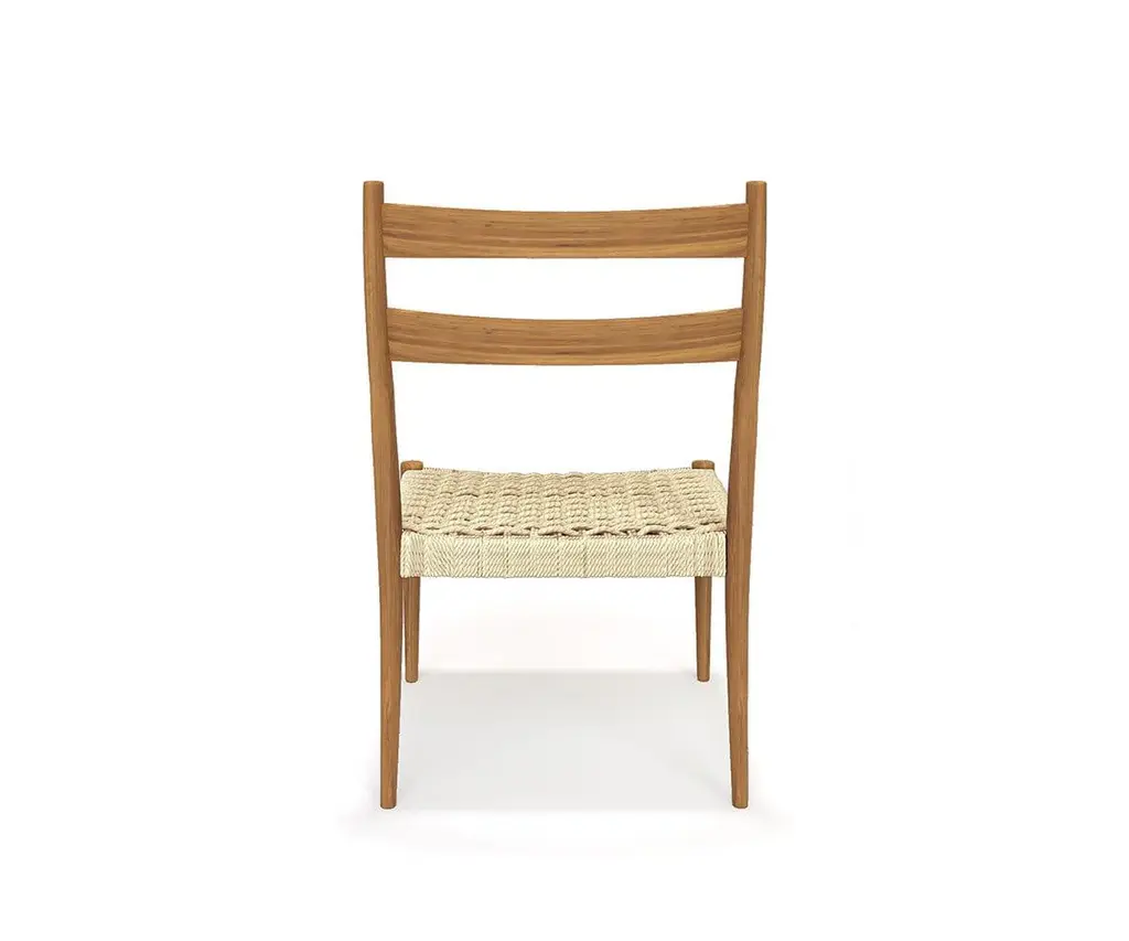 The Jake Dining Chair embodies the simple elegance of modern, rustic design. This chair features a minimalistic silhouette complete with tapered legs. Dual horizontal back slats create a comfortable ladder back seating experience, and a comfortable woven rope seat fully encloses the seat frame. This rustic chair is versatile enough to blend with many decor styles; the sturdy, solid frame renders this piece to be a true classic, able to stand the test of time.