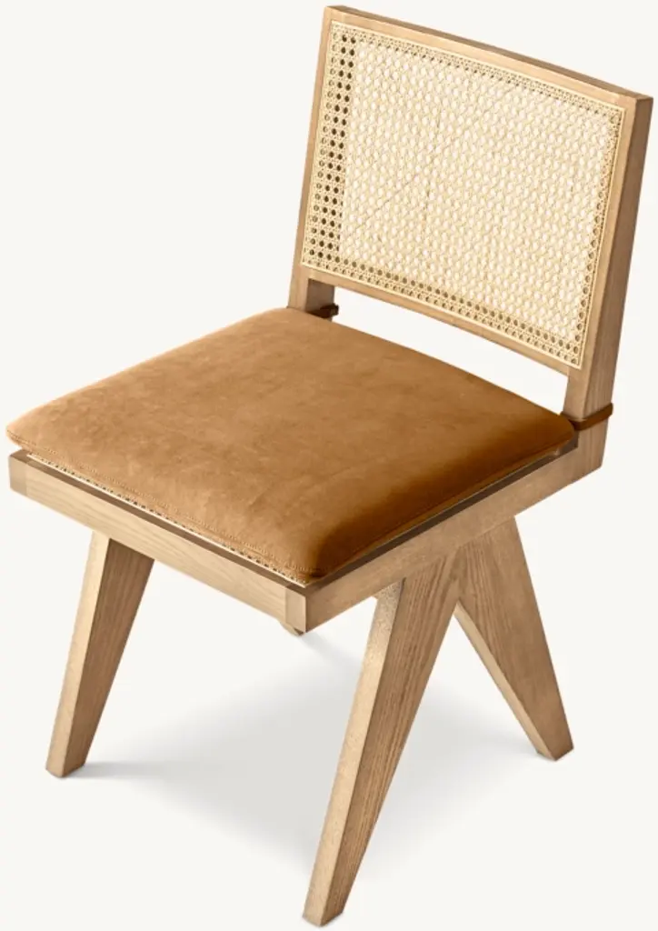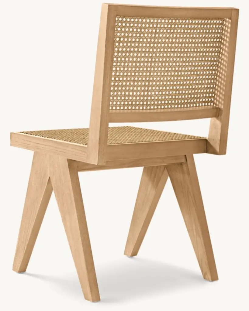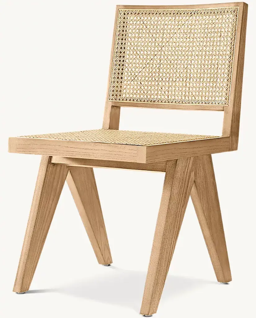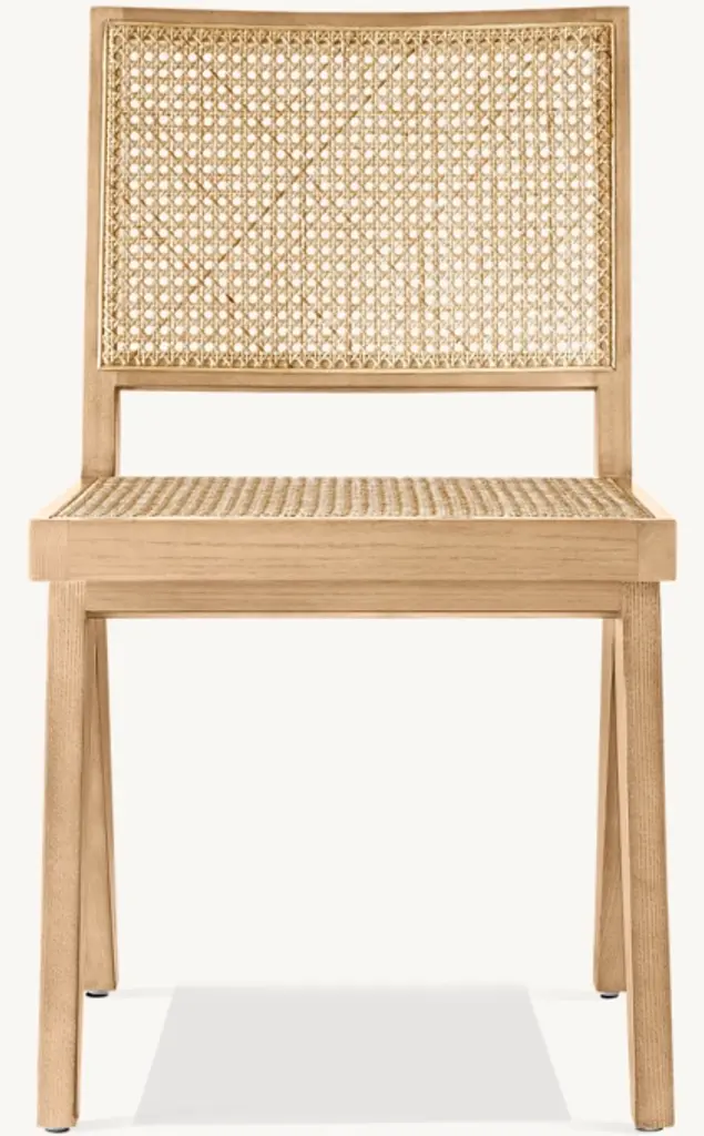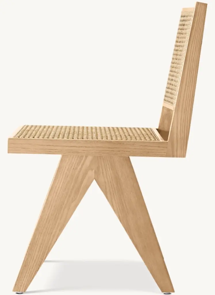 Inspired by Pierre Jeanneret's iconic Chandigarh chair, our design is a study in striking geometric form. Reduced to a graphic minimum, it embodies the purity, simplicity and functionality of midcentury modernism. Crafted of solid American oak, the canted frame is set atop bold, inverted V-legs that taper subtly to the ground. The chair's seat and back are fitted with panels of handwoven cane.SHOP THE ENTIRE COLLECTION