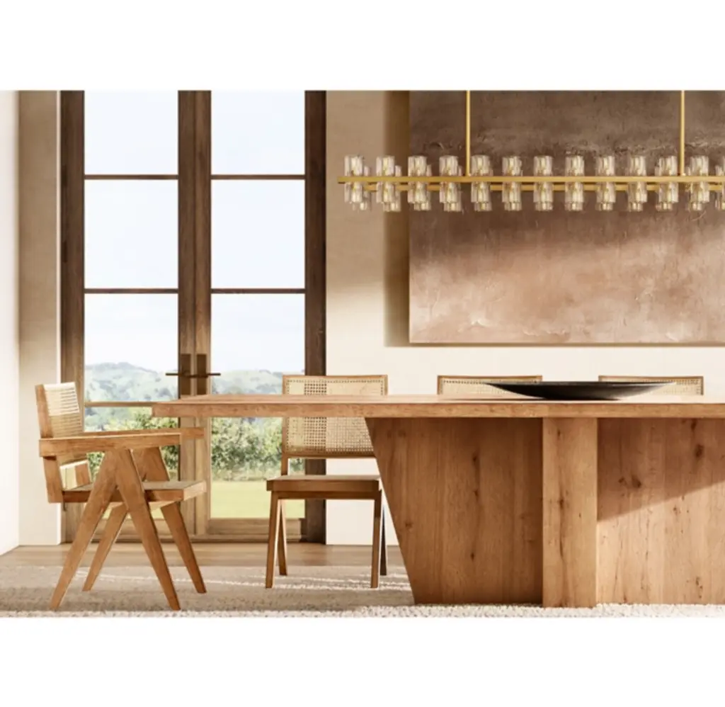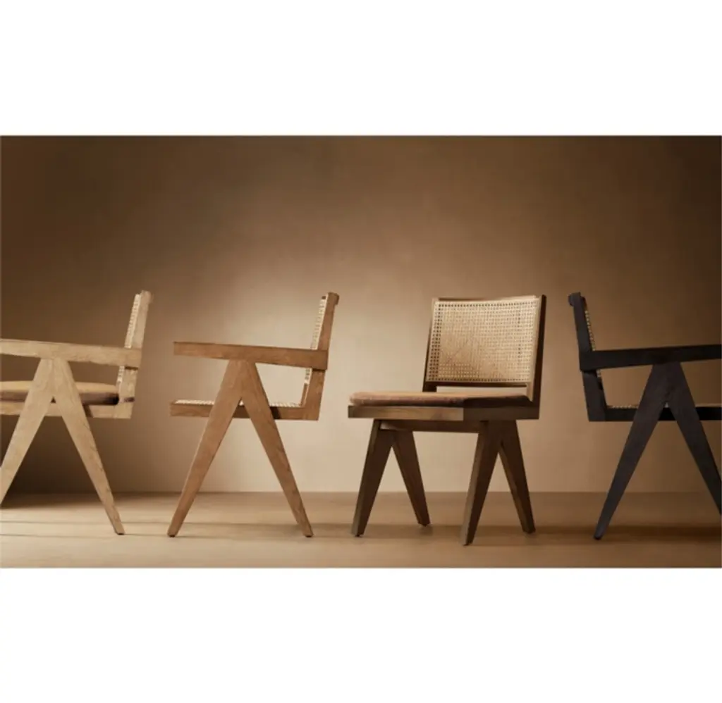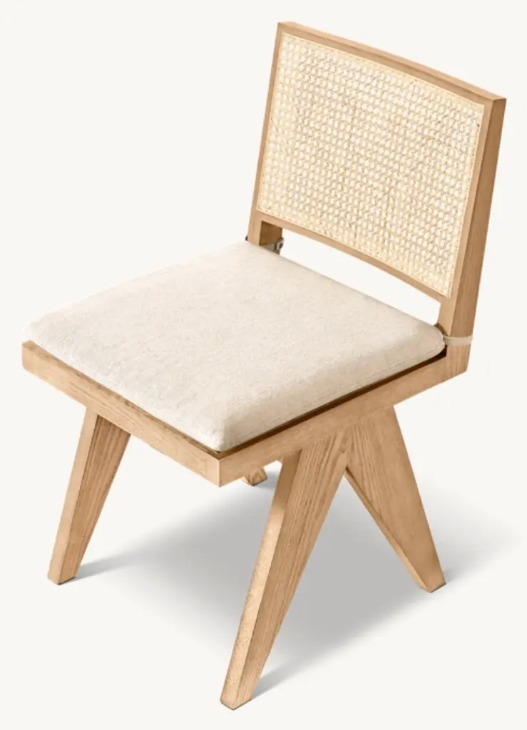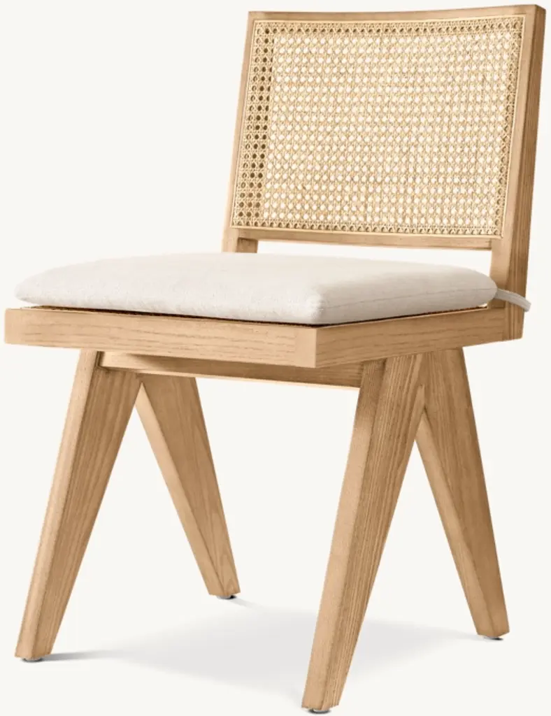 Inspired by Pierre Jeanneret's iconic Chandigarh chair, our design is a study in striking geometric form. Reduced to a graphic minimum, it embodies the purity, simplicity and functionality of midcentury modernism. Crafted of solid American oak, the canted frame is set atop bold, inverted V-legs that taper subtly to the ground. The chair's seat and back are fitted with panels of handwoven cane.SHOP THE ENTIRE COLLECTION