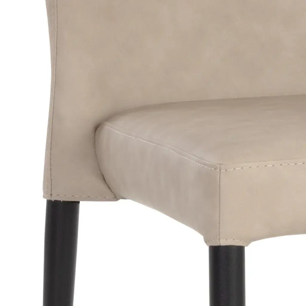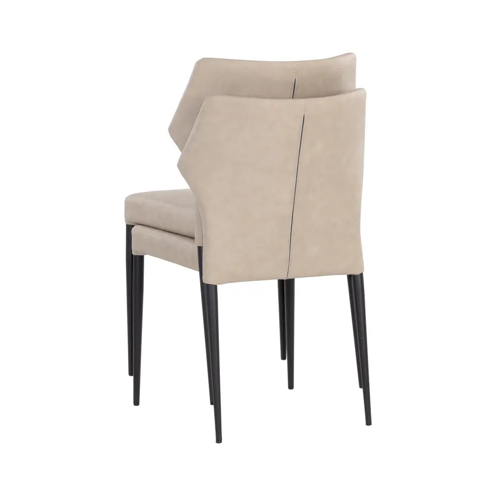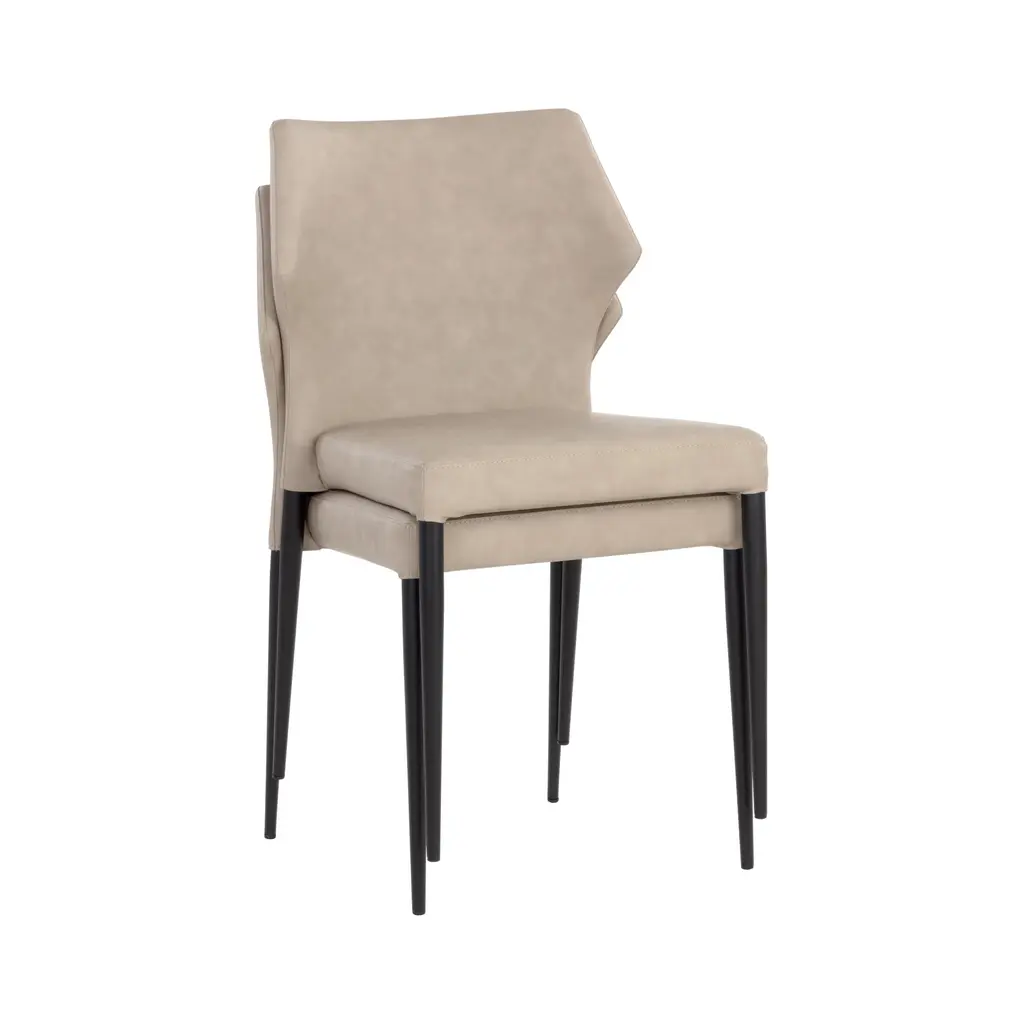 Indulge in luxury dining with the James Stackable Dining Chair (Set of 2) from Sunpan. Crafted with durable faux leather, this chair is both stylish and easy to care for. The uniquely shaped backrest adds flair to any dining space, creating a subtle, yet striking statement. Each piece is unique, with characteristics like color variations and light scratches adding to its elegant appeal. Highlights