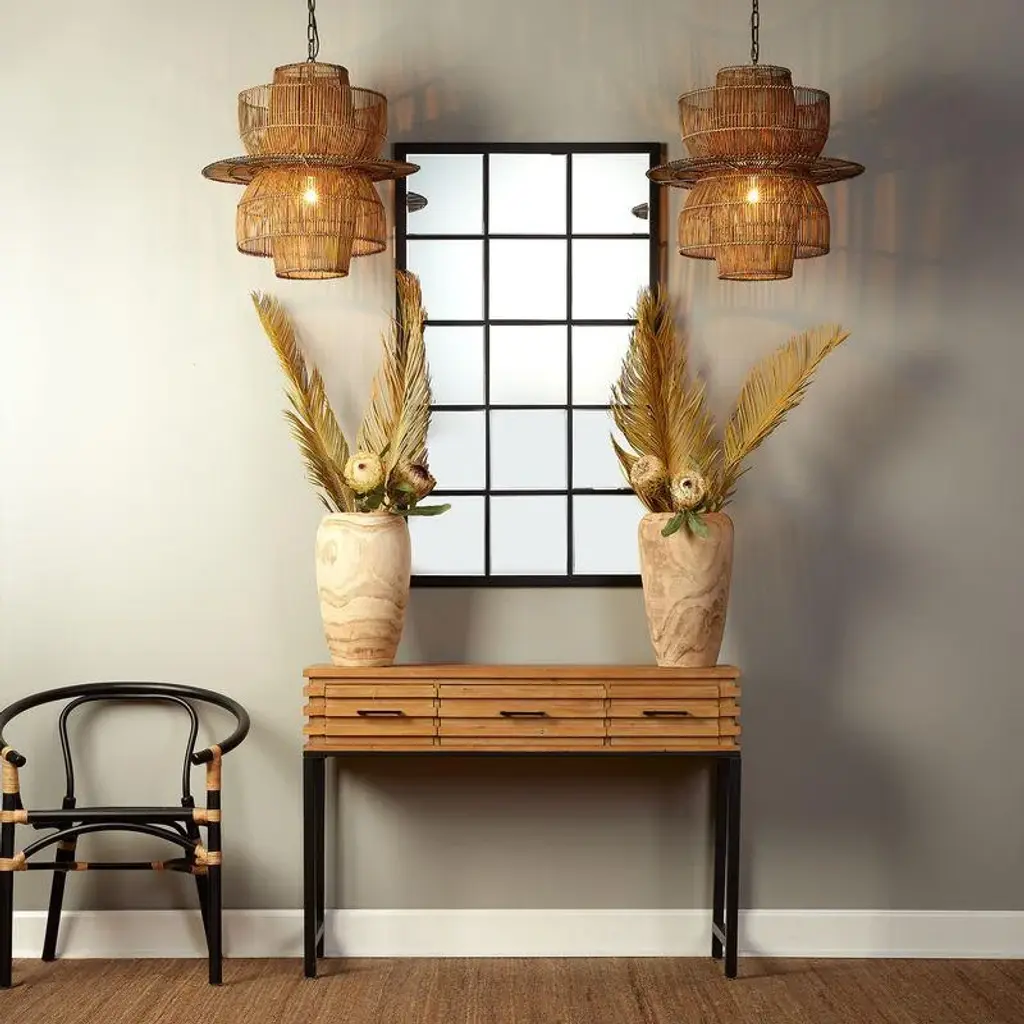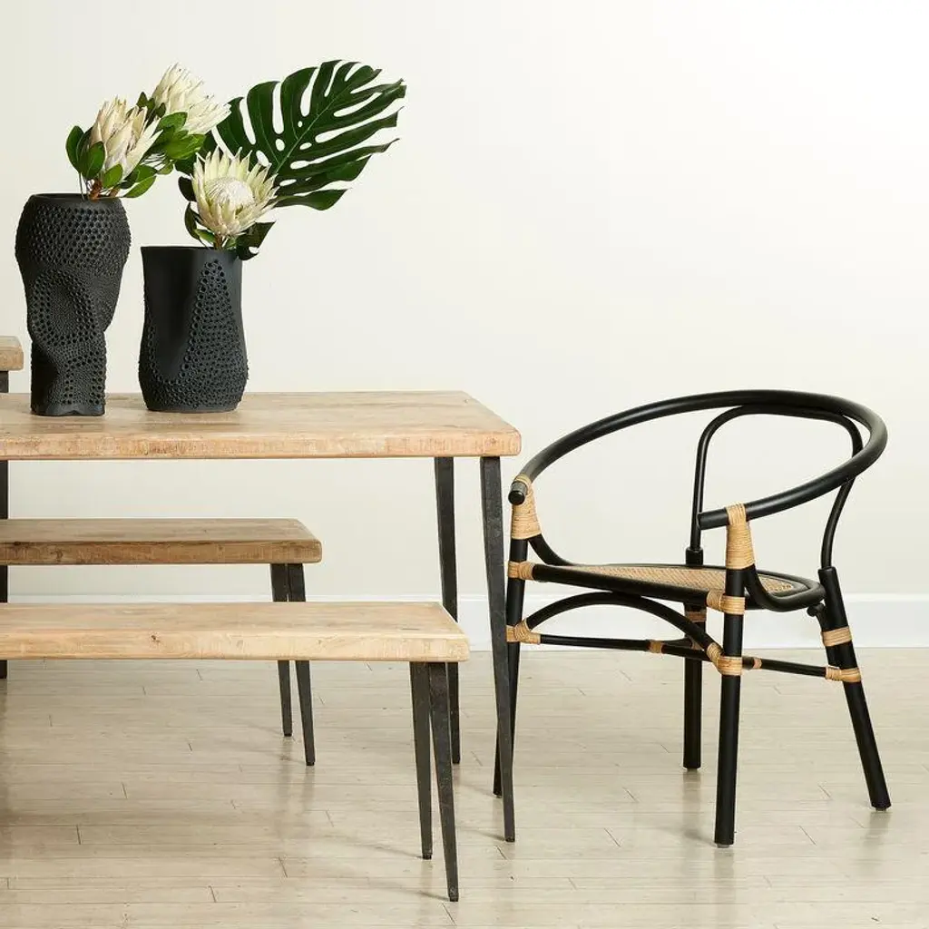 With a casual elegance that's suitable for everyday dining and entertaining, this chair is handcrafted from rattan, a material we appreciate for its resiliency. The natural contrasting wrapped joinery easily adds a pop of color for an instant refresh. Handcrafted Rattan Frame Rattan Panel Seat Contrasting Natural Rattan Wrap Sturdy Construction Indoor Use Only The inherent variations in tone and texture of natural rattan is preserved, to create pieces rich in detail and natural beauty. These unique imperfections give our products character and individuality, with each piece having its own personality. Seat Height: 18.5" Arm Height: 23.75 Weight Capacity: 330 lbs. Care Instructions: Clean with soft, dry cloth. If needed, you may use a lightly damp cloth with water only. DO NOT use cleaners or abrasives.