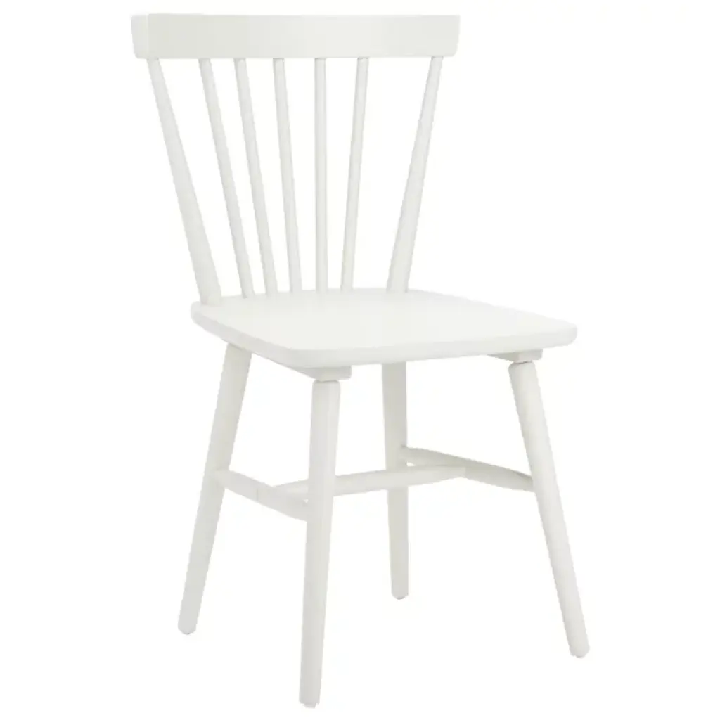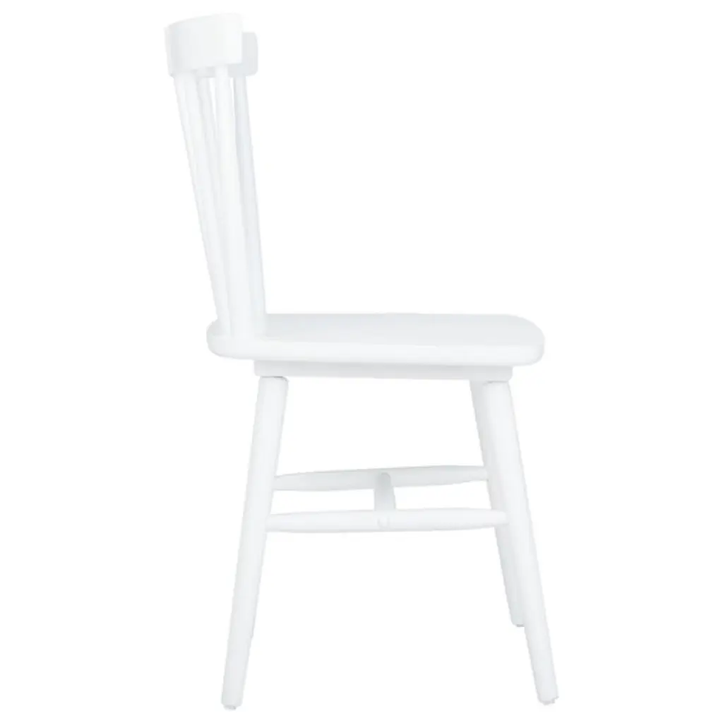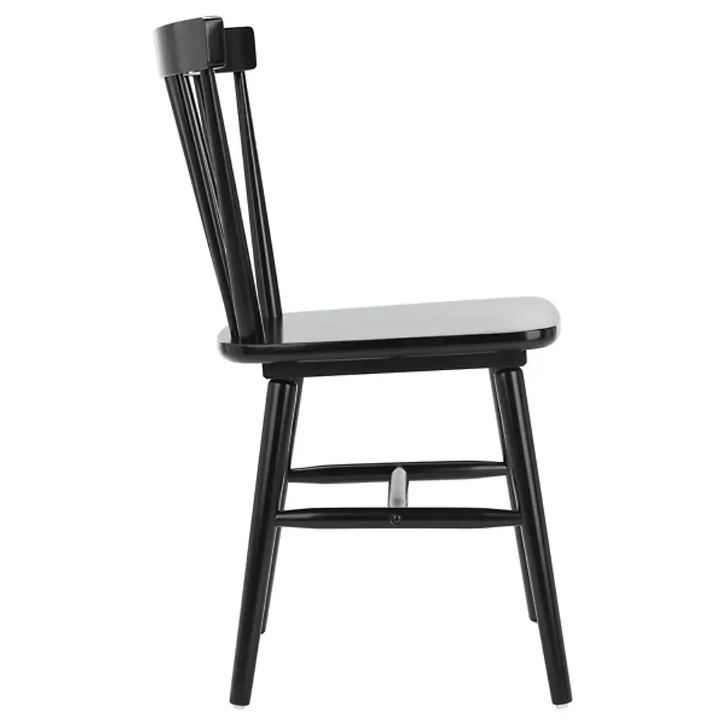 The Janaina Spindle Back Dining Chair, Set of 2, from Alder & Ore, features the iconic farmhouse silhouette that perfectly complements any casual kitchen or dining table. Crafted in a forever-fashionable black finish, these chairs showcase a curved spindle back and durable rubberwood construction. This time-honored design offers enduring appeal and versatility, seamlessly blending into Contemporary and Rustic Modern styles. The chairs add a touch of classic charm to your dining space, enhancing your decor with their enduring design and comfortable seating, perfect for everyday meals or special occasions.