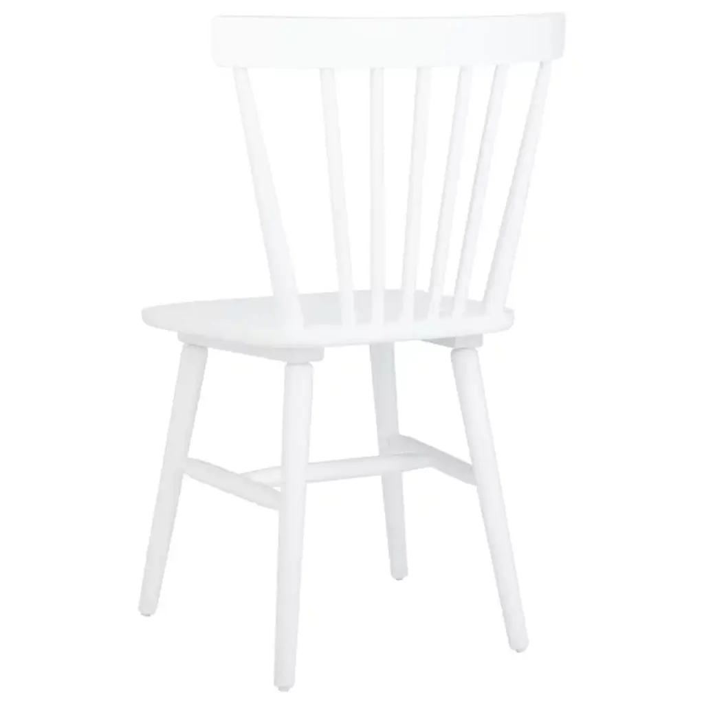 The Janaina Spindle Back Dining Chair, Set of 2, from Alder & Ore, features the iconic farmhouse silhouette that perfectly complements any casual kitchen or dining table. Crafted in a forever-fashionable black finish, these chairs showcase a curved spindle back and durable rubberwood construction. This time-honored design offers enduring appeal and versatility, seamlessly blending into Contemporary and Rustic Modern styles. The chairs add a touch of classic charm to your dining space, enhancing your decor with their enduring design and comfortable seating, perfect for everyday meals or special occasions.