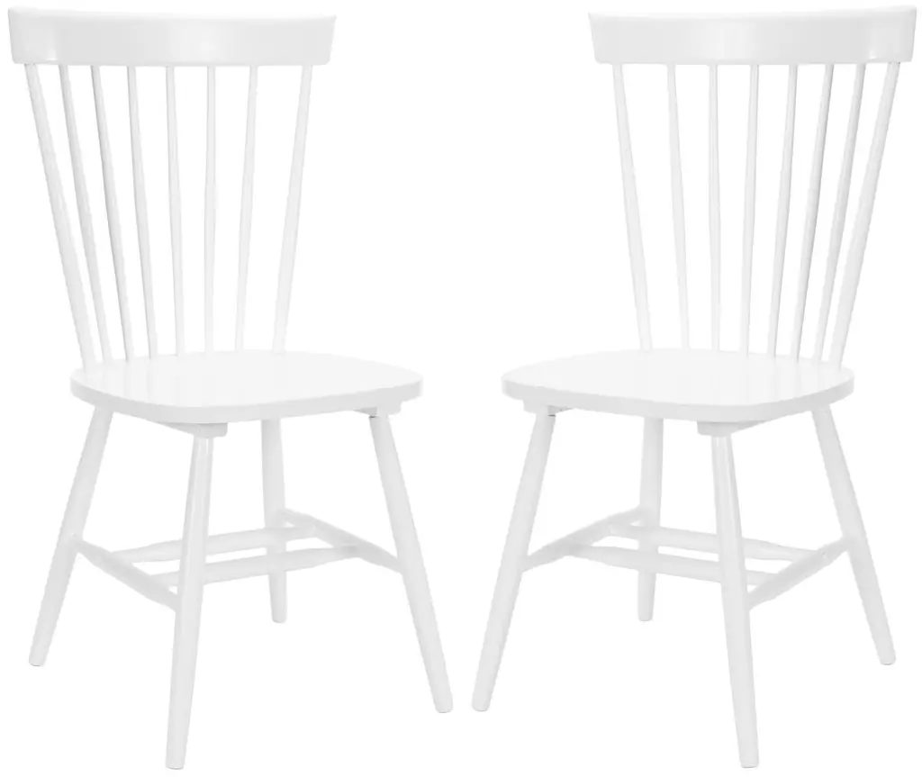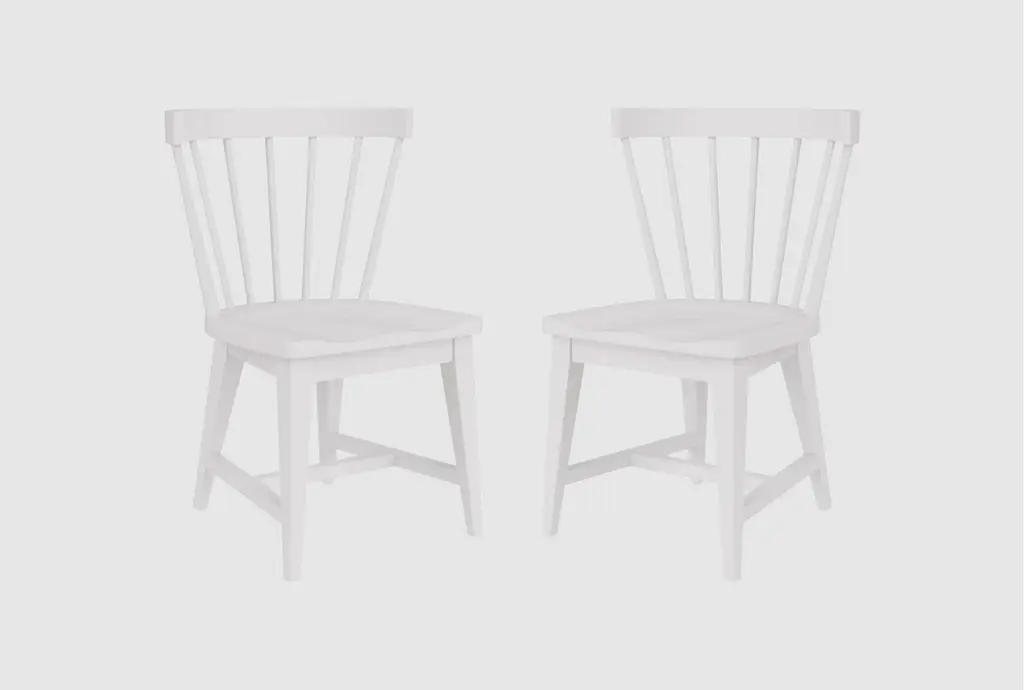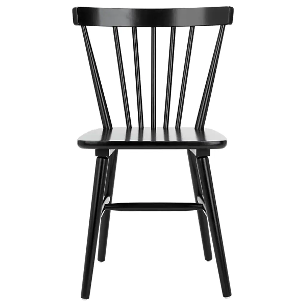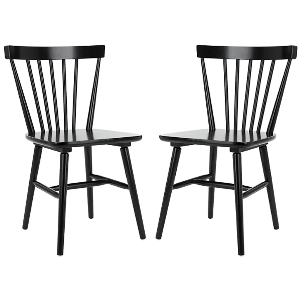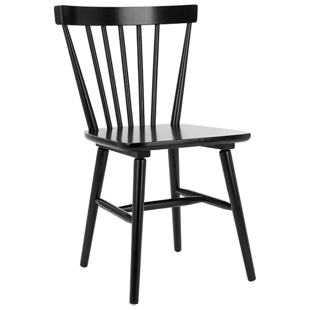 The Janaina Spindle Back Dining Chair, Set of 2, from Alder & Ore, features the iconic farmhouse silhouette that perfectly complements any casual kitchen or dining table. Crafted in a forever-fashionable black finish, these chairs showcase a curved spindle back and durable rubberwood construction. This time-honored design offers enduring appeal and versatility, seamlessly blending into Contemporary and Rustic Modern styles. The chairs add a touch of classic charm to your dining space, enhancing your decor with their enduring design and comfortable seating, perfect for everyday meals or special occasions.